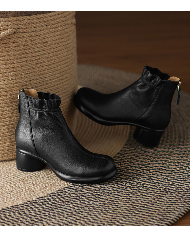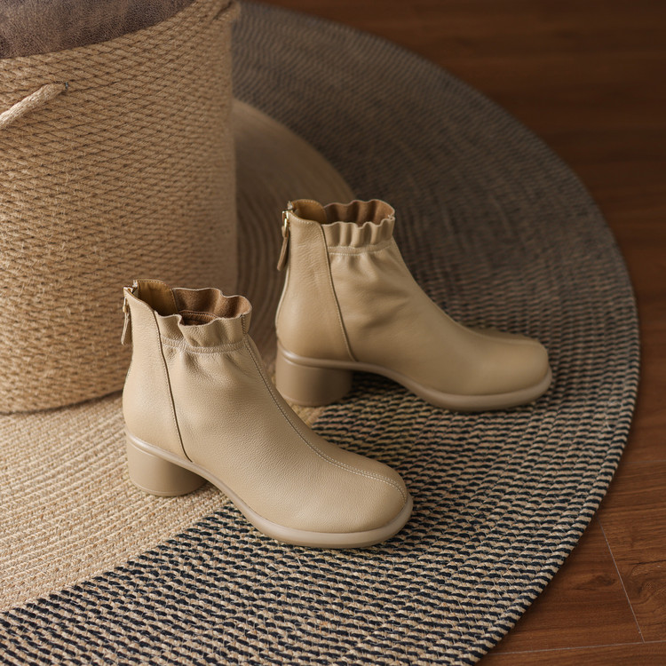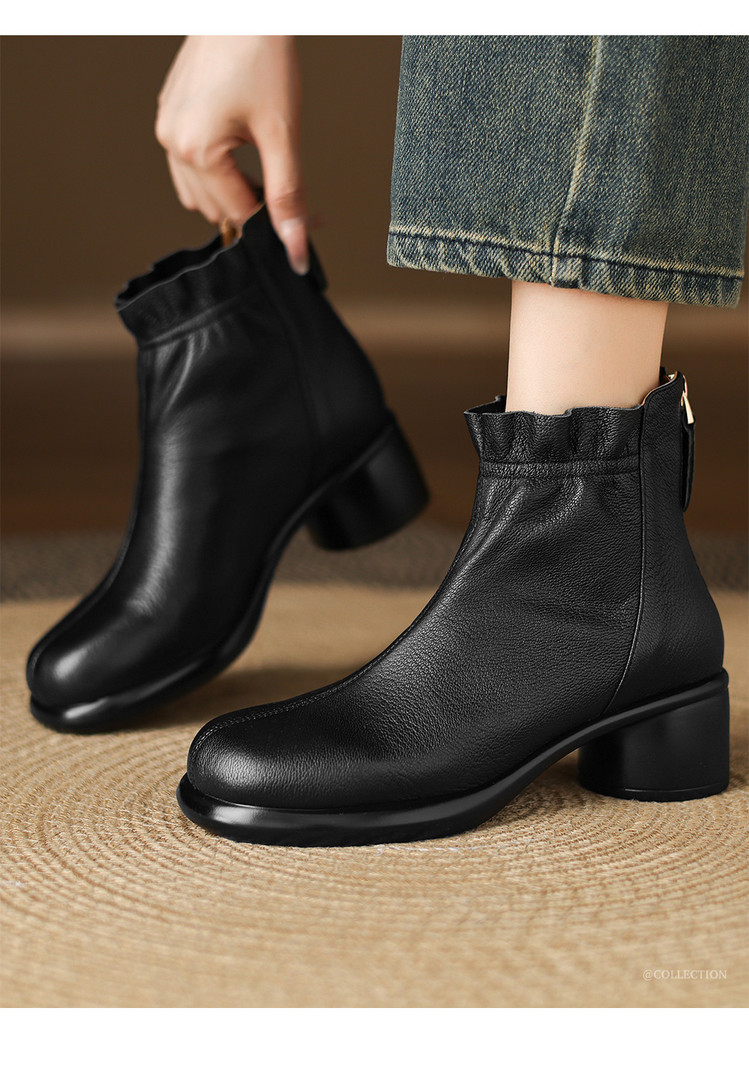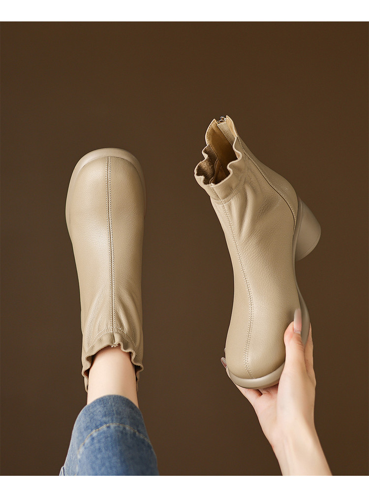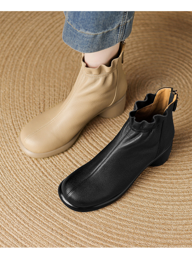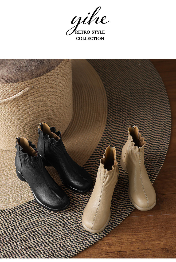 【预售5天】软羊皮粗跟厚底舒适短靴女秋冬新款圆头中跟百搭马丁靴LD&7458