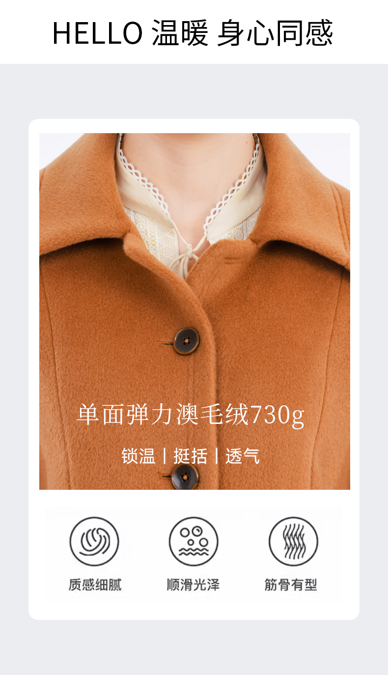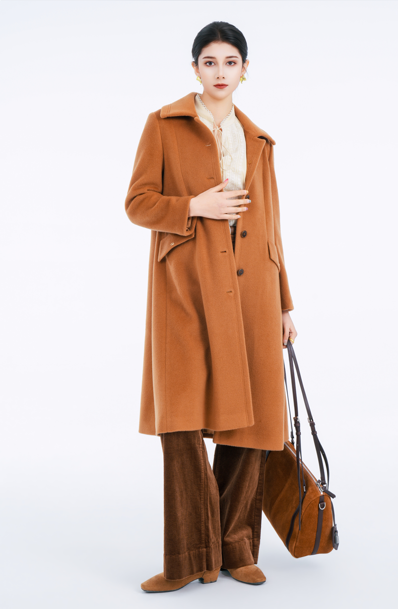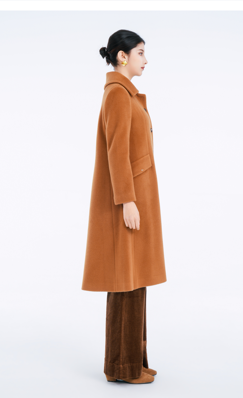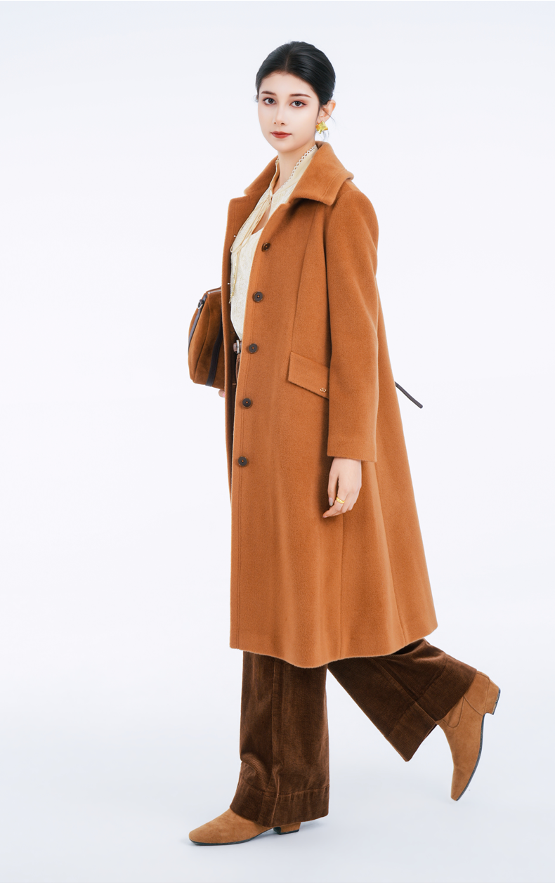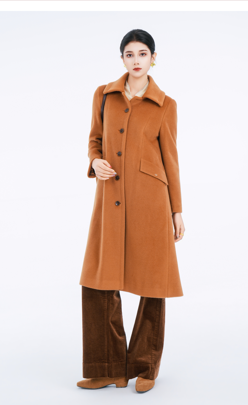 乔万尼2025冬新品100%羊毛鎏金A摆大气质感羊毛大衣ED4A769
