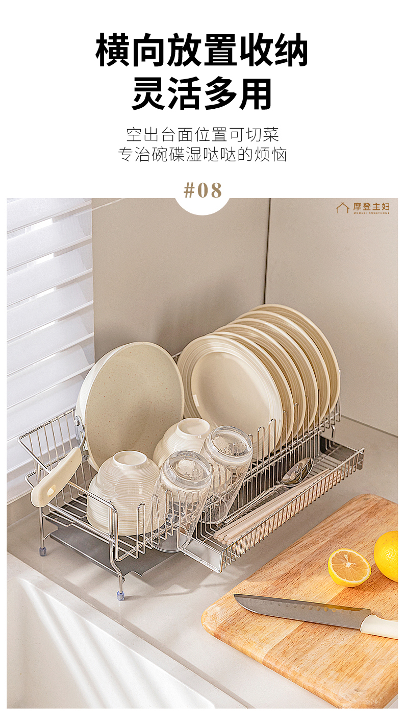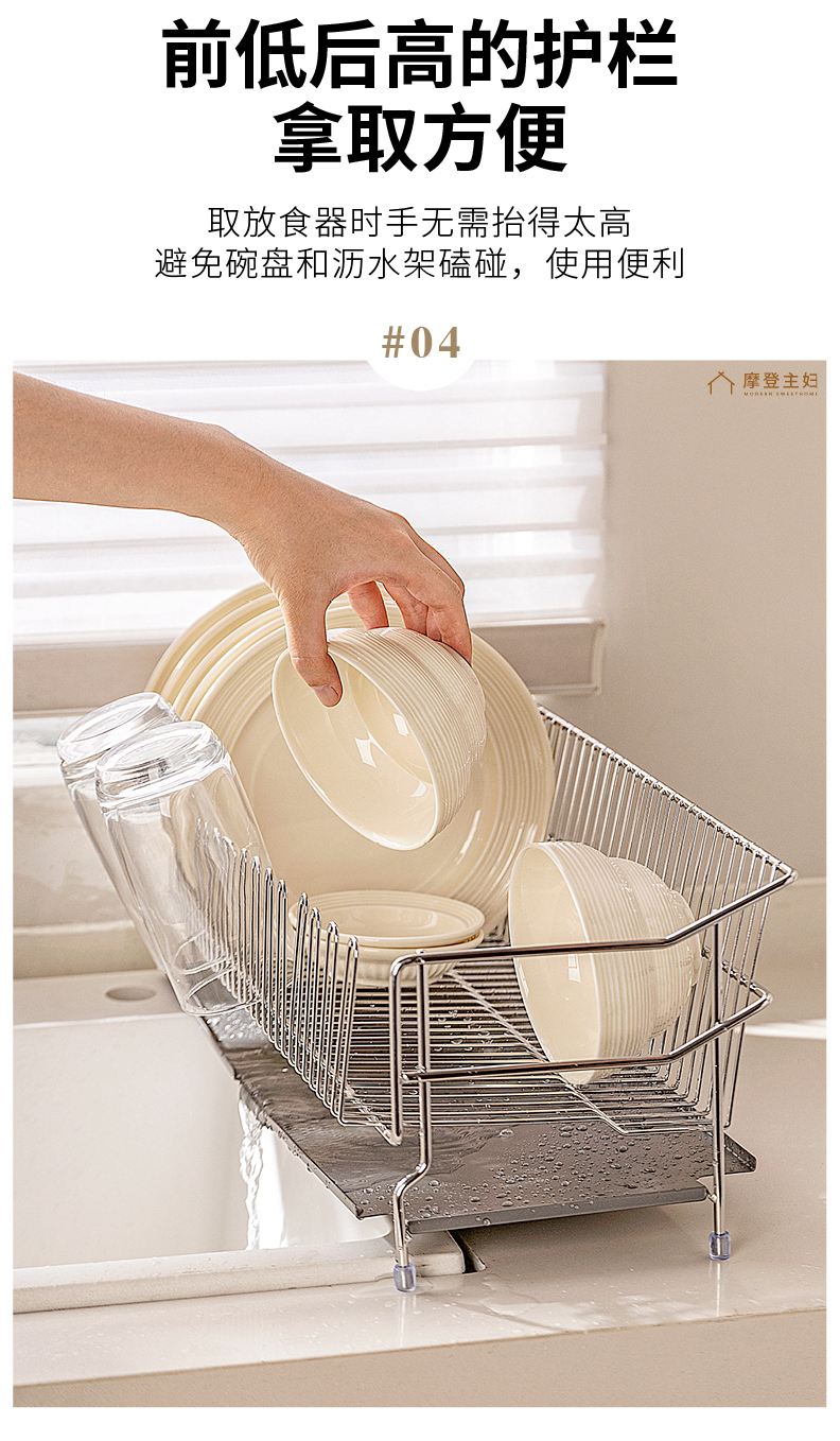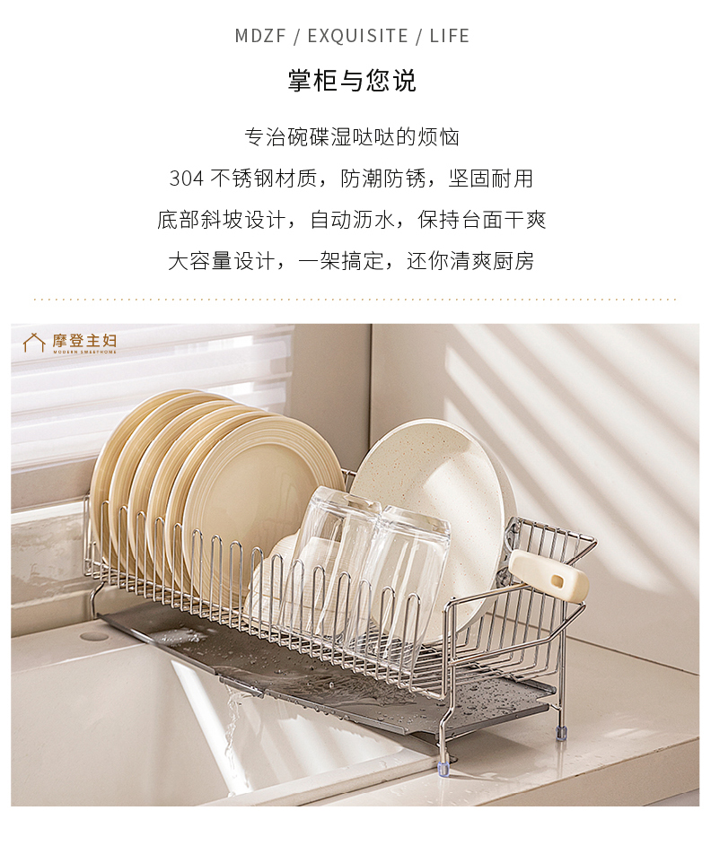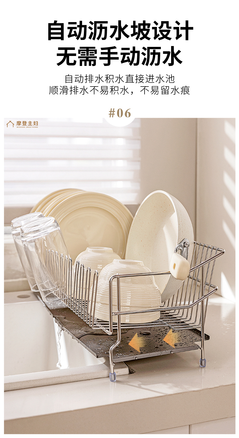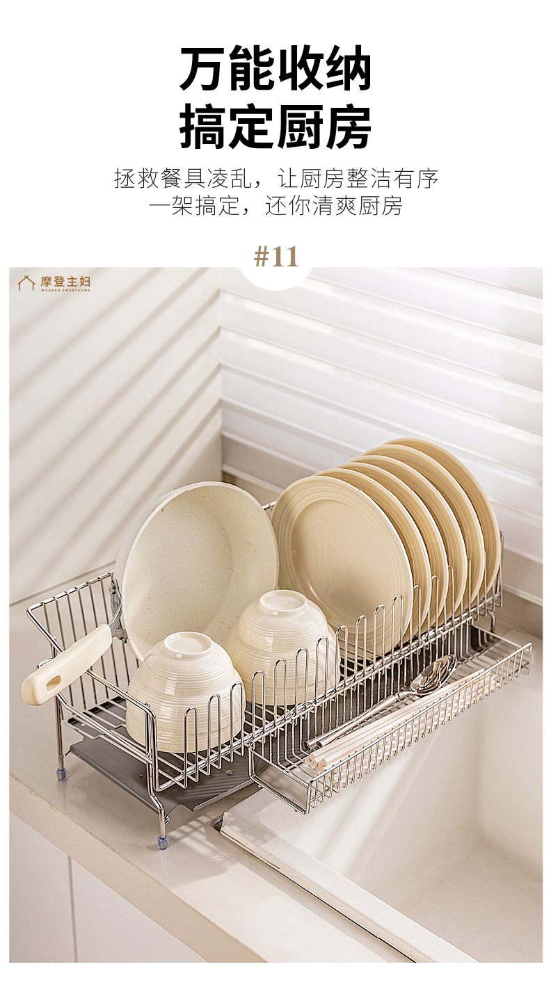 摩登主妇304不锈钢碗碟沥水架厨房窄边水池碗筷碗盘置物架收纳架