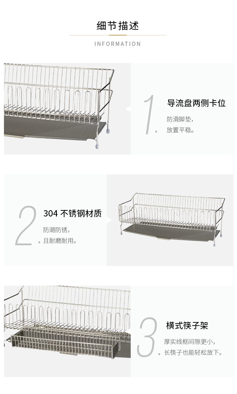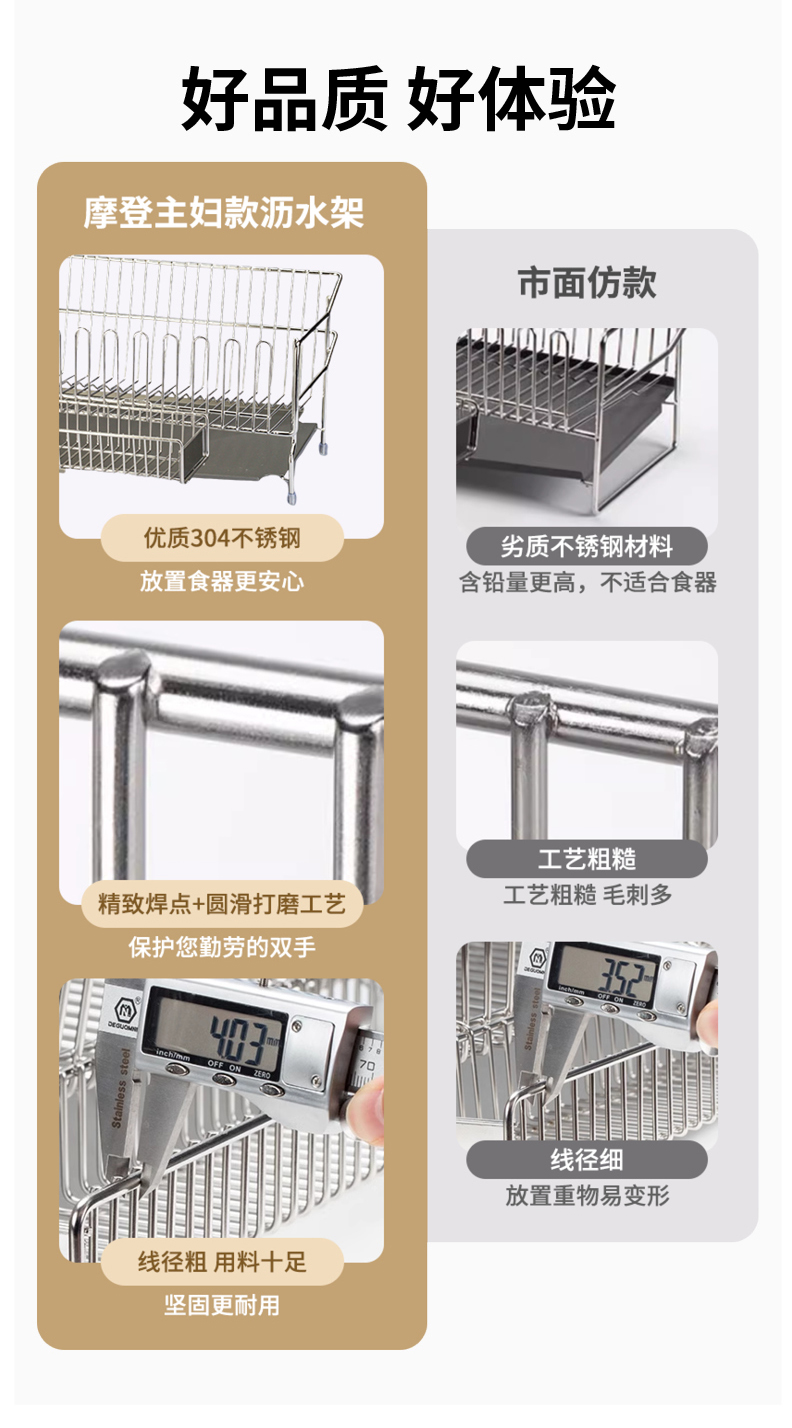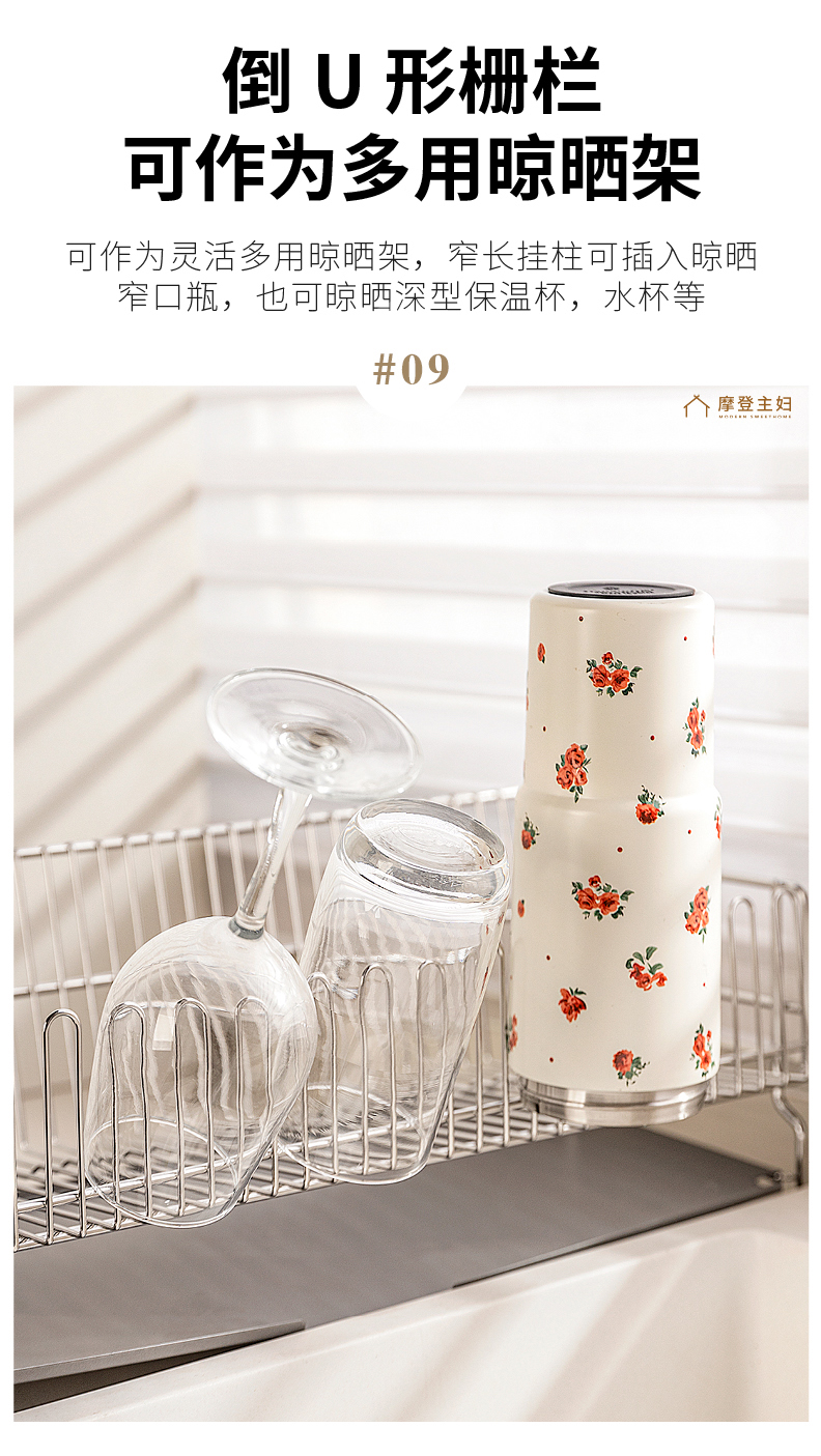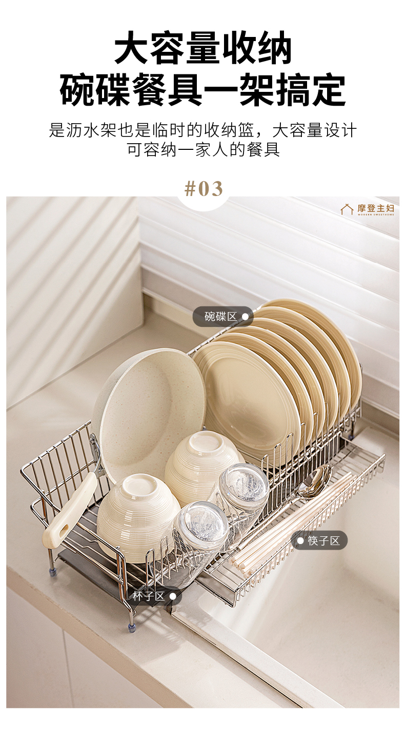 摩登主妇304不锈钢碗碟沥水架厨房窄边水池碗筷碗盘置物架收纳架
