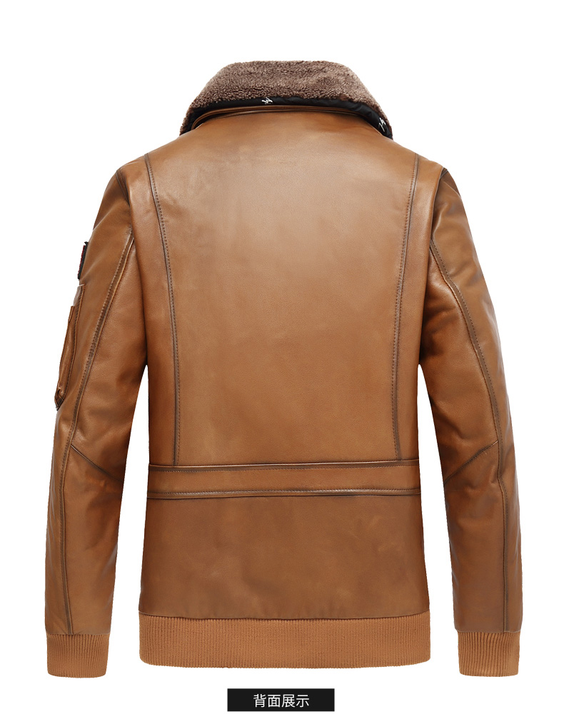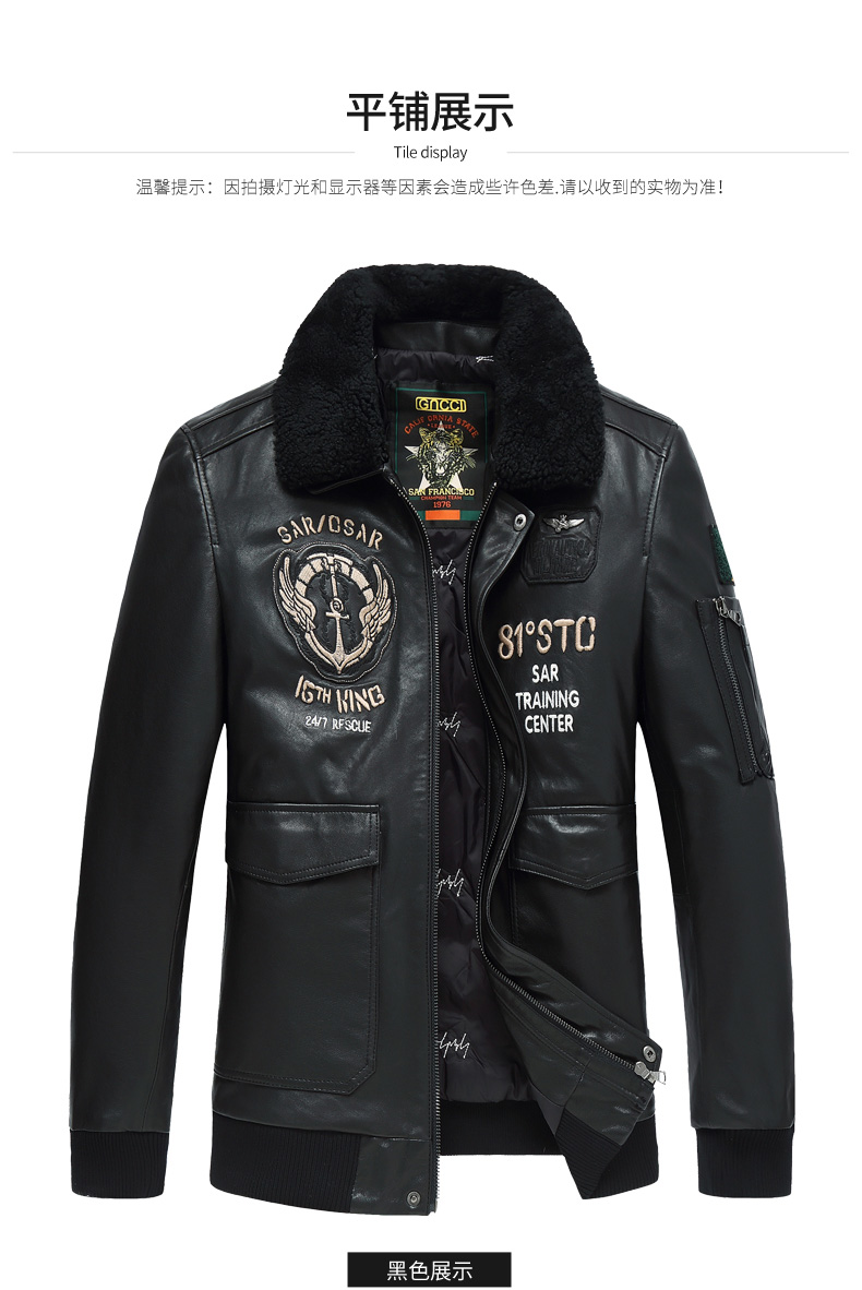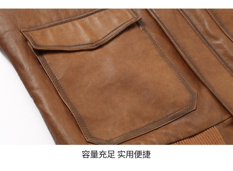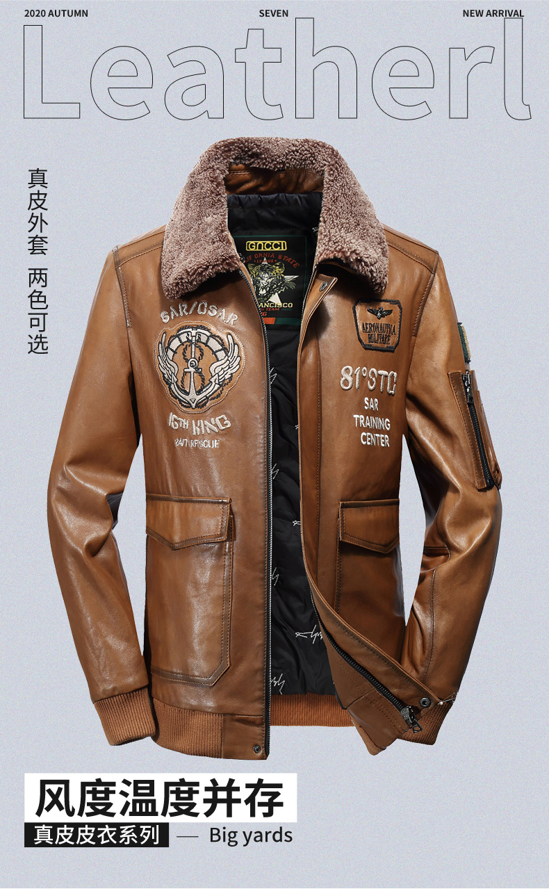 【真皮】大依优型绵羊皮大码皮衣可脱卸领加肥加大外套多口袋时尚大码皮草