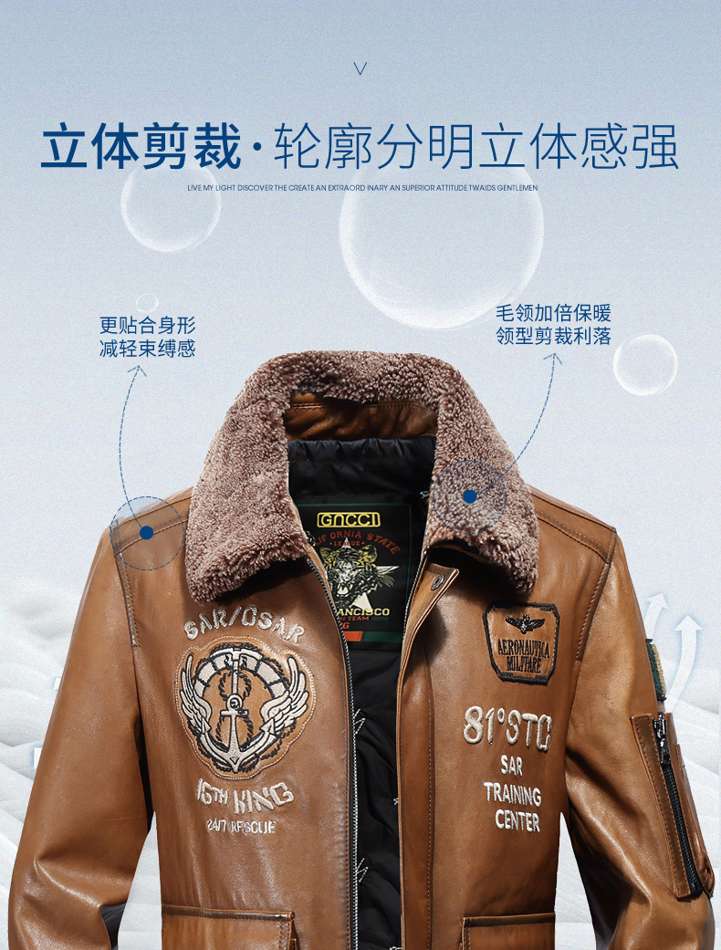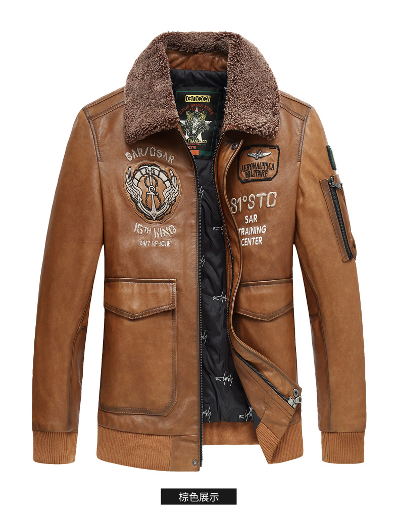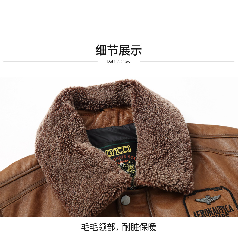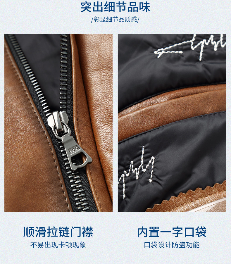 【真皮】大依优型绵羊皮大码皮衣可脱卸领加肥加大外套多口袋时尚大码皮草