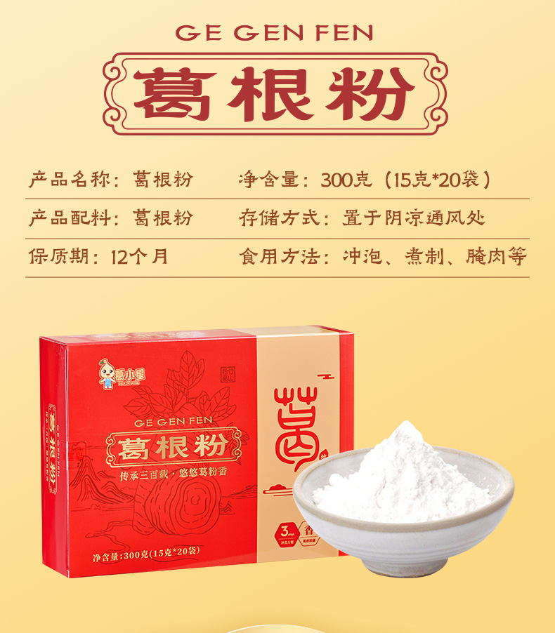 葛小星葛粉 佛冈特产葛根粉礼盒装 300g(15g*20袋)独立小包装 带冲泡教程,味道清香回甘回甜