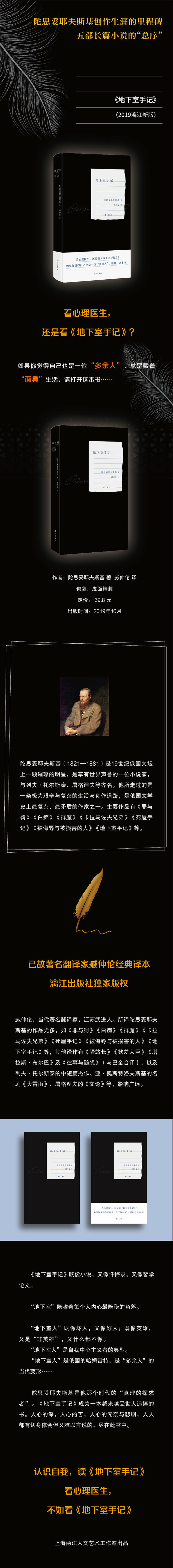 《地下室手记》(1864)是陀思妥耶夫斯基创作中的里程碑,是他步入创作巅峰时期的定鼎之作,是一部承前启后的宣言式的中篇小说,也可以说,是他以后享誉世界的五部长篇小说(《罪与罚》《白痴》《群魔》《少年》《卡拉马佐夫兄弟》)的总序。
