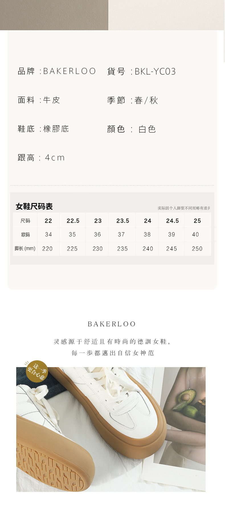 预售15天BAKERLOO舒适厚底系带德训鞋小白鞋女鞋