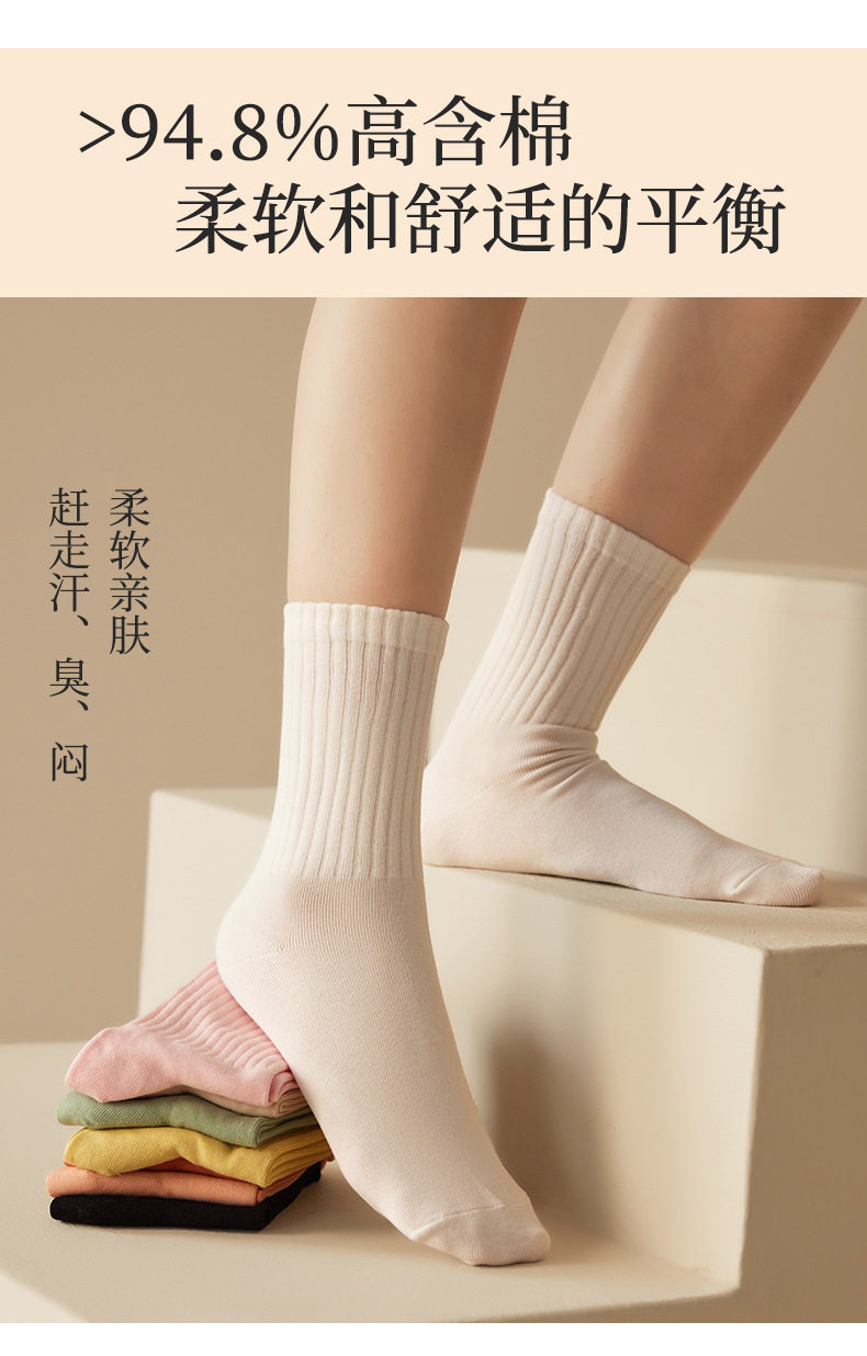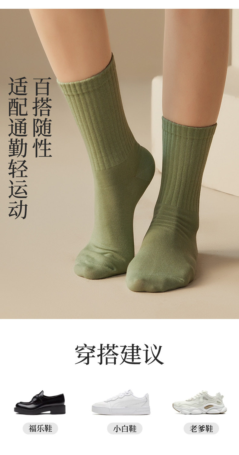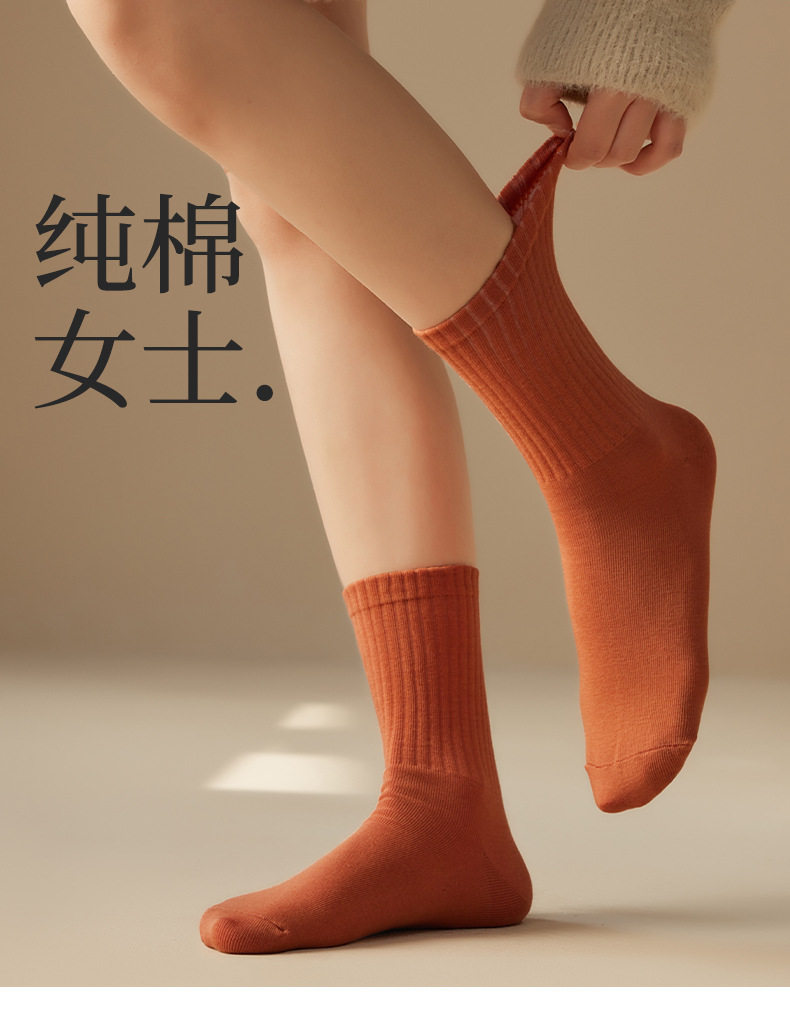 SYWY-X09 【1双】中筒秋冬纯棉袜子女士抗菌防臭吸汗运动休闲袜全棉防滑女春秋季棉