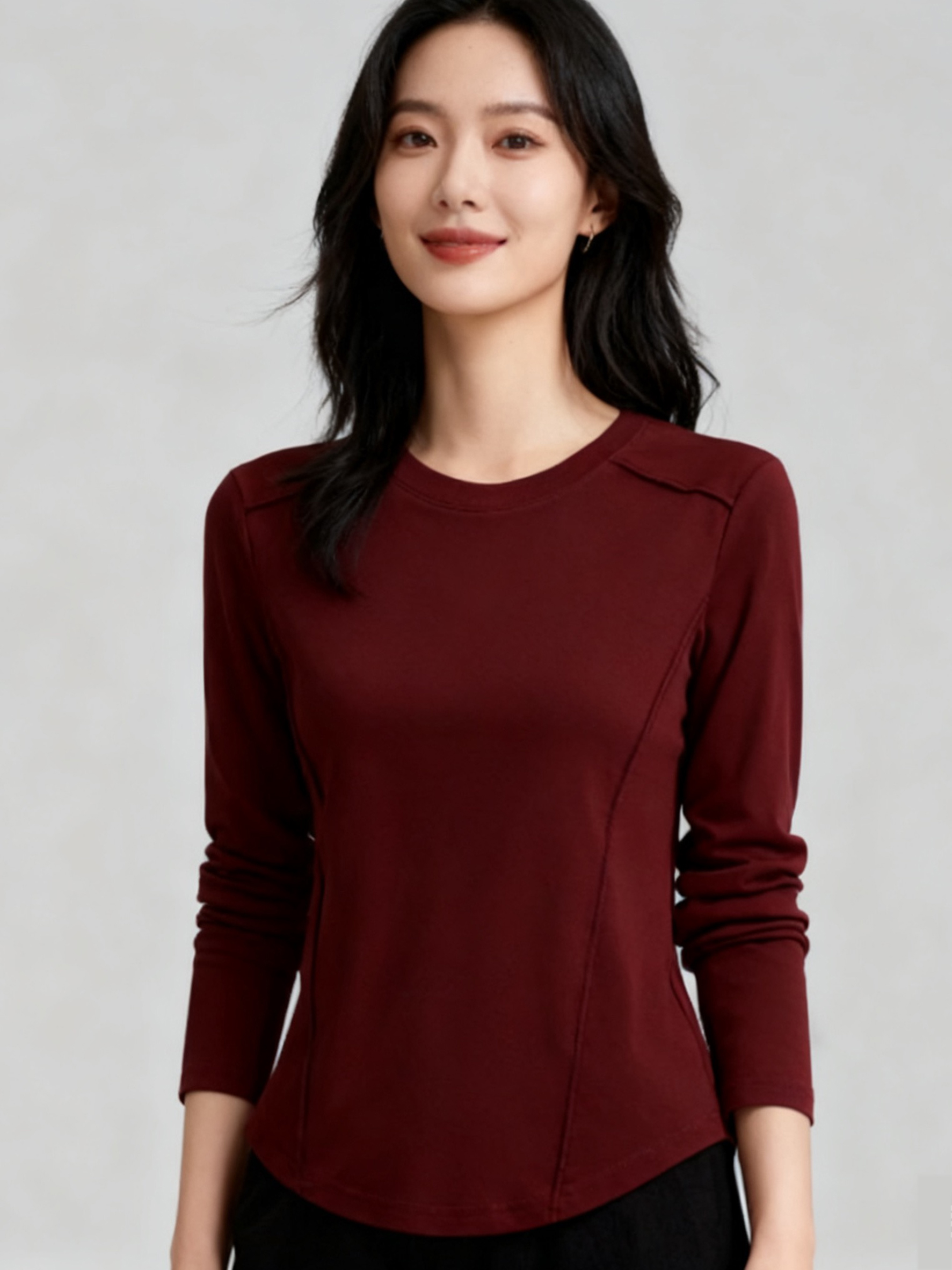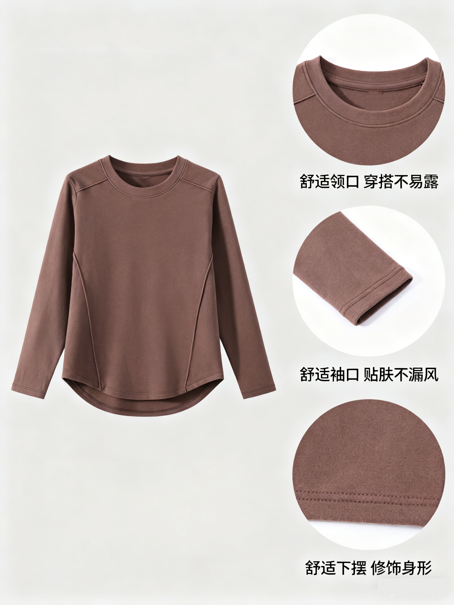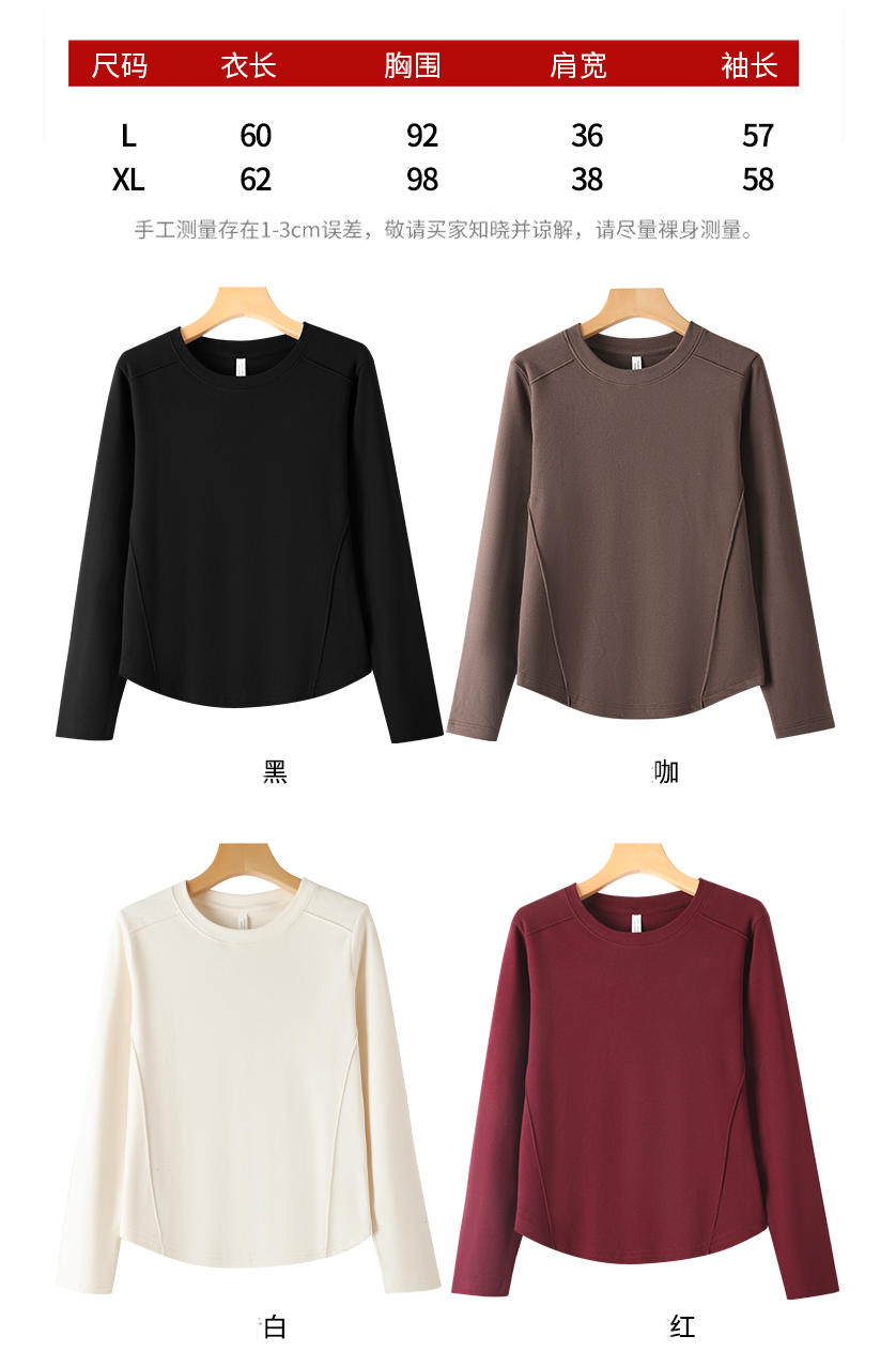 【两件119】臣禾 【发热长袖瘦瘦T】正肩圆领休闲T恤 一触即暖德绒上衣 JZ253052275