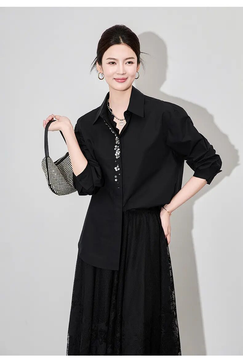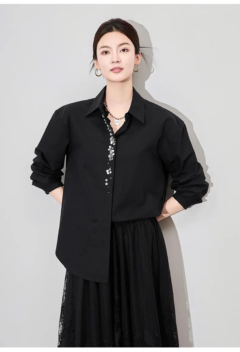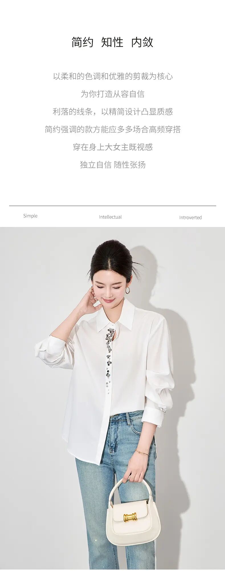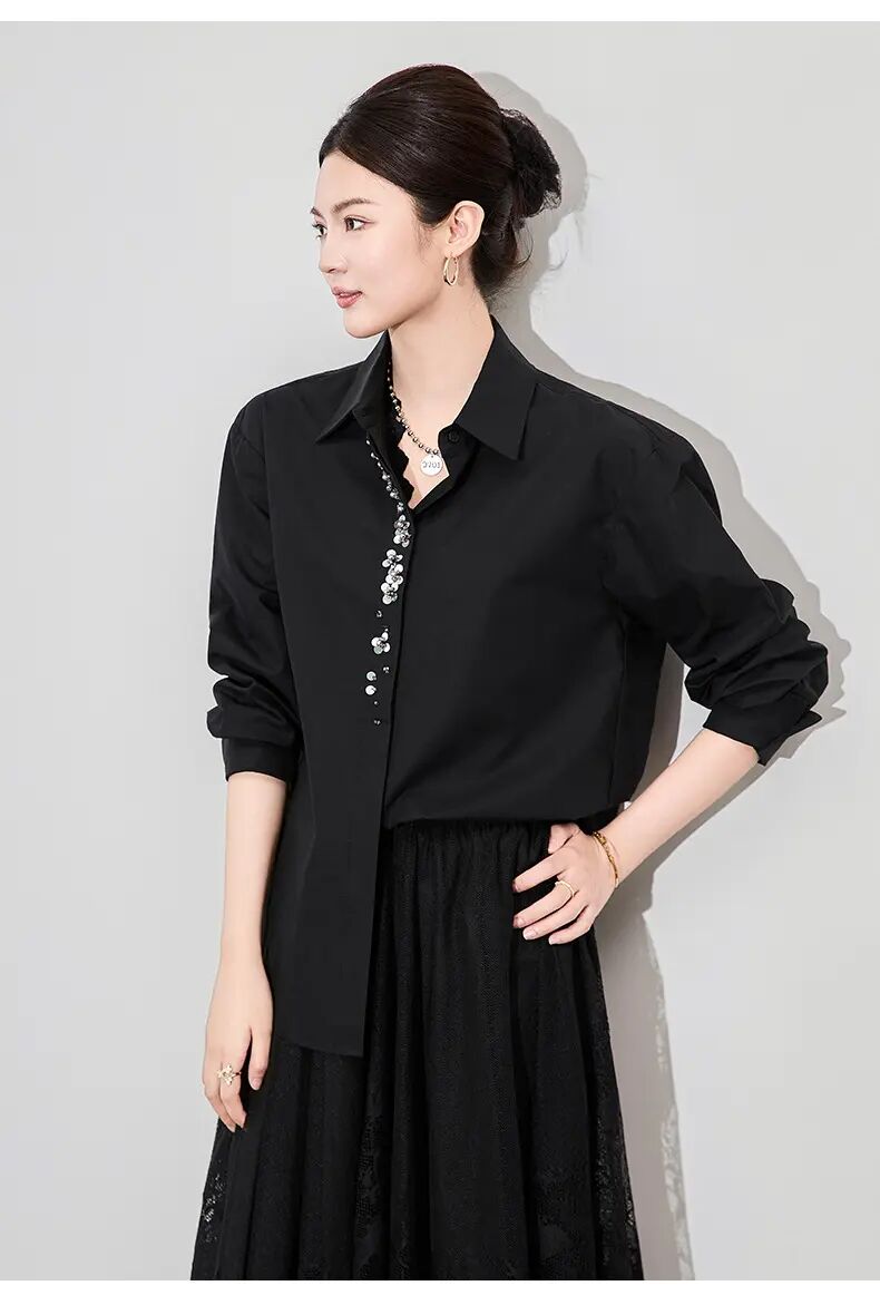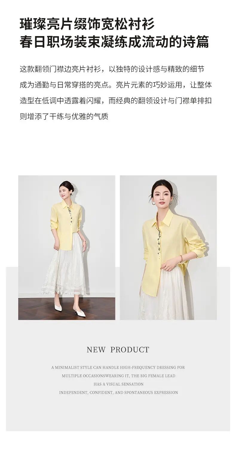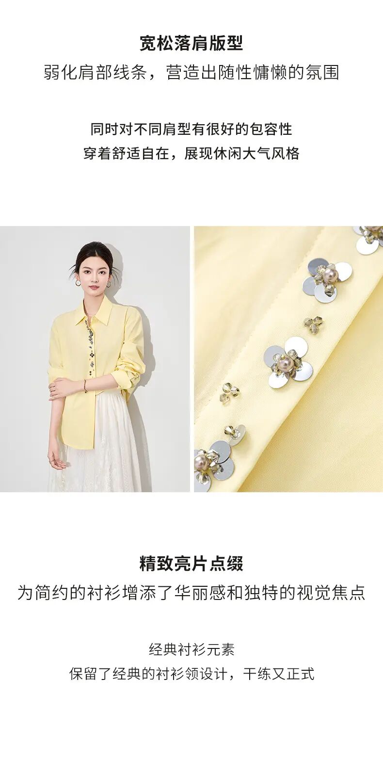 【高货wl】全新升级【铂金会员257/天猫339/差价82】(95830) 洛诗琳25春时尚设计感洋气亮片长袖上衣精致通勤新款衬衫