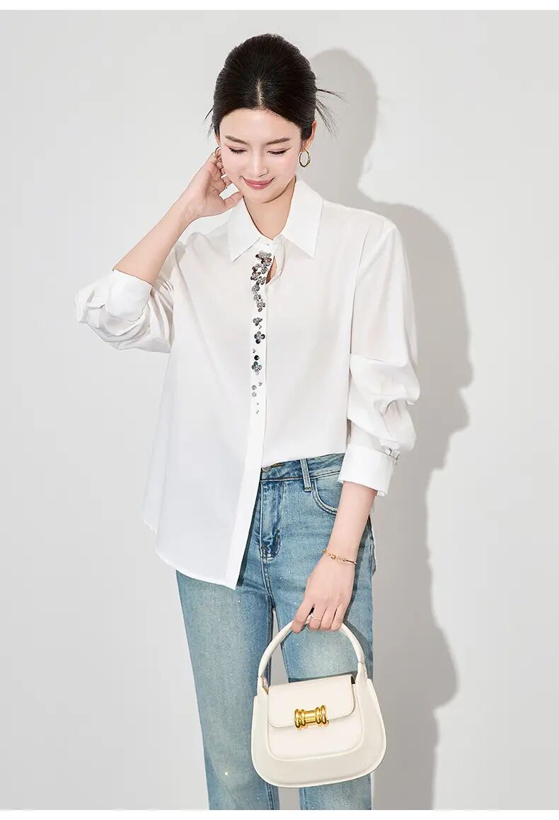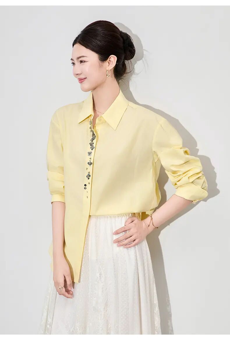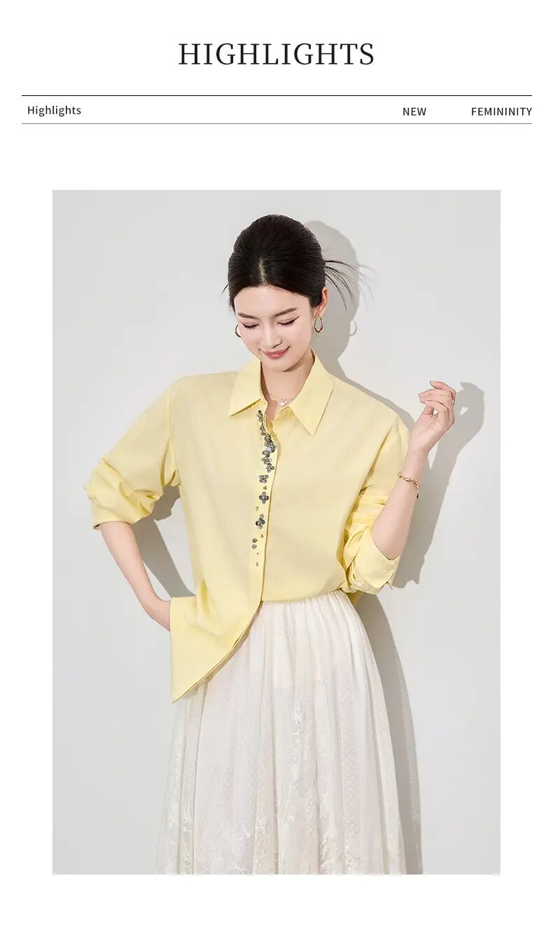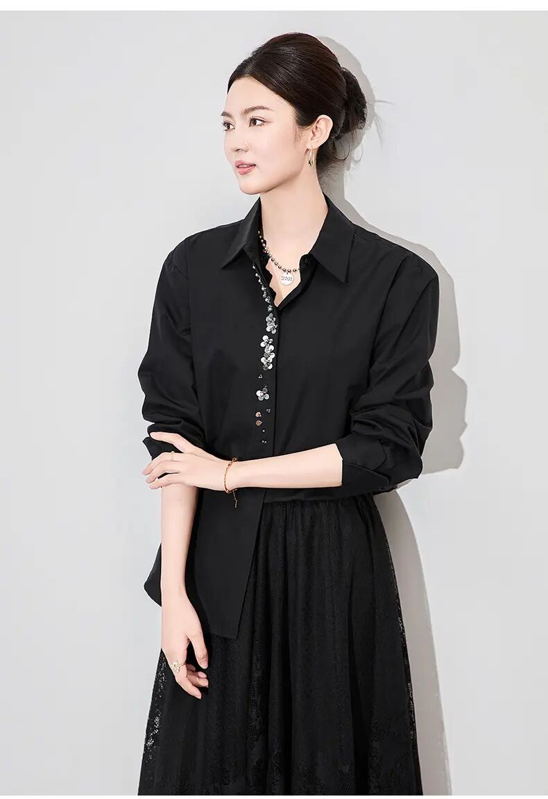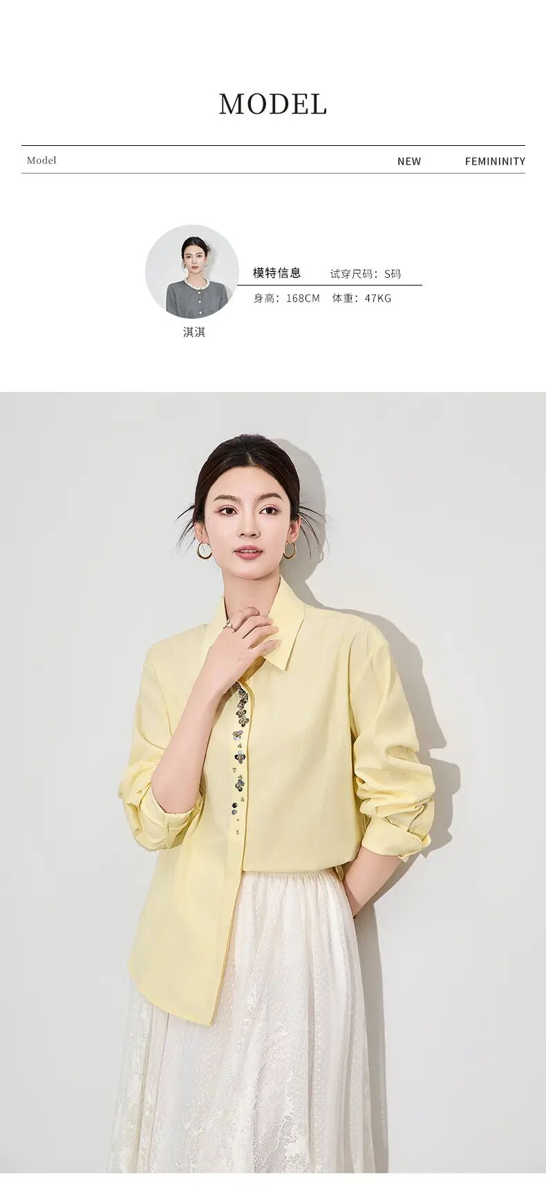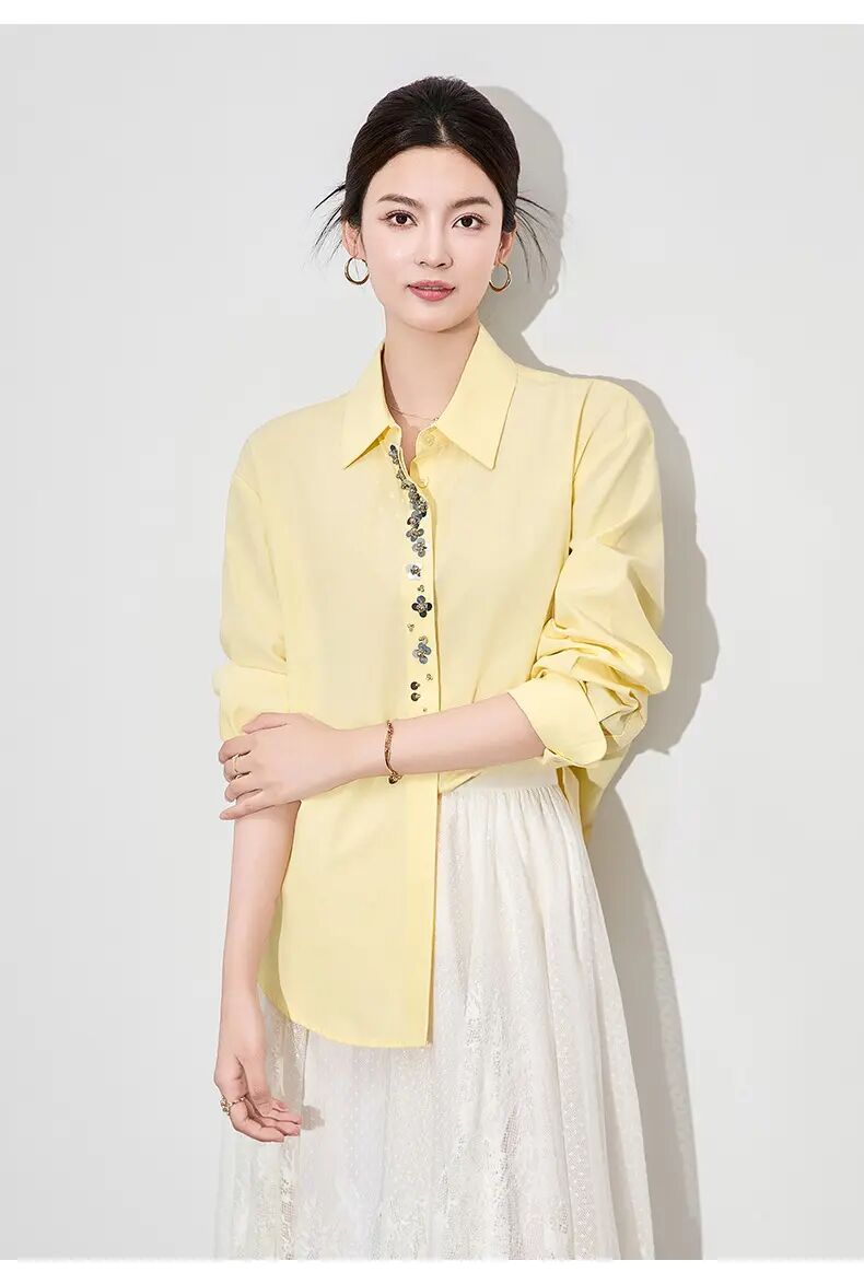 【高货wl】全新升级【铂金会员257/天猫339/差价82】(95830) 洛诗琳25春时尚设计感洋气亮片长袖上衣精致通勤新款衬衫