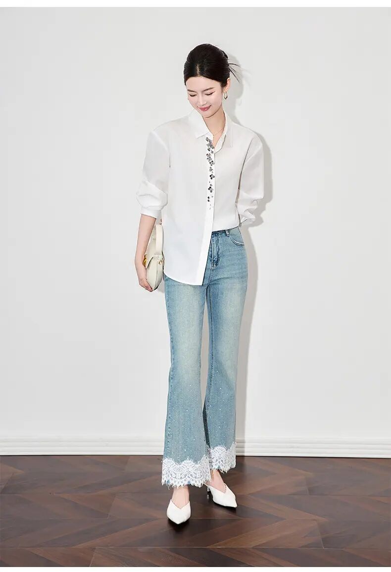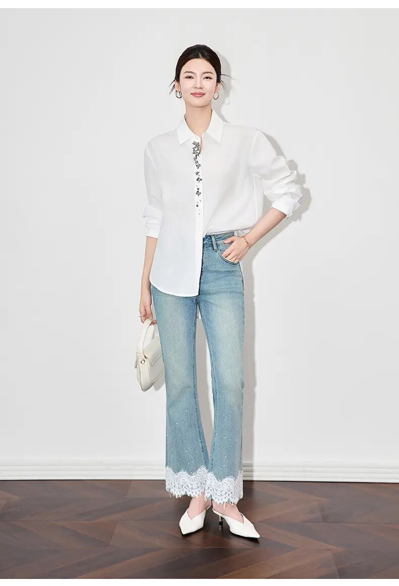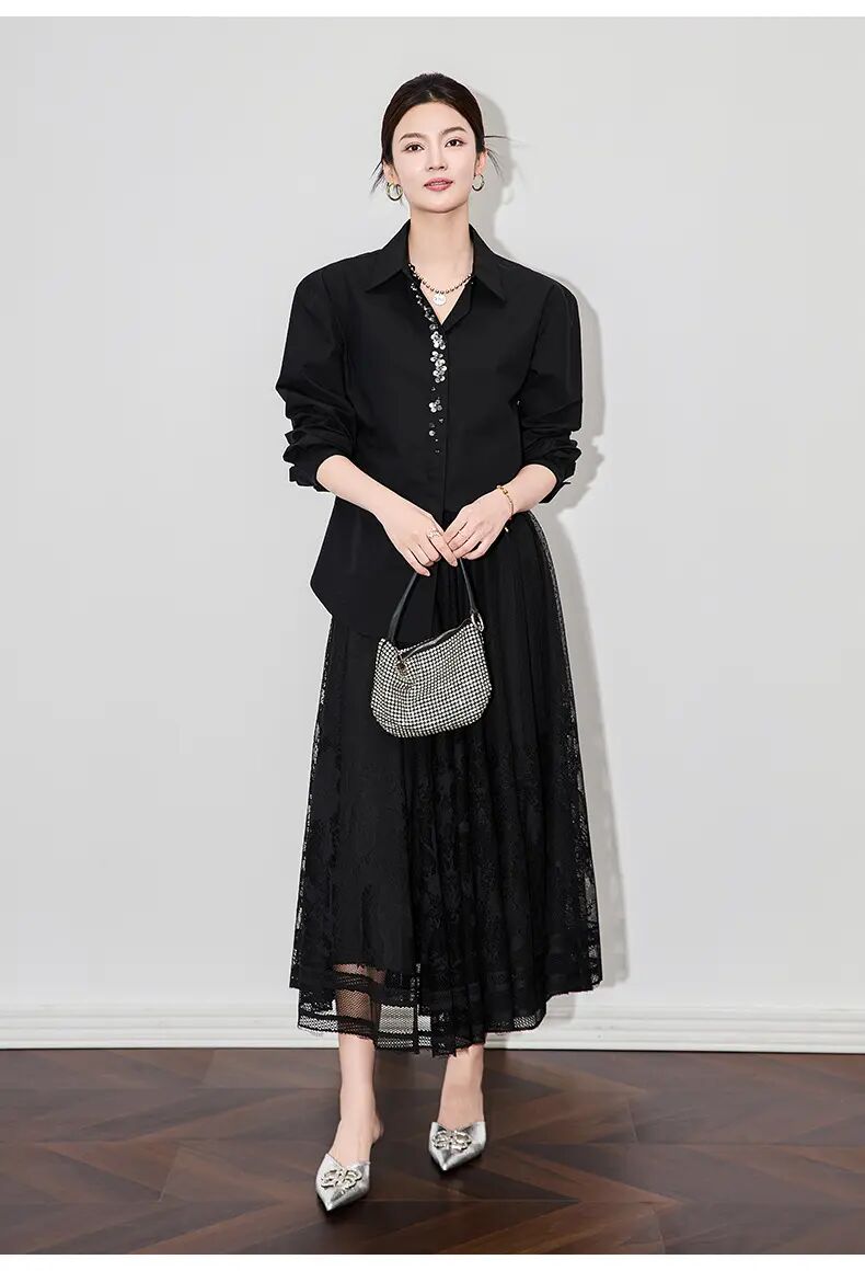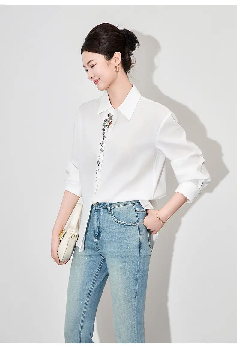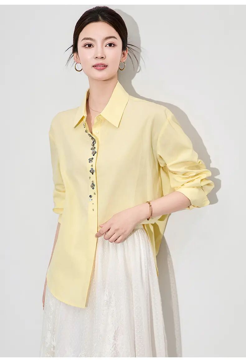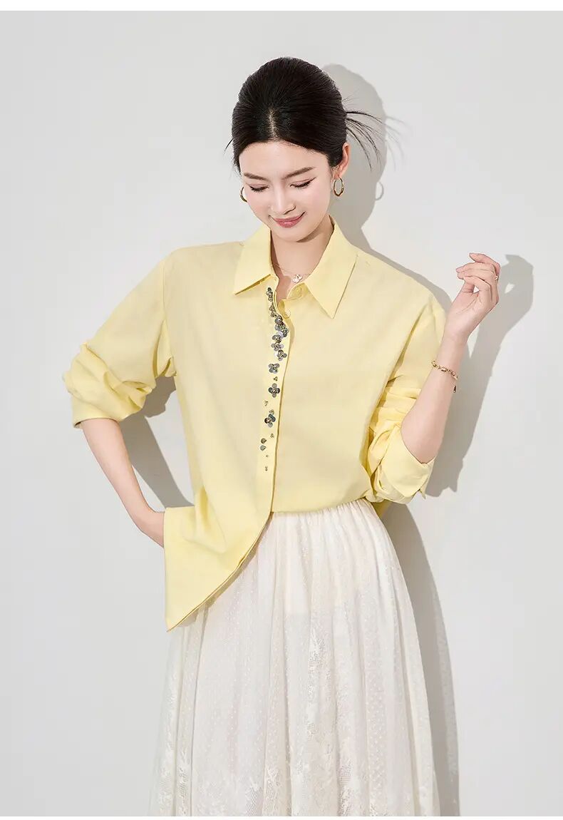 【高货wl】全新升级【铂金会员257/天猫339/差价82】(95830) 洛诗琳25春时尚设计感洋气亮片长袖上衣精致通勤新款衬衫