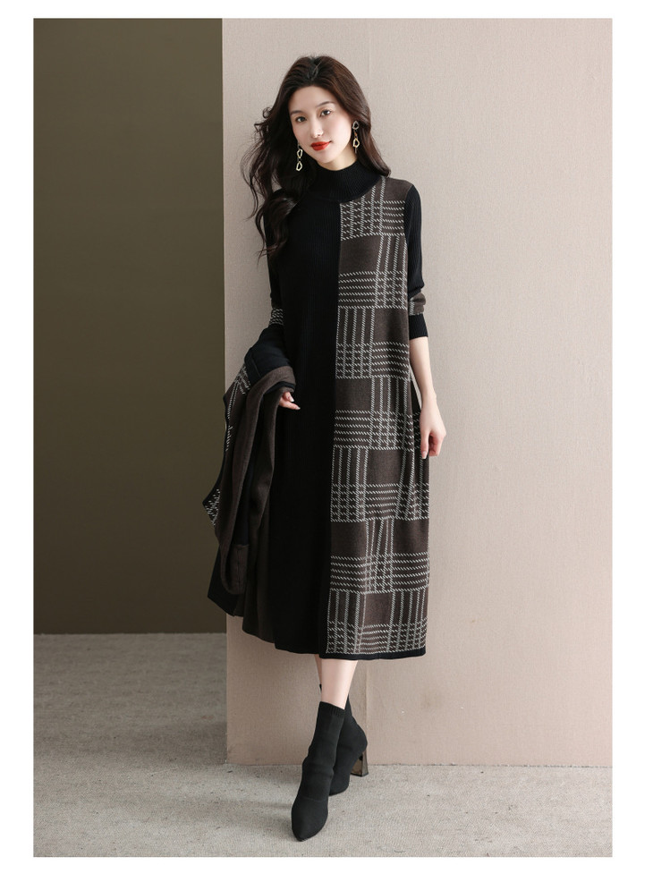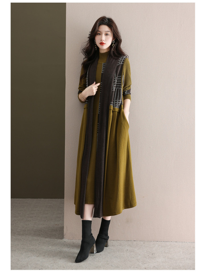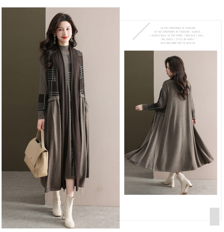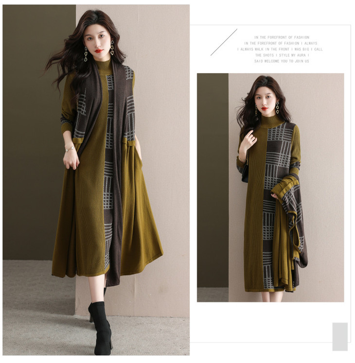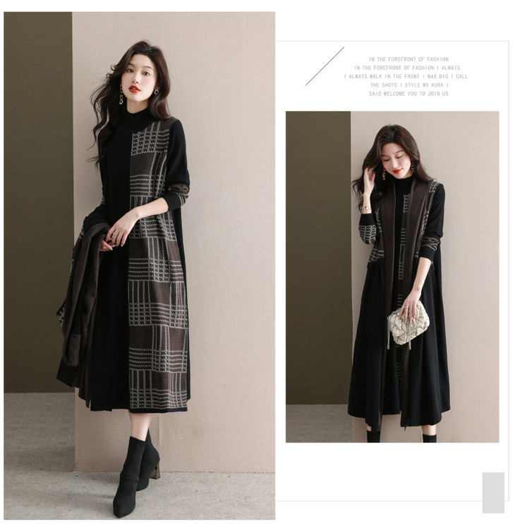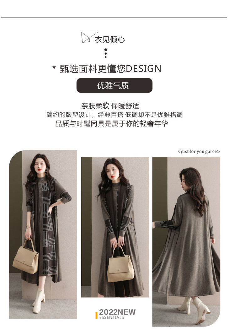 QY 442羊毛马甲两件套连衣裙宽松大码