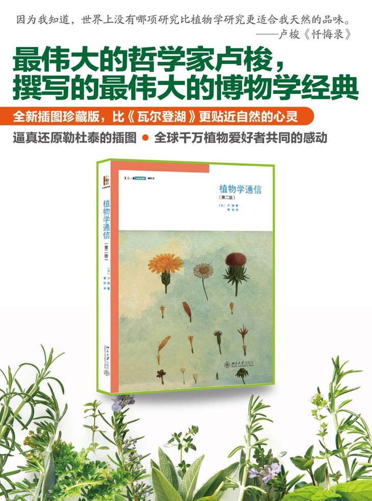 卢梭《植物学通信》,几百年来感动了千千万万的植物爱好者,本次中文版采用最好的版面、最好的开本、最好的纸张,逼真还原勒杜泰的插图,北大哲学系教授、博物学者刘华杰亲自撰写序言并提供多张中国植物的精美彩图。
