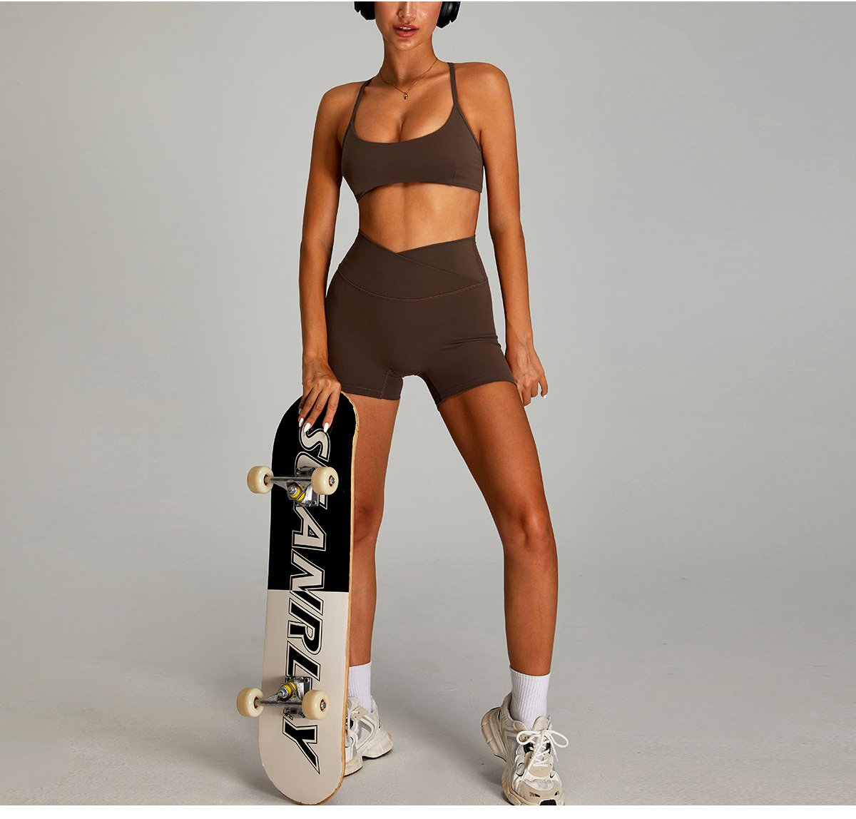 跃牌【化蝶双飞】系列 裸感紧身美背瑜伽文胸女速干吊带瑜伽服跑步健身运动内衣TM0257+TM0255