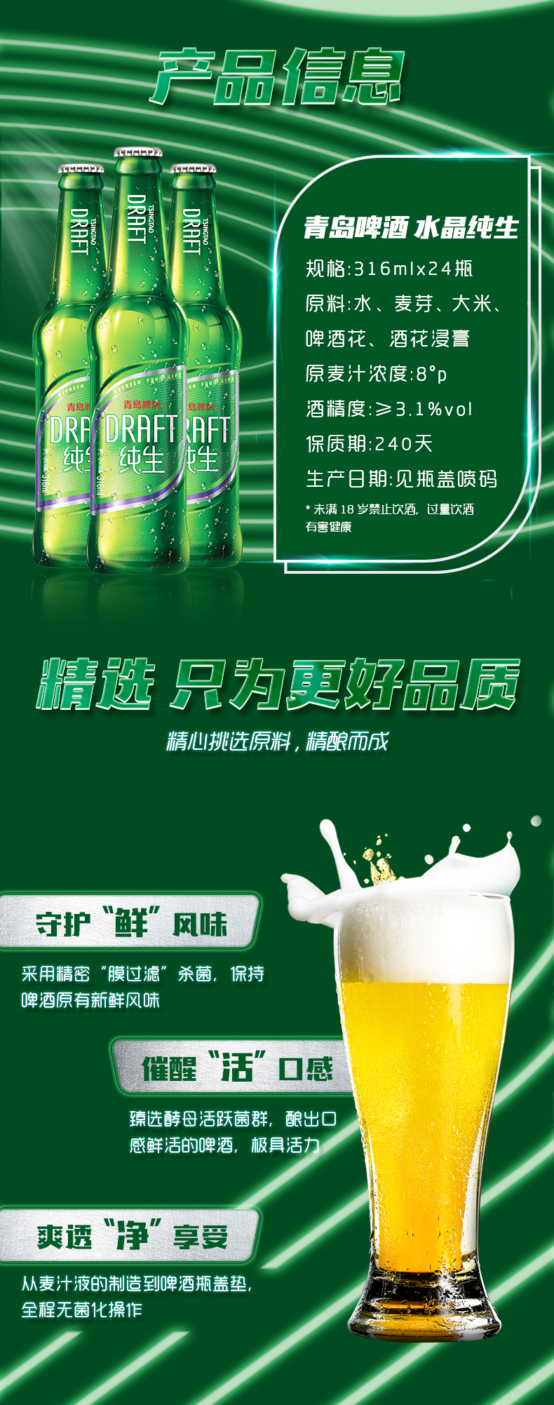青岛啤酒纯生水晶标316ml*24瓶/箱 商品图3