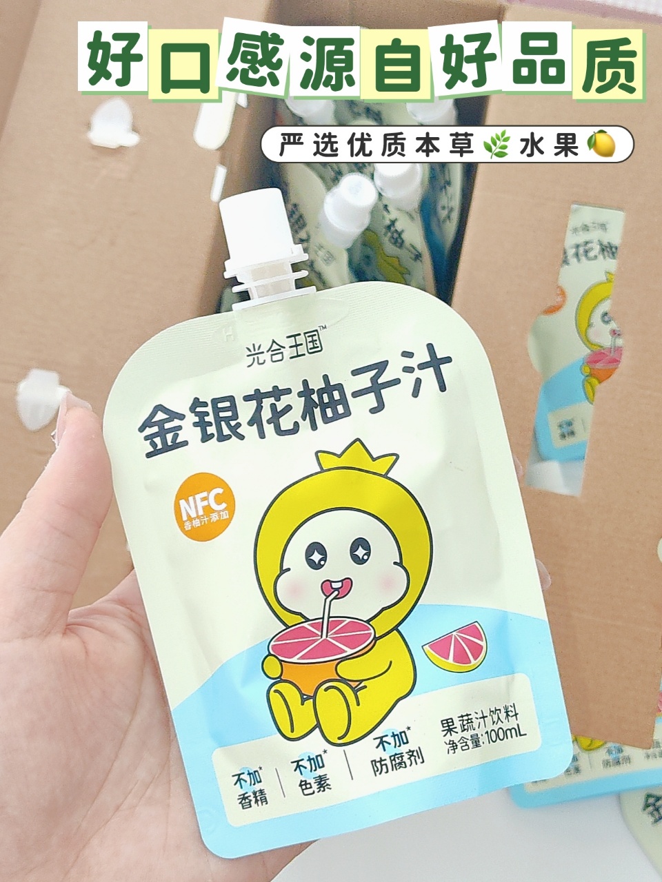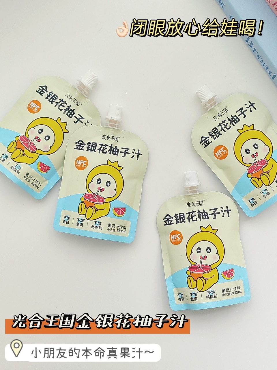 符合中国宝宝体质的『光合王国金银花柚子汁』❗一年四季必备“灭火器”🌈原味真果汁零添加🔥每天一袋补充满满维生素C✅
