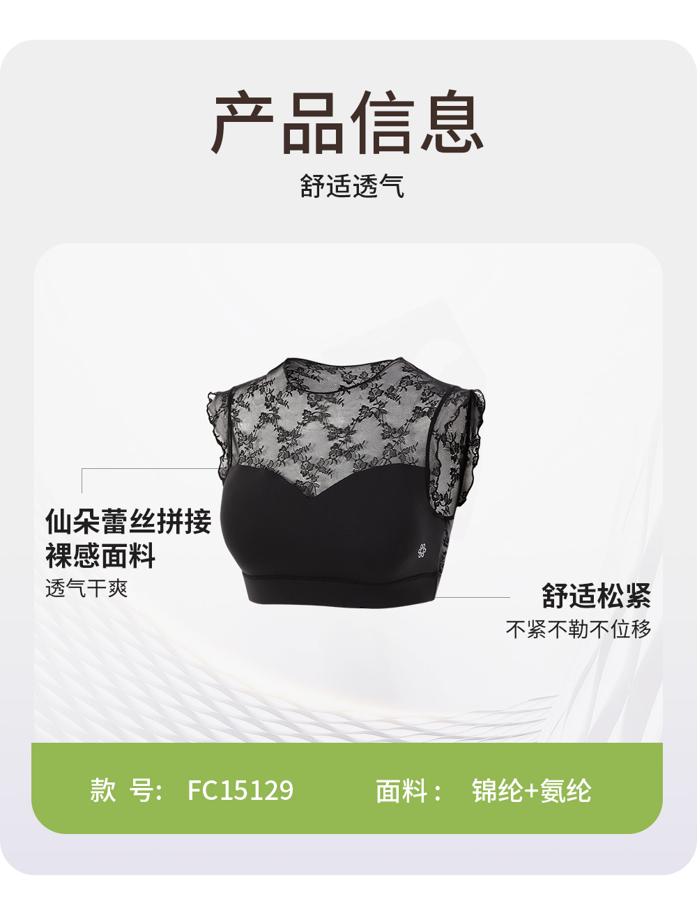 凡圣瑜伽木耳边蕾丝拼接BRA运动胸围 FC15129