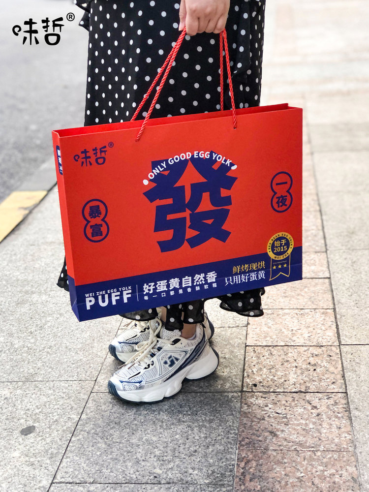 精美大手提,送礼就送味哲蛋黄酥❗ 香酥美味冲撞舌尖 ,美味大享受!UV工艺,精美大手提 ,提好酥,送好礼,自然皆大欢喜。