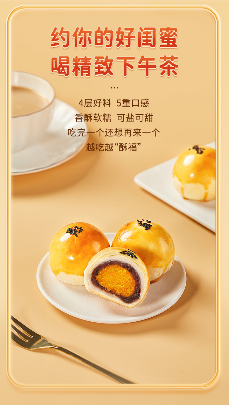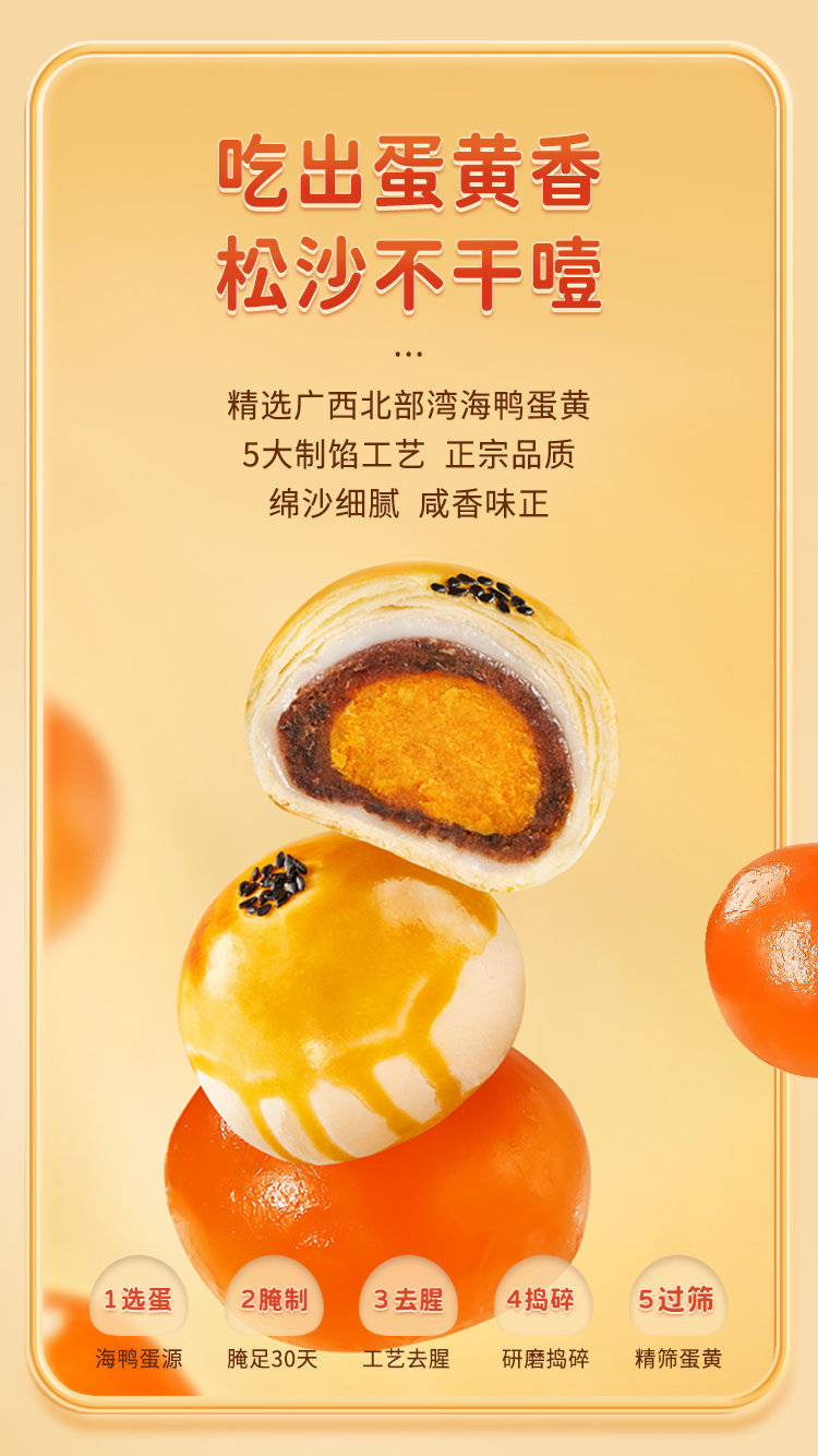 畅销8年!甄选广西北部湾海鸭蛋黄、新西兰牧场黄油、东北低糖红小豆、农场小麦粉、日式雪媚娘、新鲜蛋液等精心烘焙而成,真材实料,好品质才有好味道!