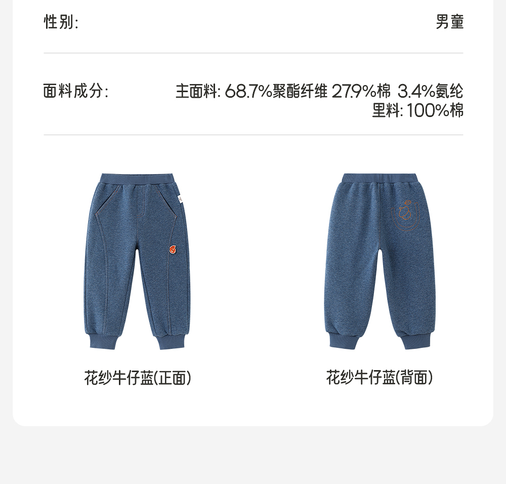 【商场同款】英氏儿童长裤男童秋冬外裤舒适保暖休闲新款收脚裤