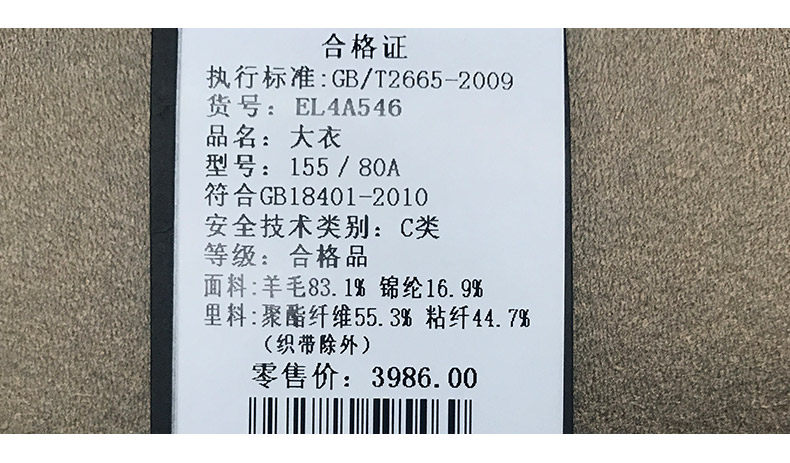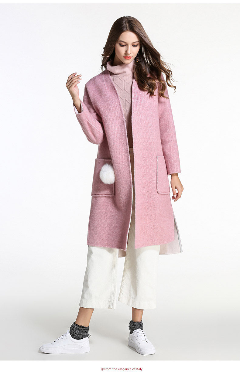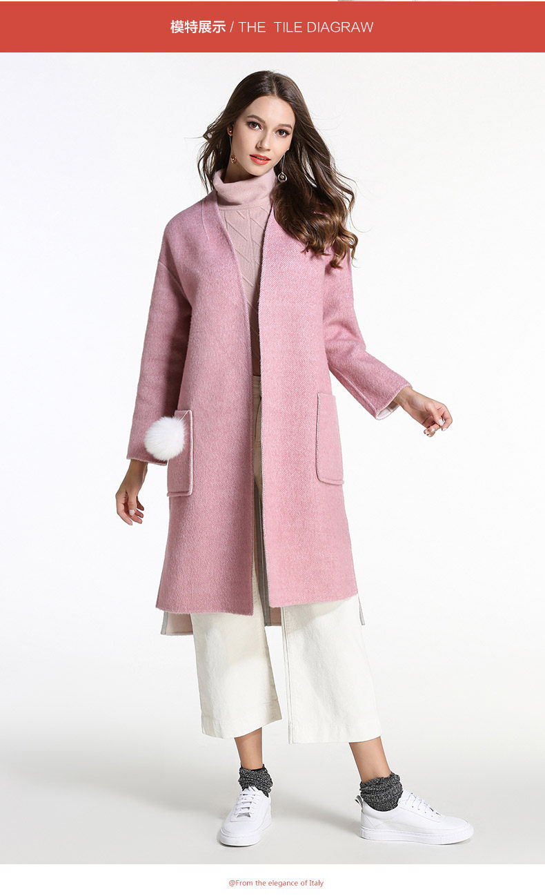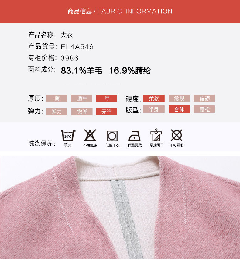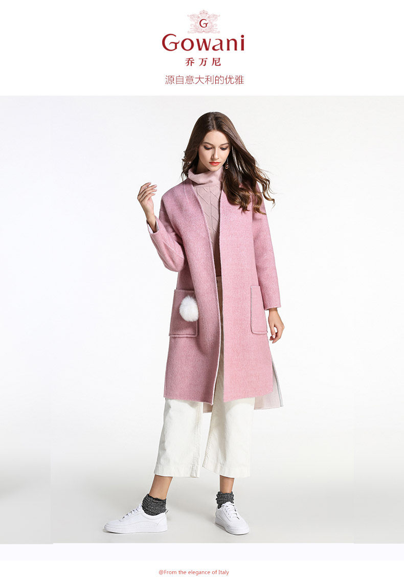 乔万尼修身大码宽松羊毛呢减龄无领呢子大衣EL4A546