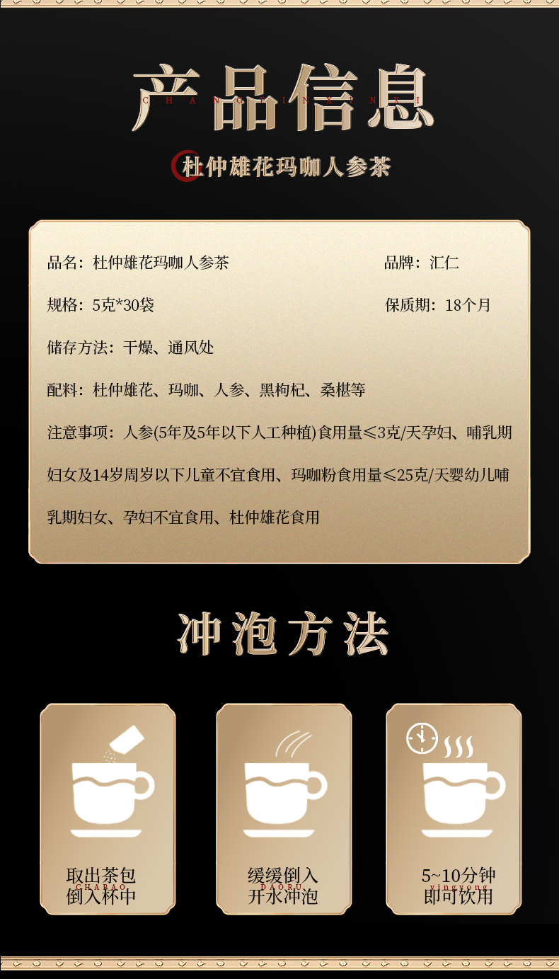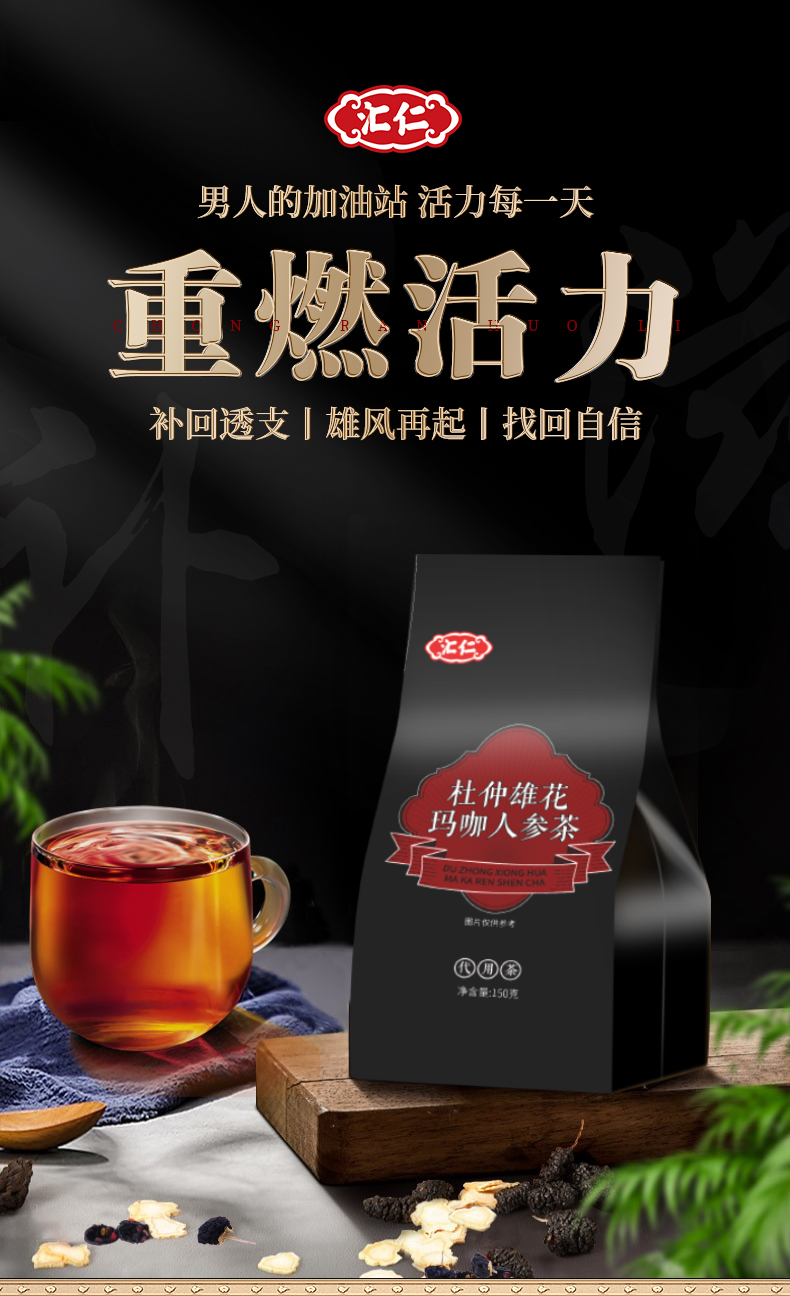 汇仁杜仲雄花玛咖人参茶桑葚黑枸杞茶男人五宝茶男性滋补养生