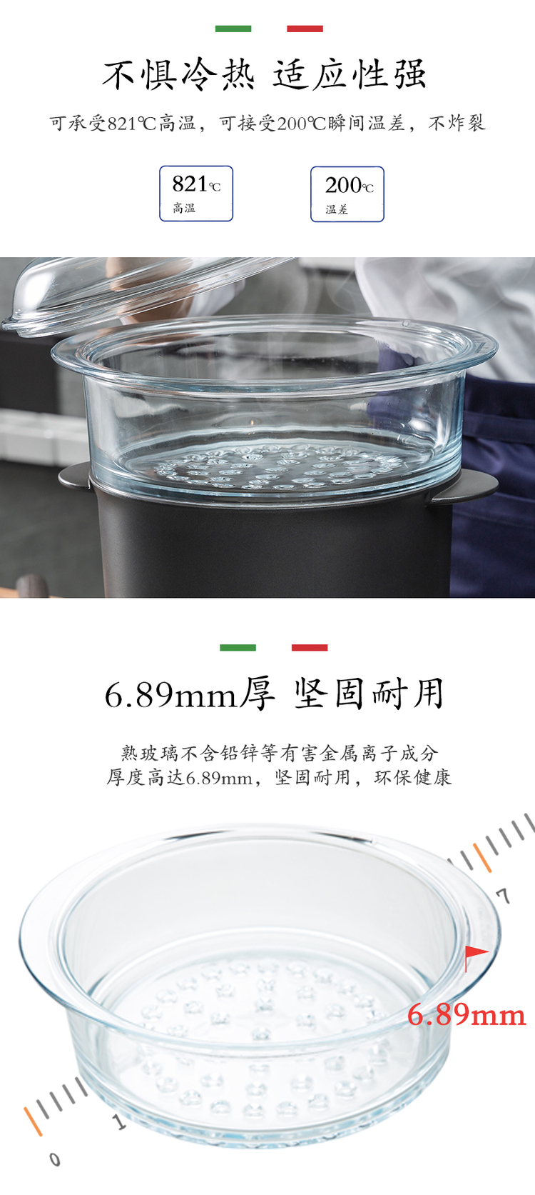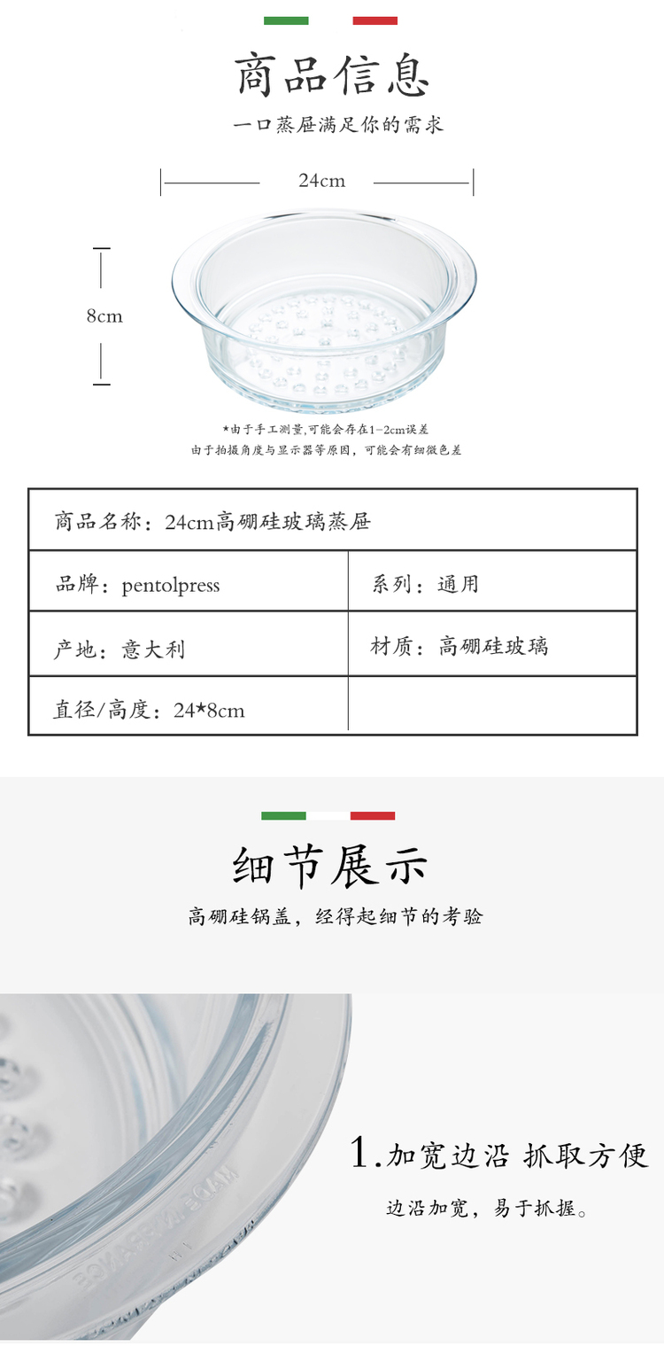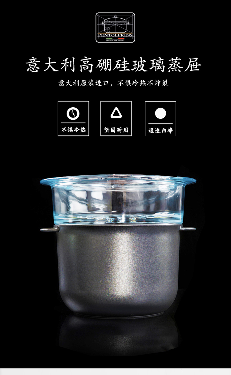 意大利原产PENTOLPRESS高硼硅耐热玻璃双耳蒸笼24cm
