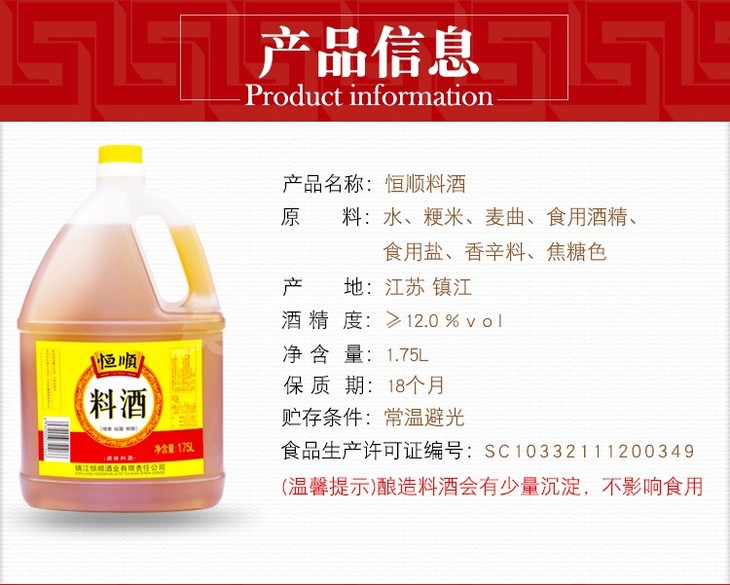 1.75L恒顺料酒