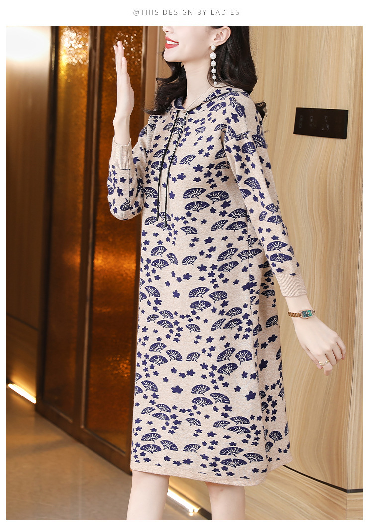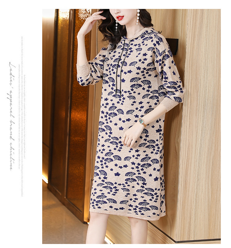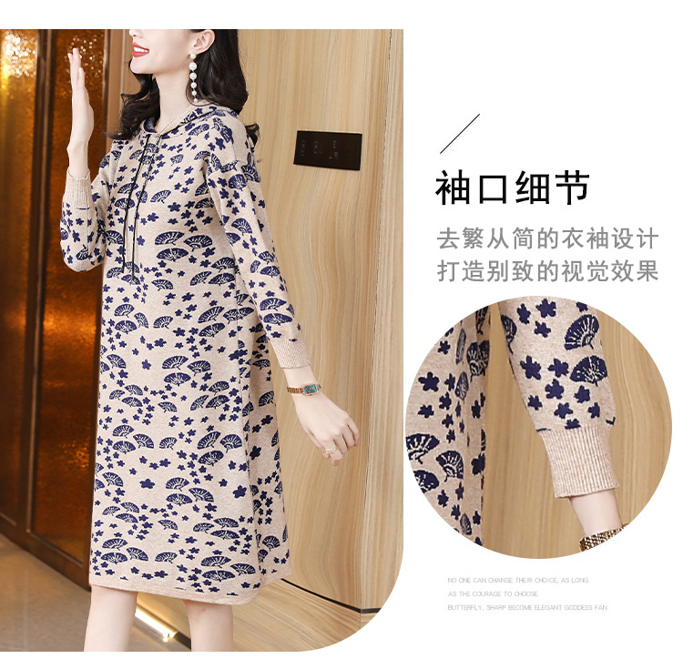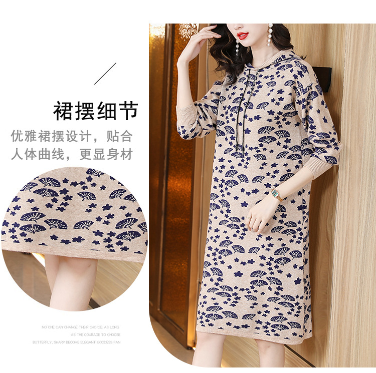 AHM tyy2290针织连帽连衣裙时尚气质遮肉外穿毛衣裙