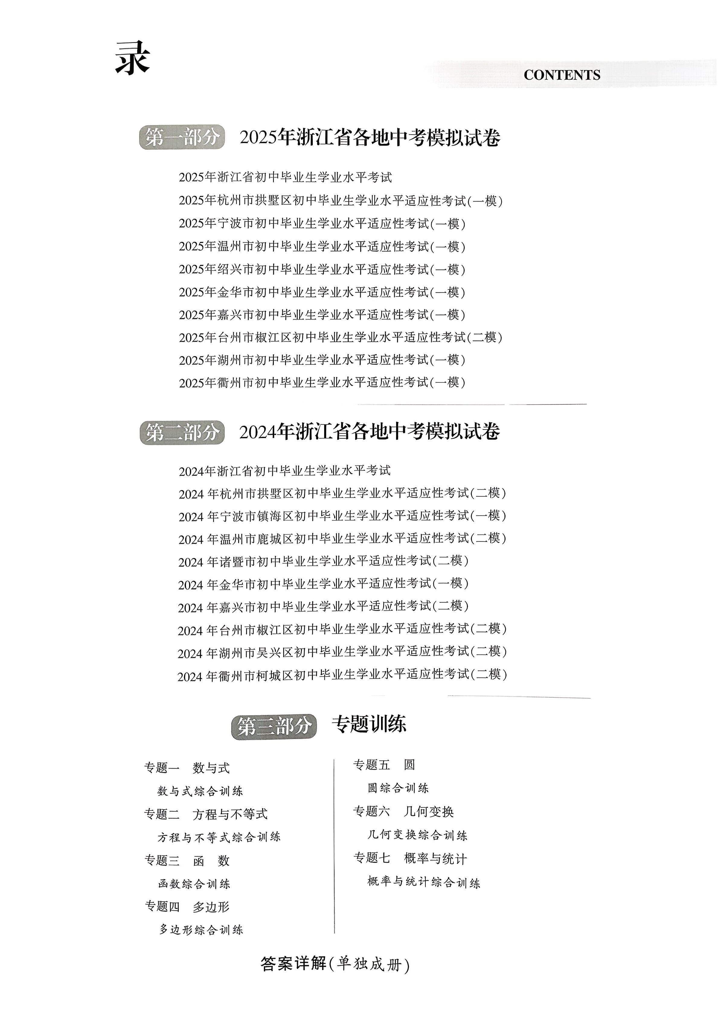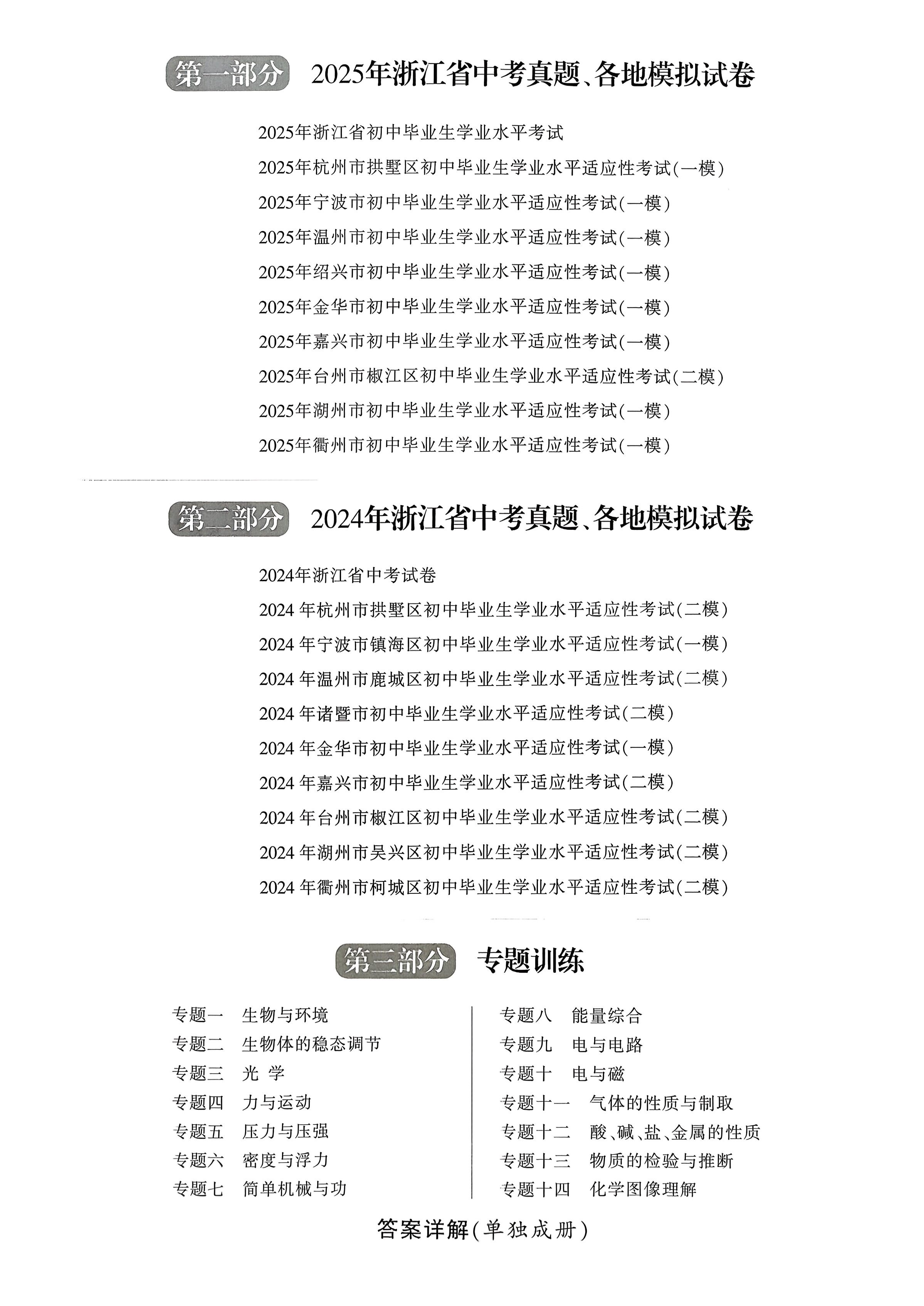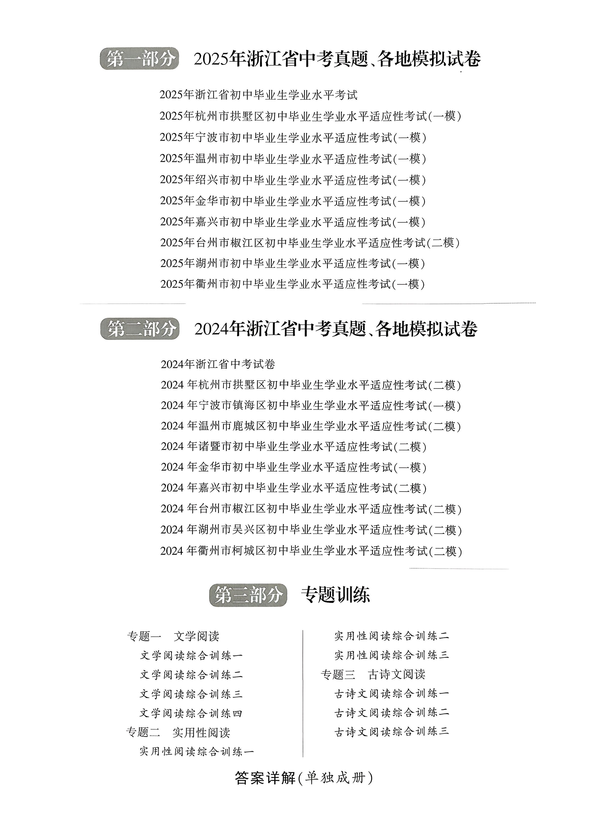 2026版浙江中考精进卷初三真题模拟重点专题综合训练2024-2025