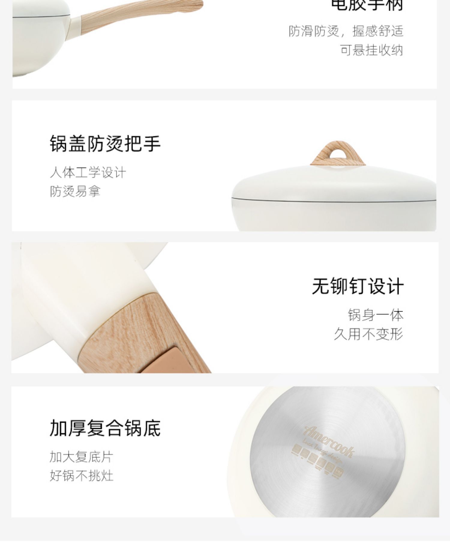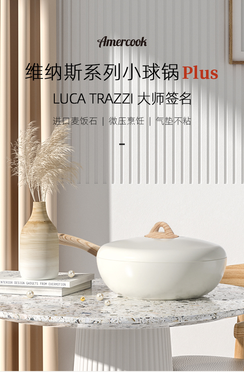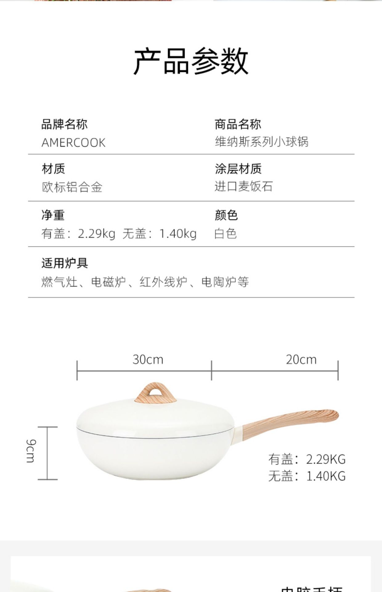 amercook阿米尔维纳斯小球锅麦饭石不粘锅家用炒菜无油烟不粘锅
