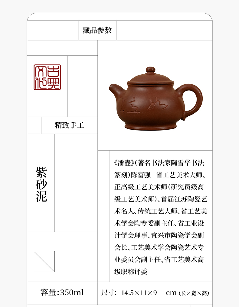 《潘壶》(著名书法家陶雪华书法篆刻)陈富强 省工艺美术大师、正高级工艺美术师(研究员级高级工艺美术师)