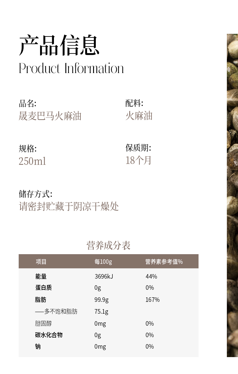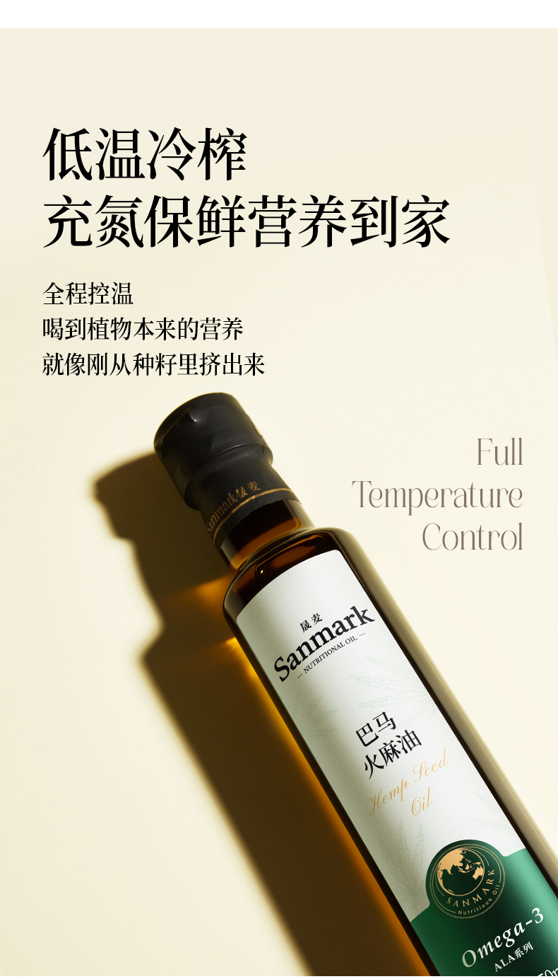 巴马火麻油 | 250ml/瓶 低温冷榨 直饮冷拌 均衡补充Omega-3 源自长寿之乡巴马 晟麦