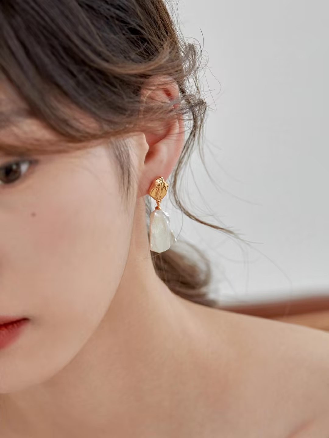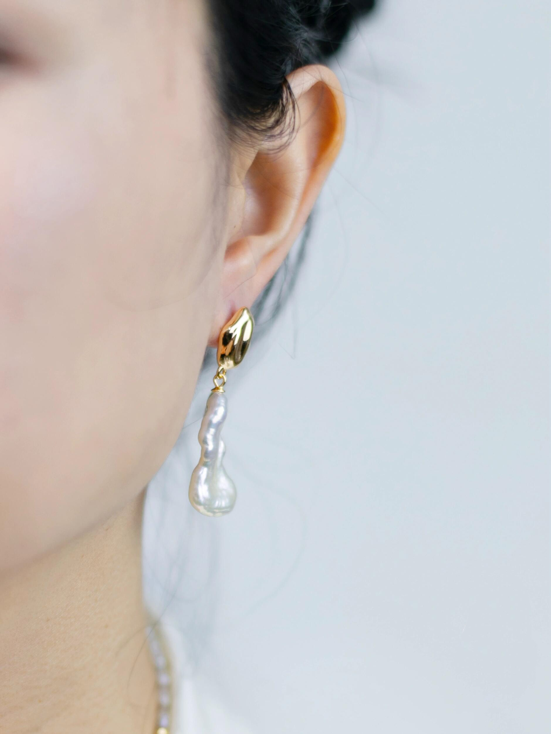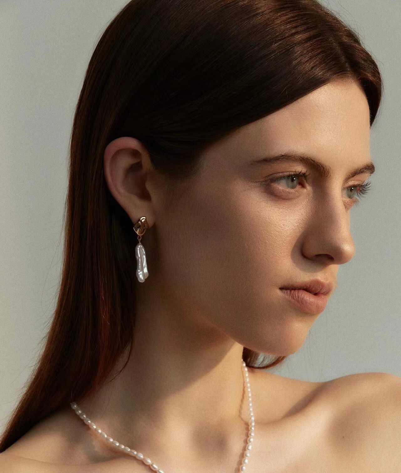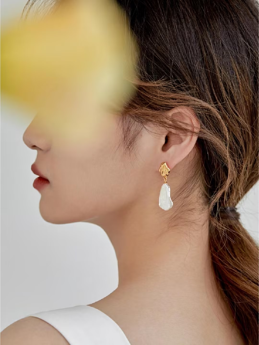 纯银天然巴洛克珍珠耳环,自带滤镜的氛围感