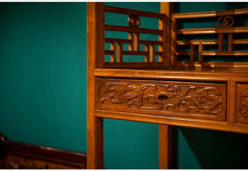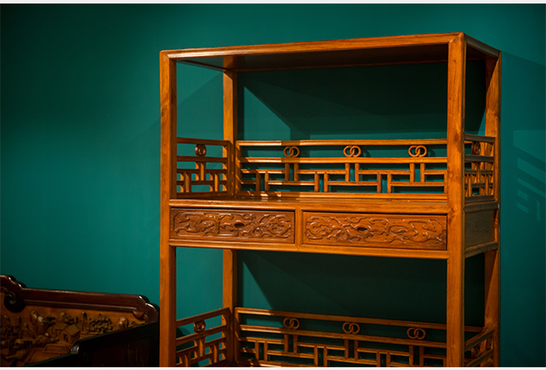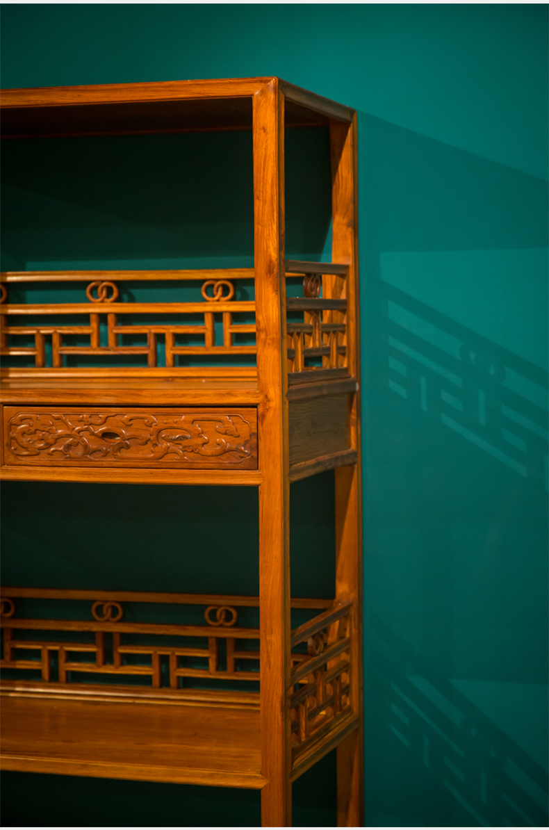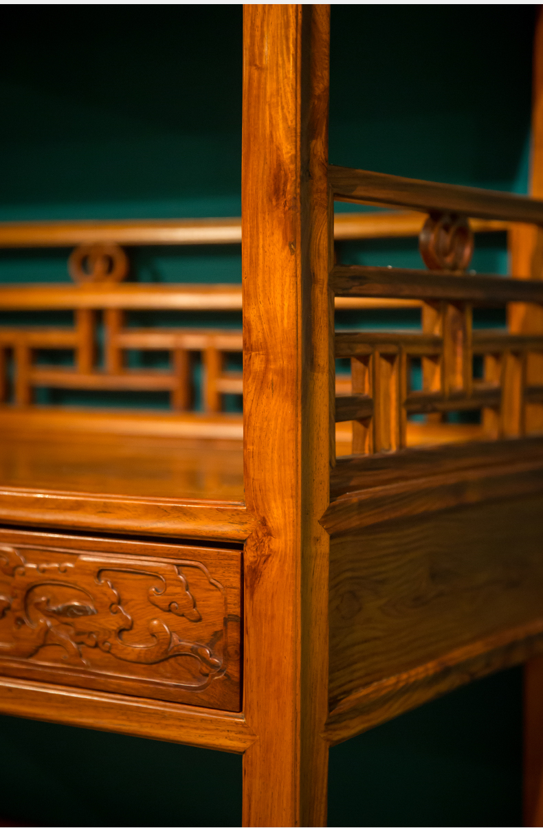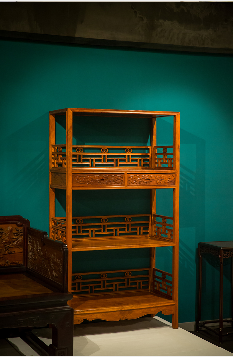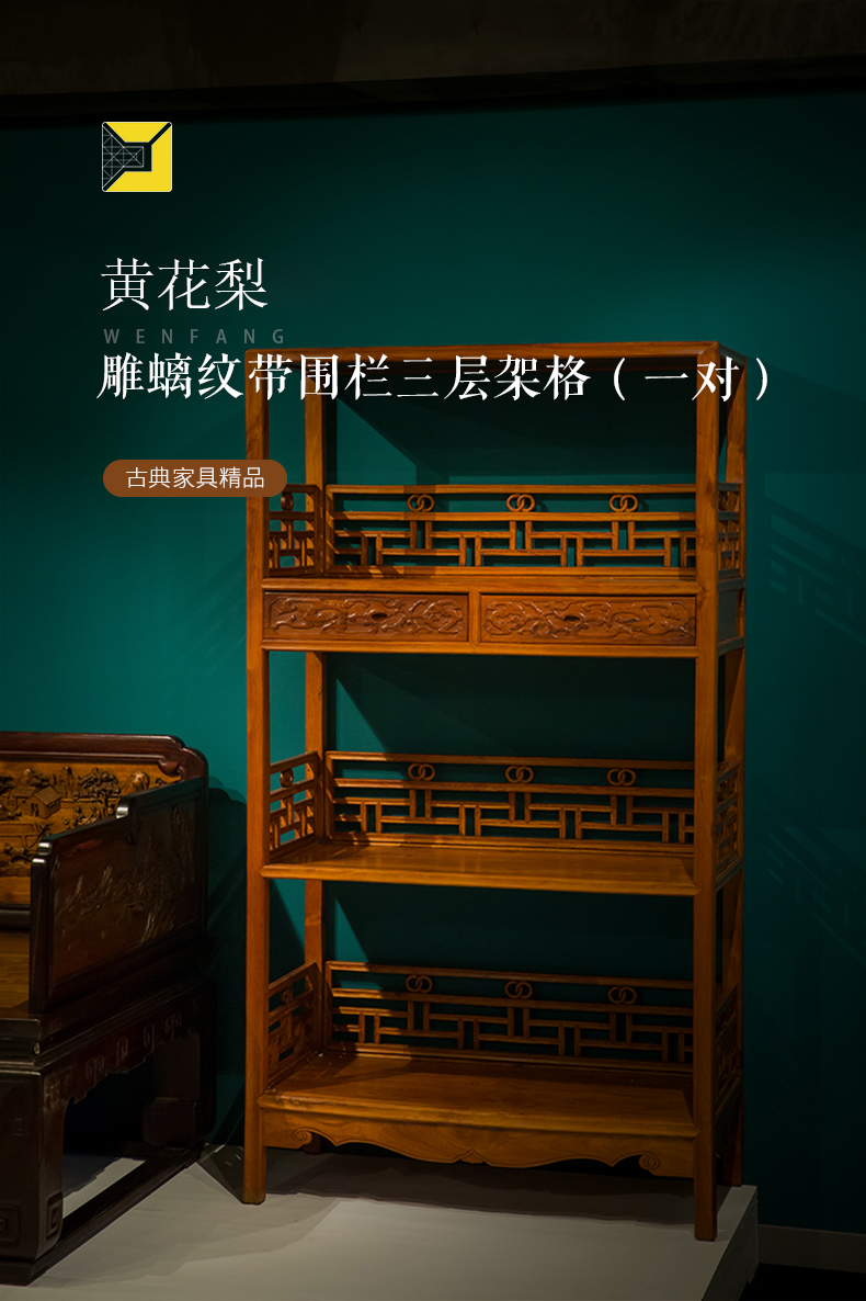 二十世纪 红木嵌云石透雕拐子纹百灵台