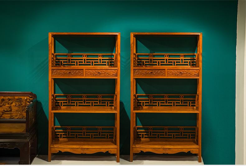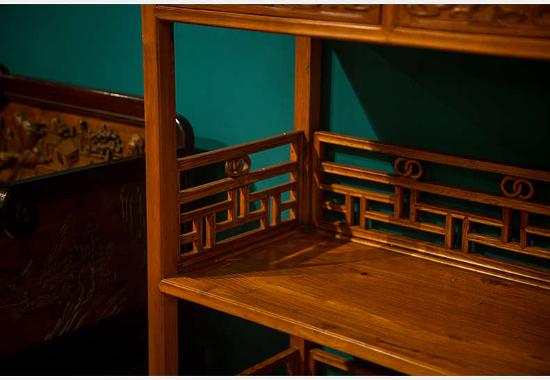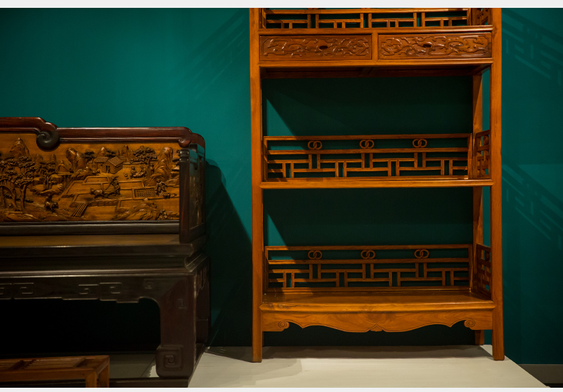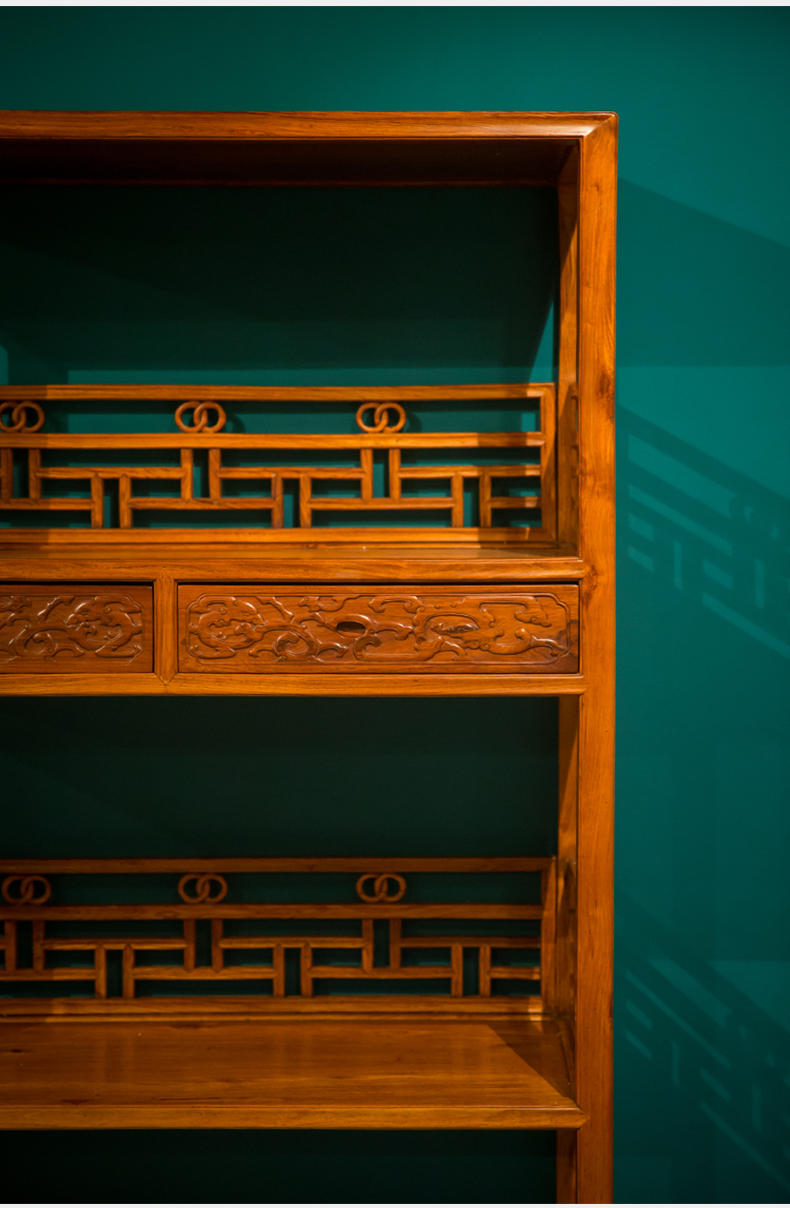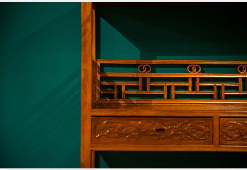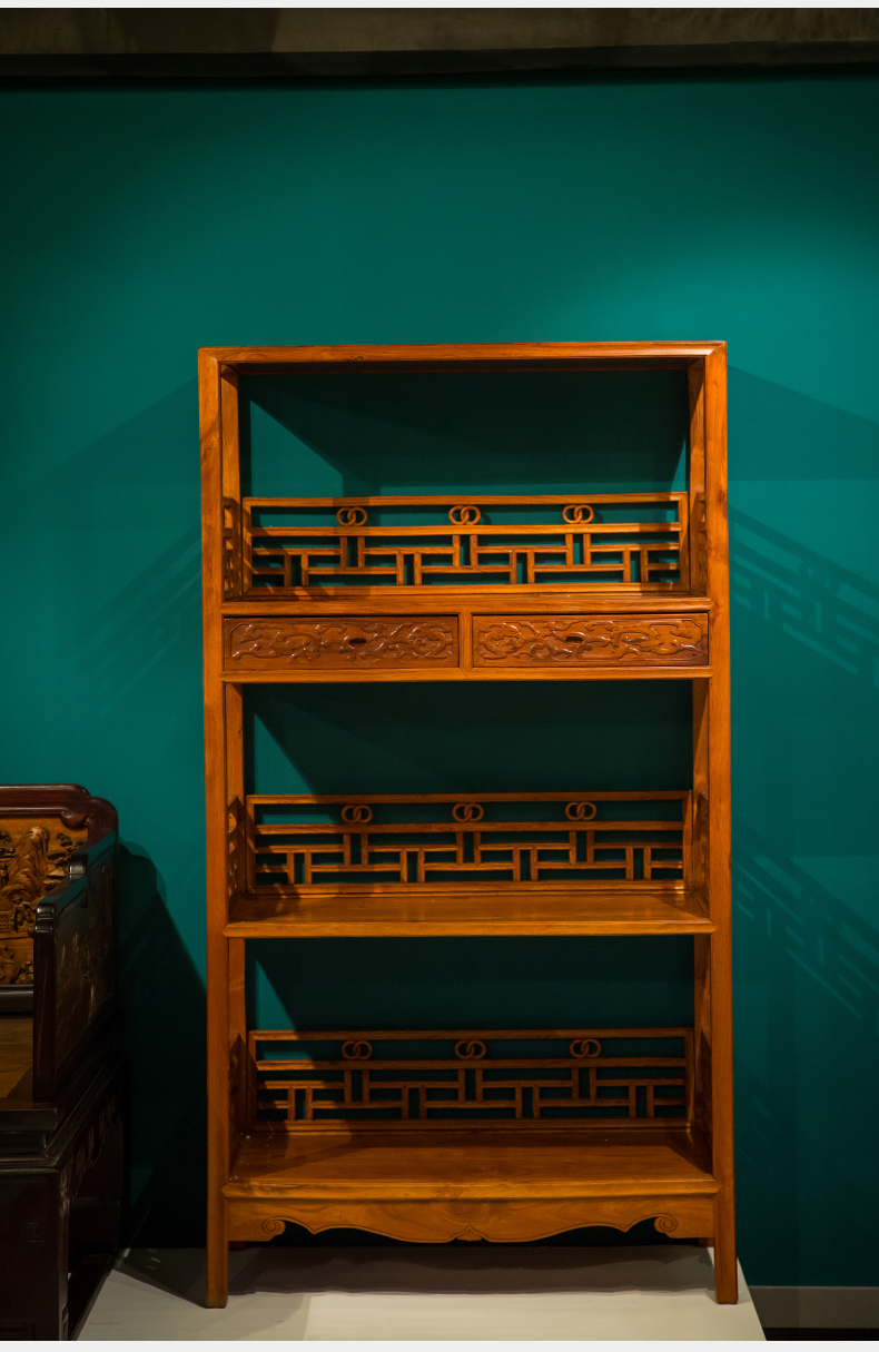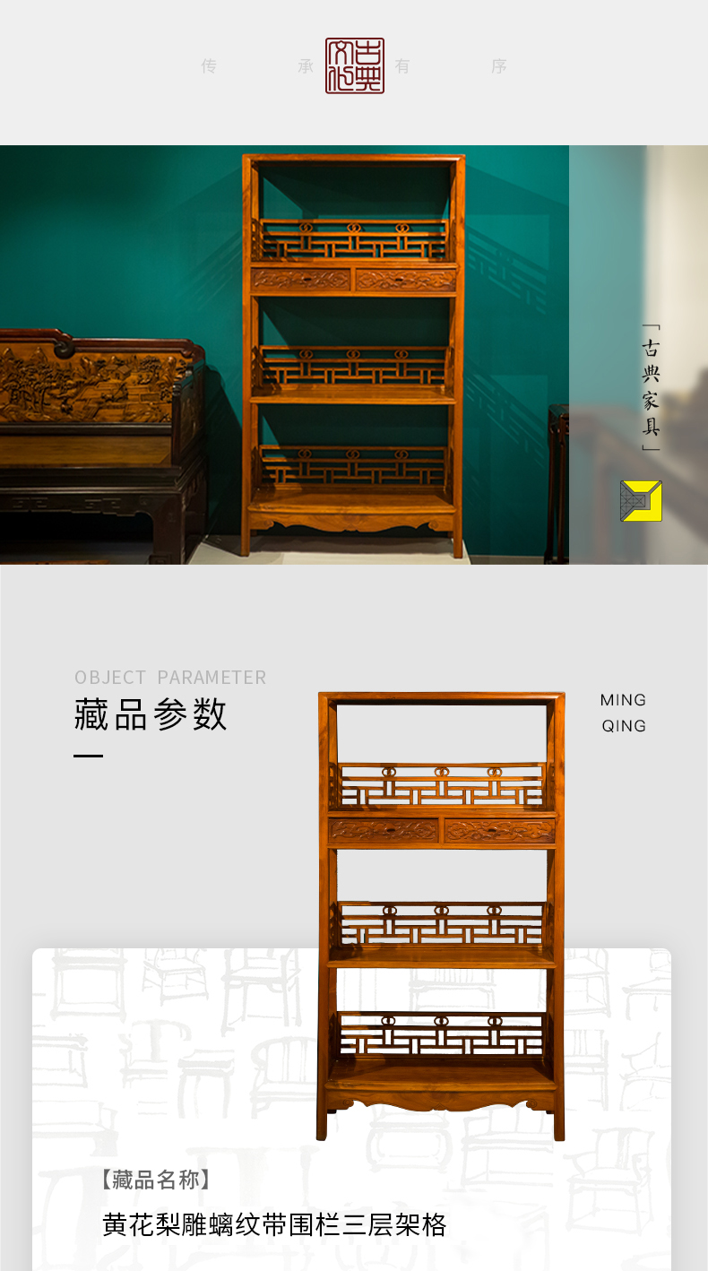 二十世纪 红木嵌云石透雕拐子纹百灵台