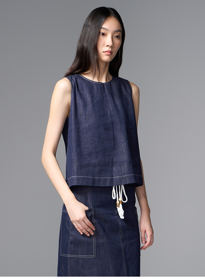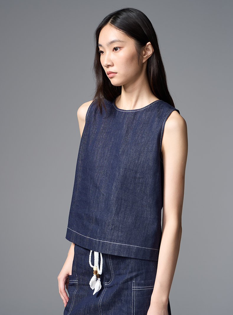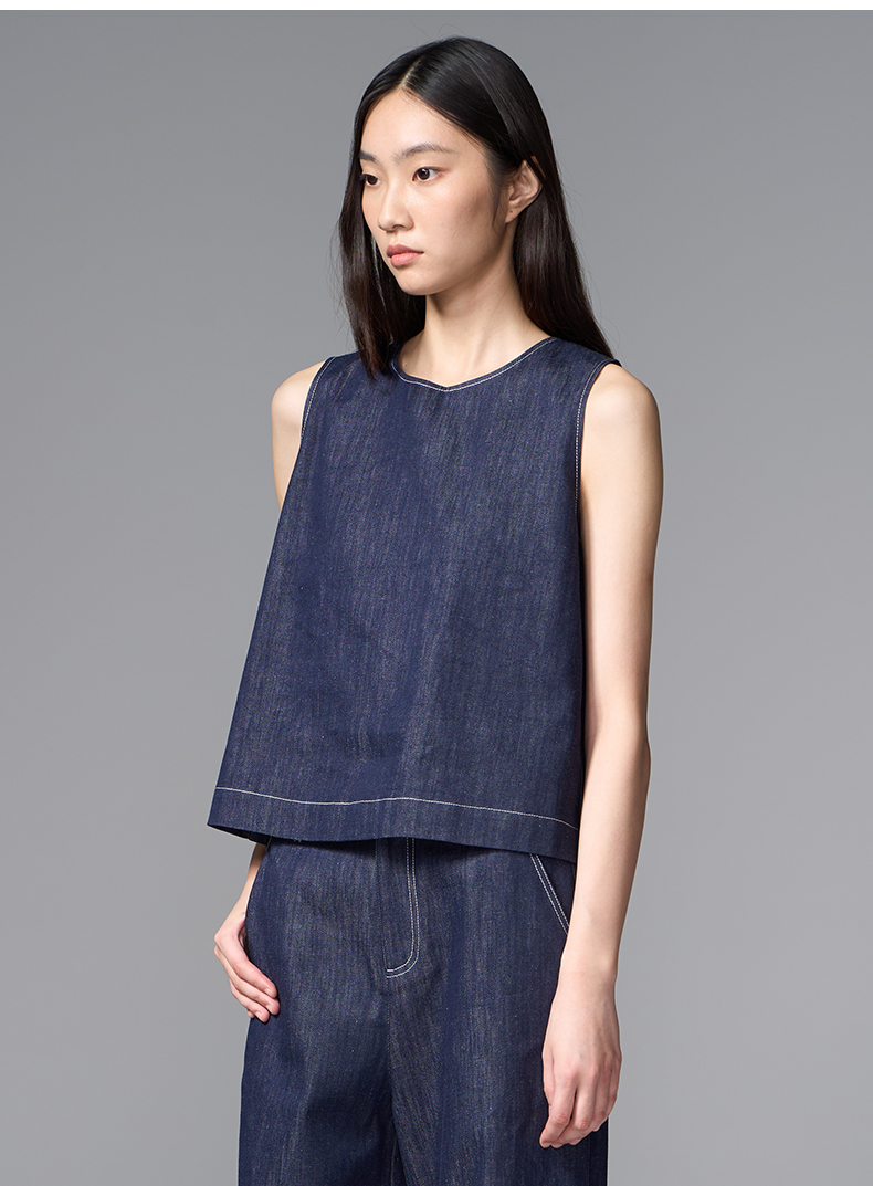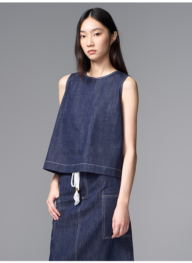 VIMAGE纬漫纪率性无袖牛仔简约大方小上衣V2413101