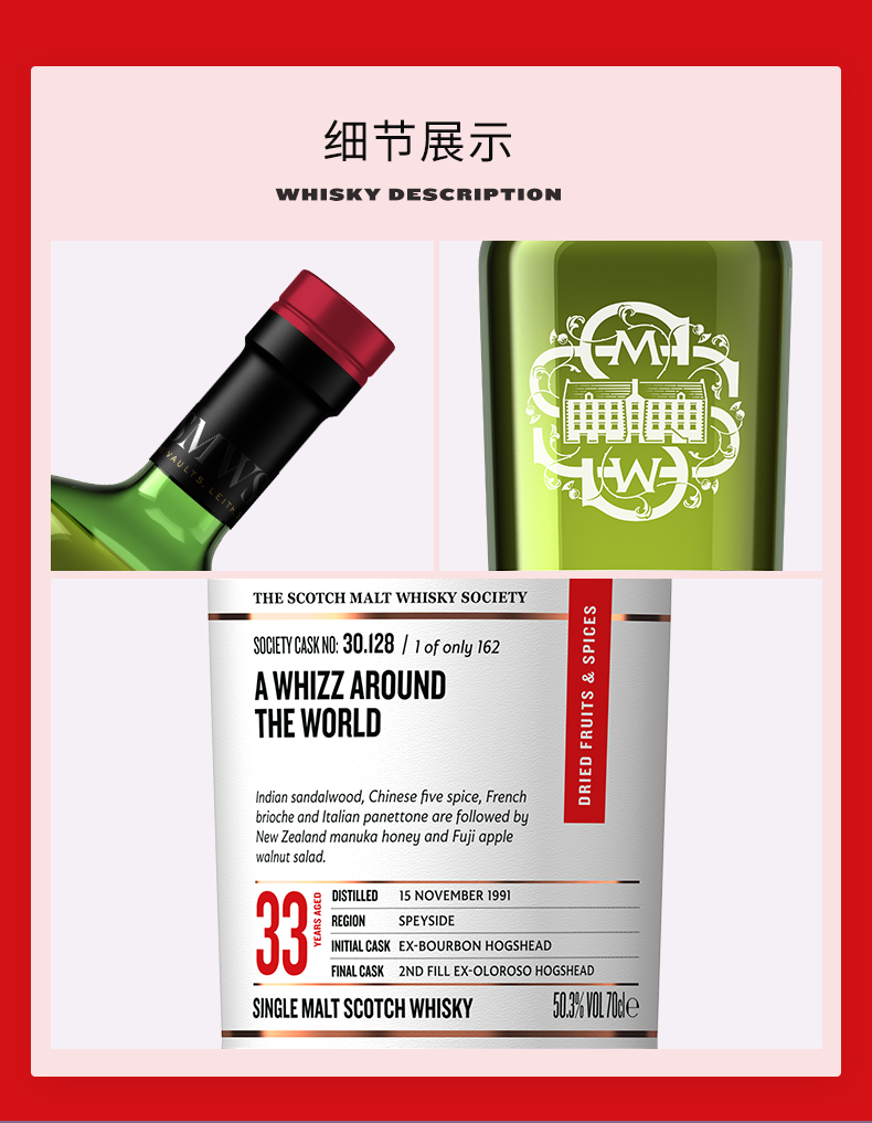 【SMWS】 30.128 环游世界 33年 单一麦芽 威士忌 雪莉桶 洋酒