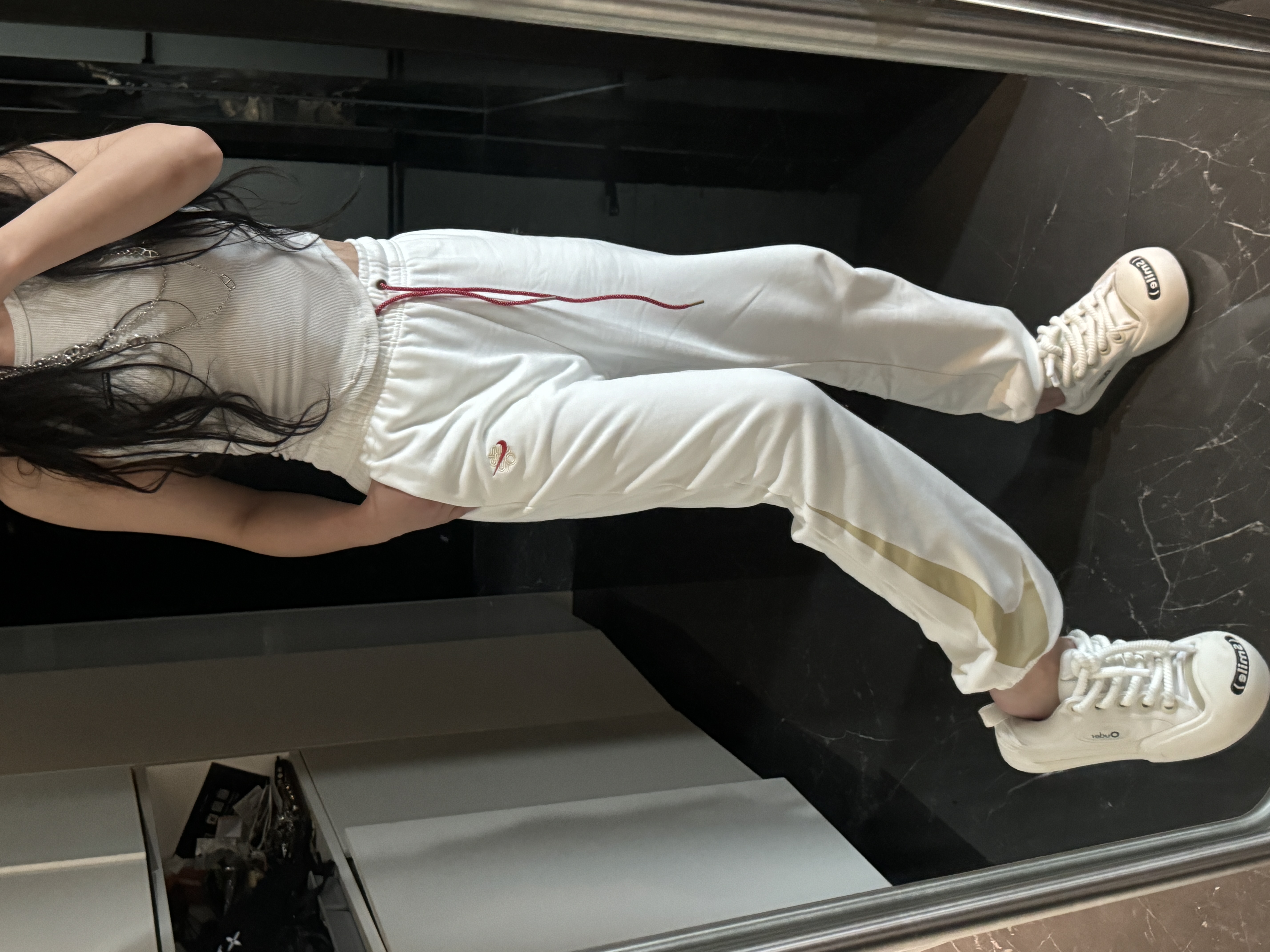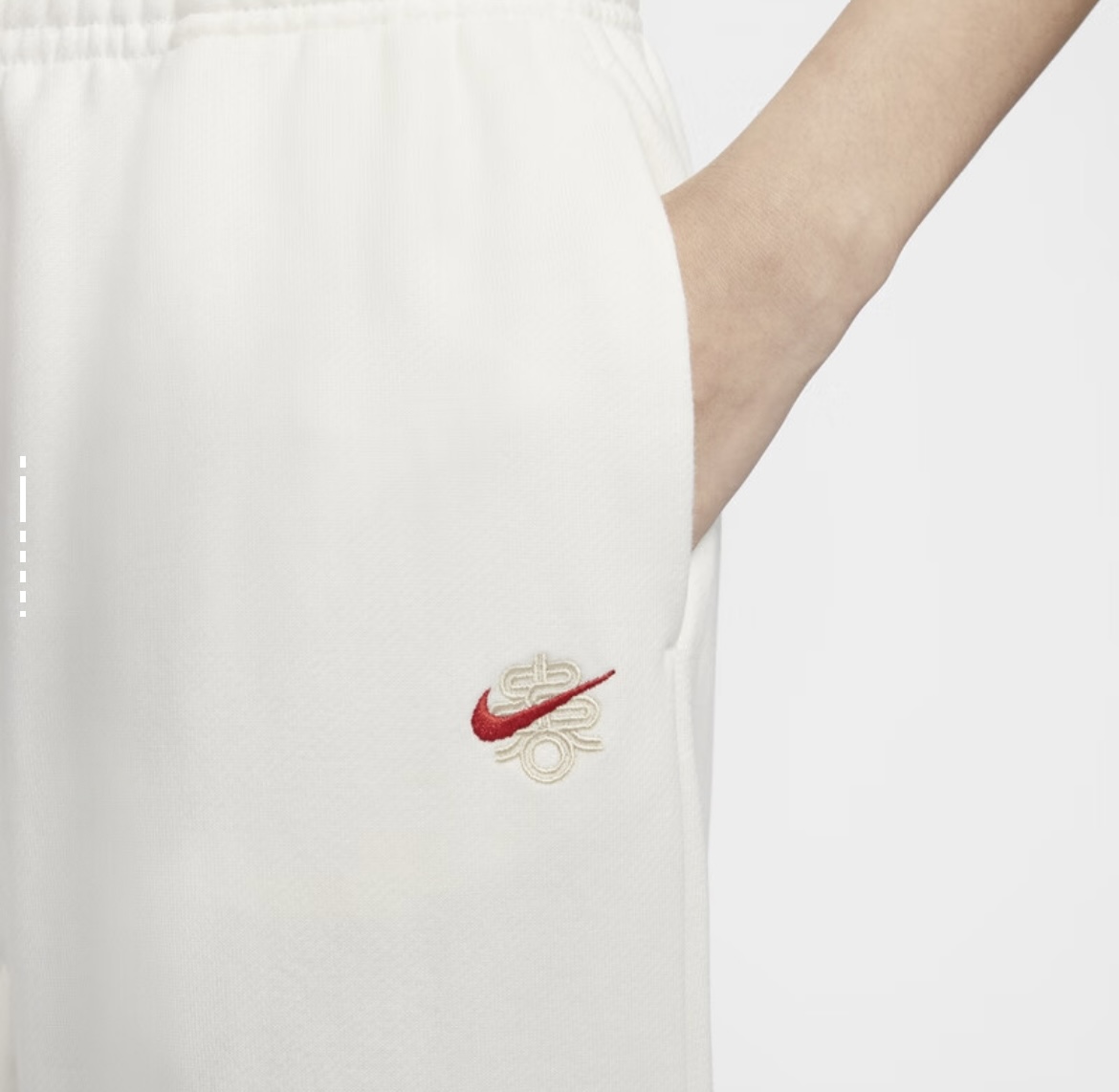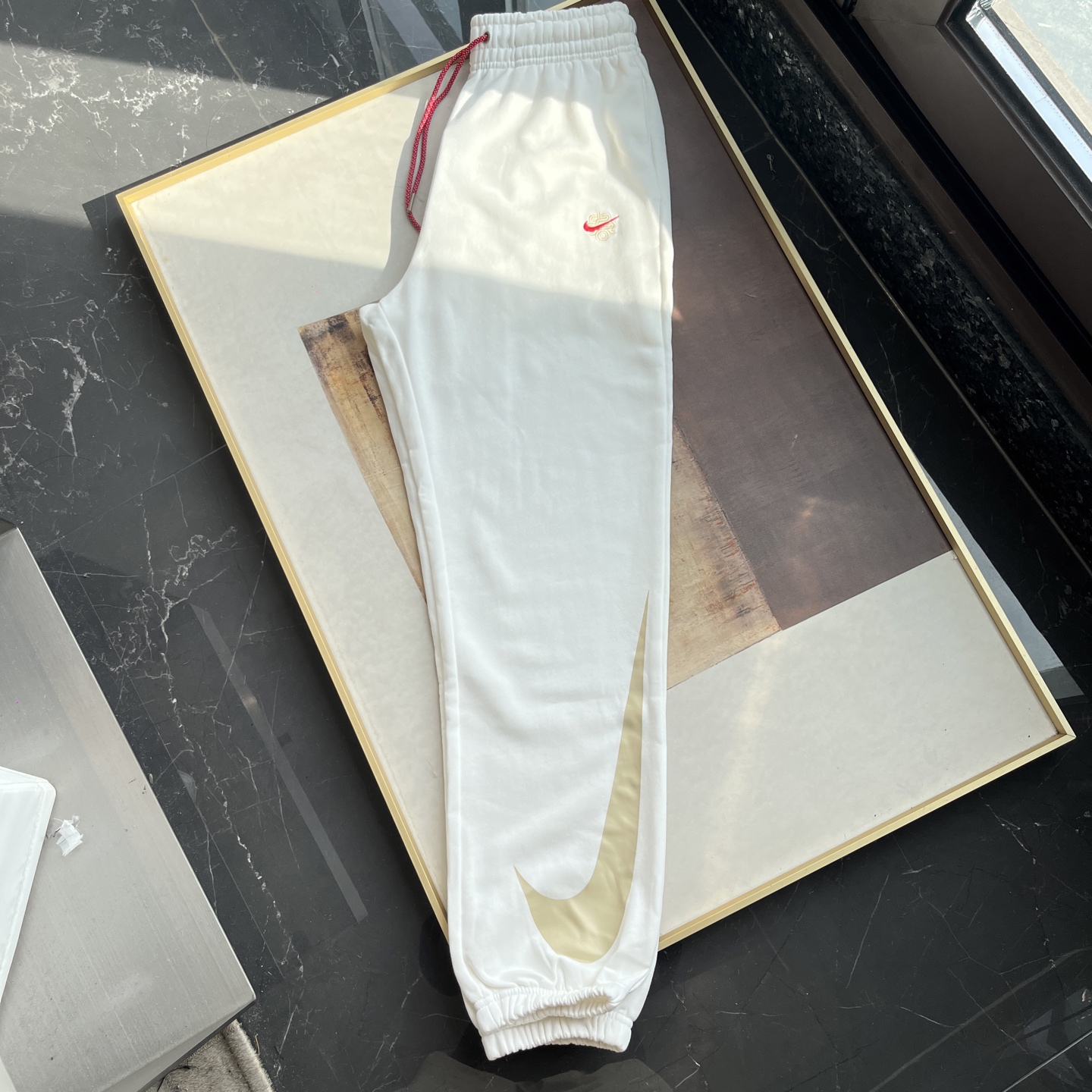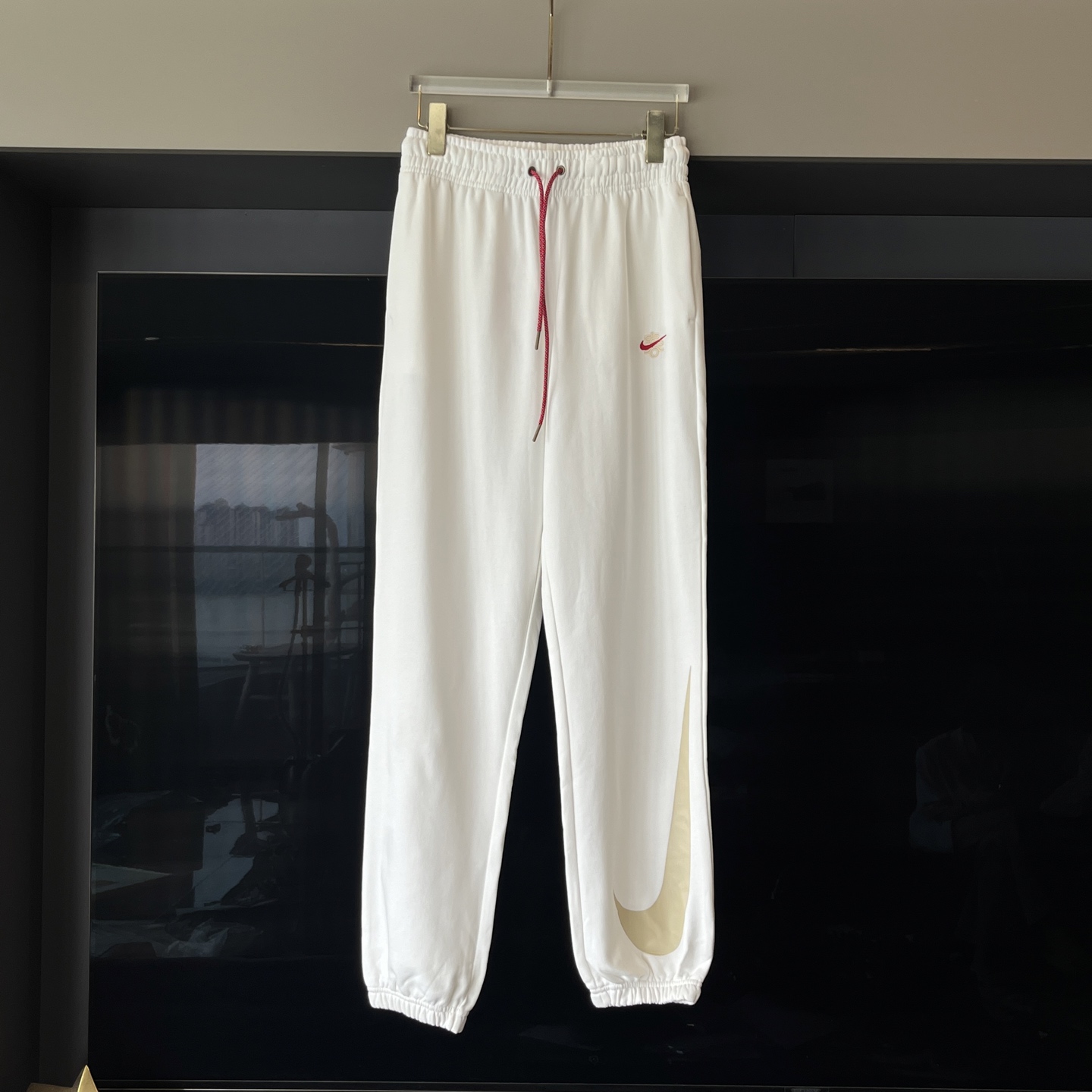zheng品‼️ !得物卖300多!‼️N&K迎新系列卫裤 25年最新款🔥🔥2025春季灵蛇迎新系列女子高腰卫裤,厚实法式毛圈面料,柔软舒适,宽松版型+高腰剪裁,活动自如又显身材十。白色主色配红色抽绳和金色Swoosh,简约又有细节感。日常休闲、运动都能穿,尺码选择多,满足不同体型需求 S码80-115斤以内⚠️ M码90-130斤以内⚠️ L码100-150斤以内。XL码110-170以内⚠️