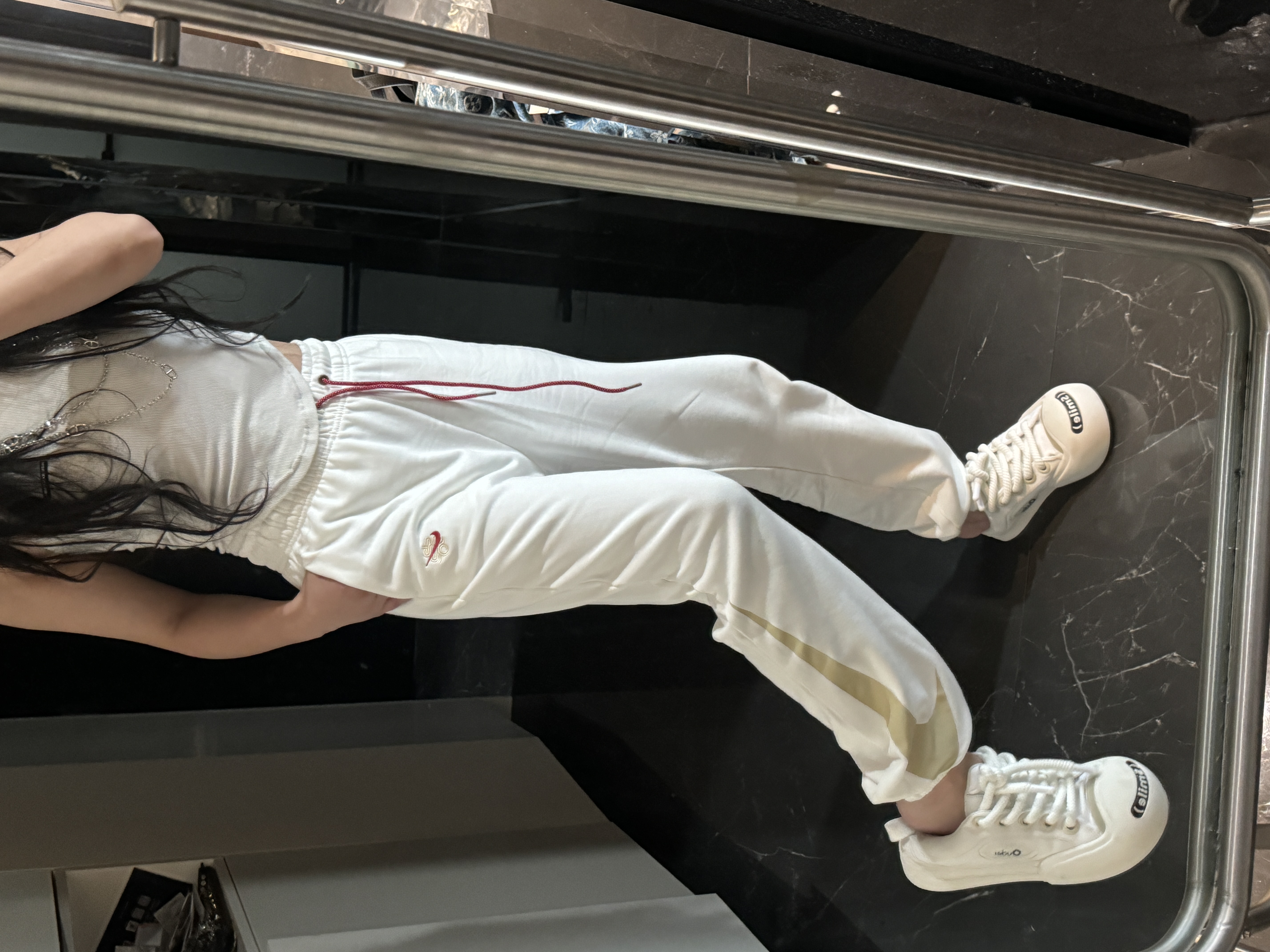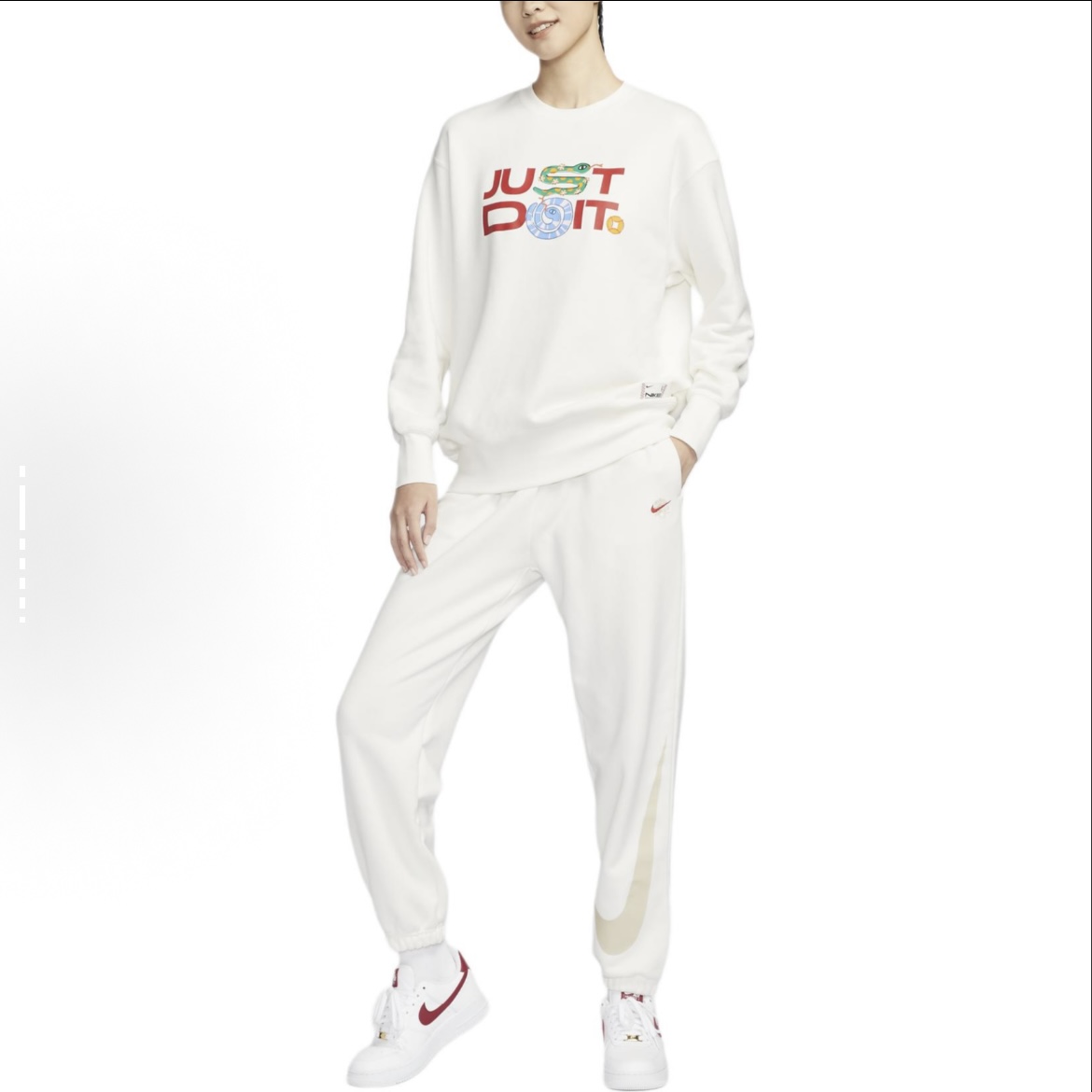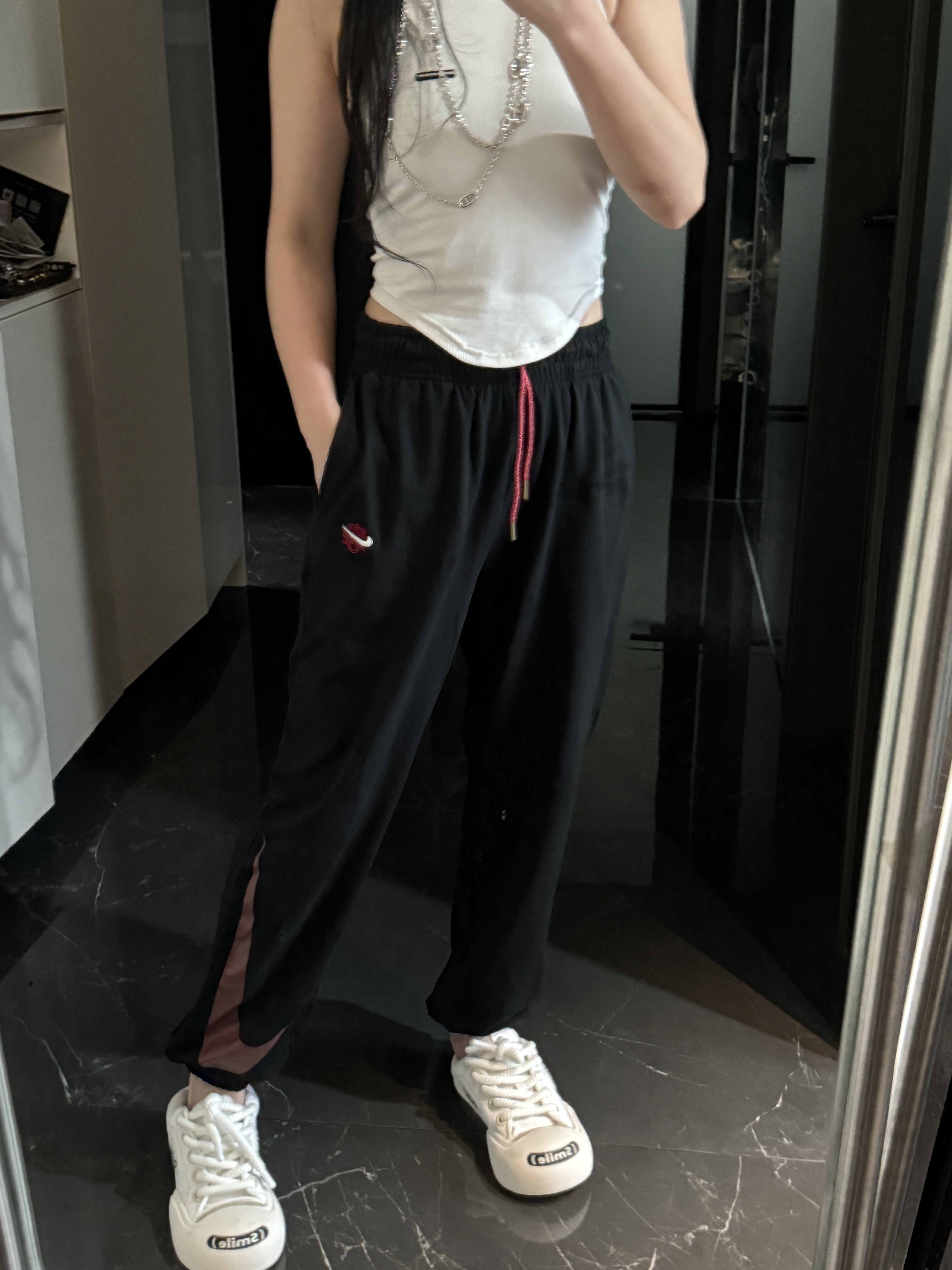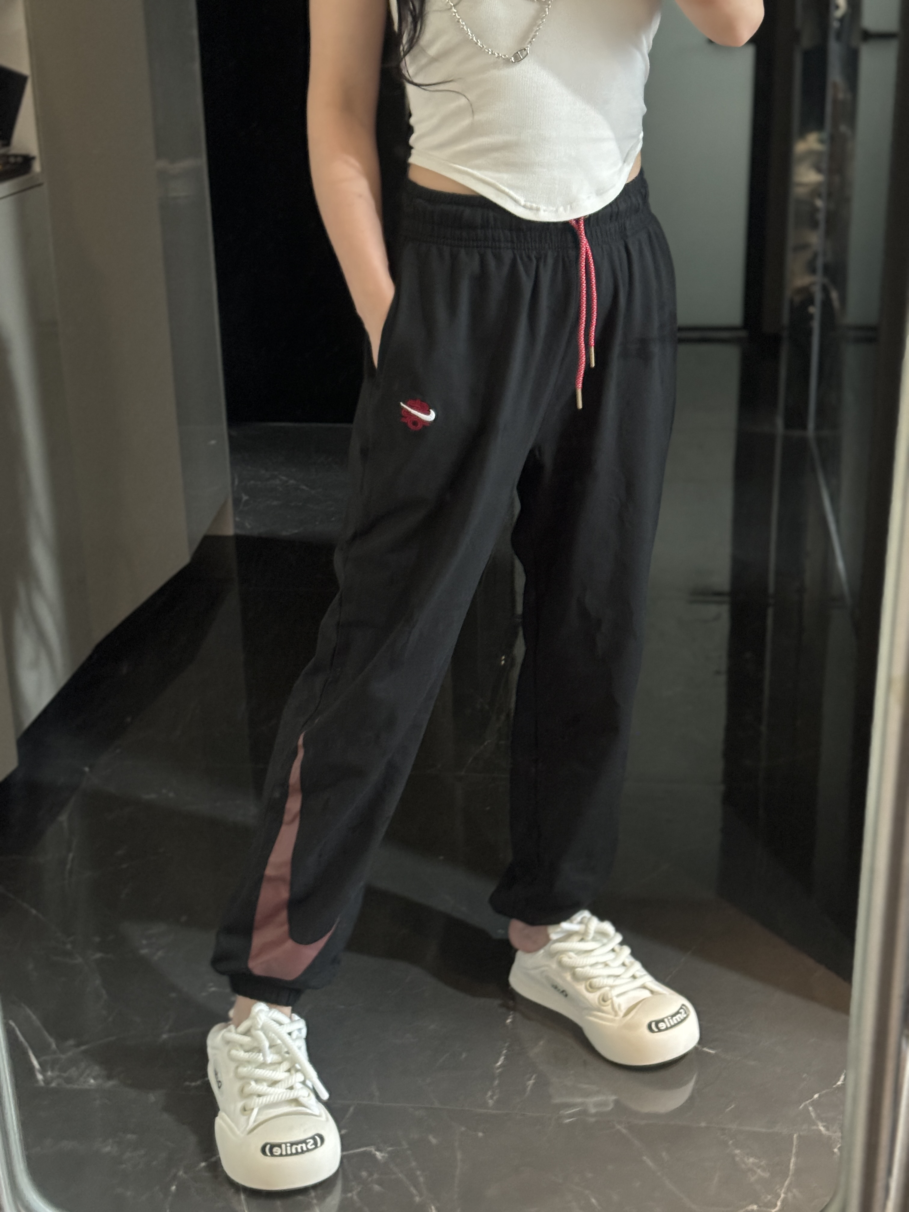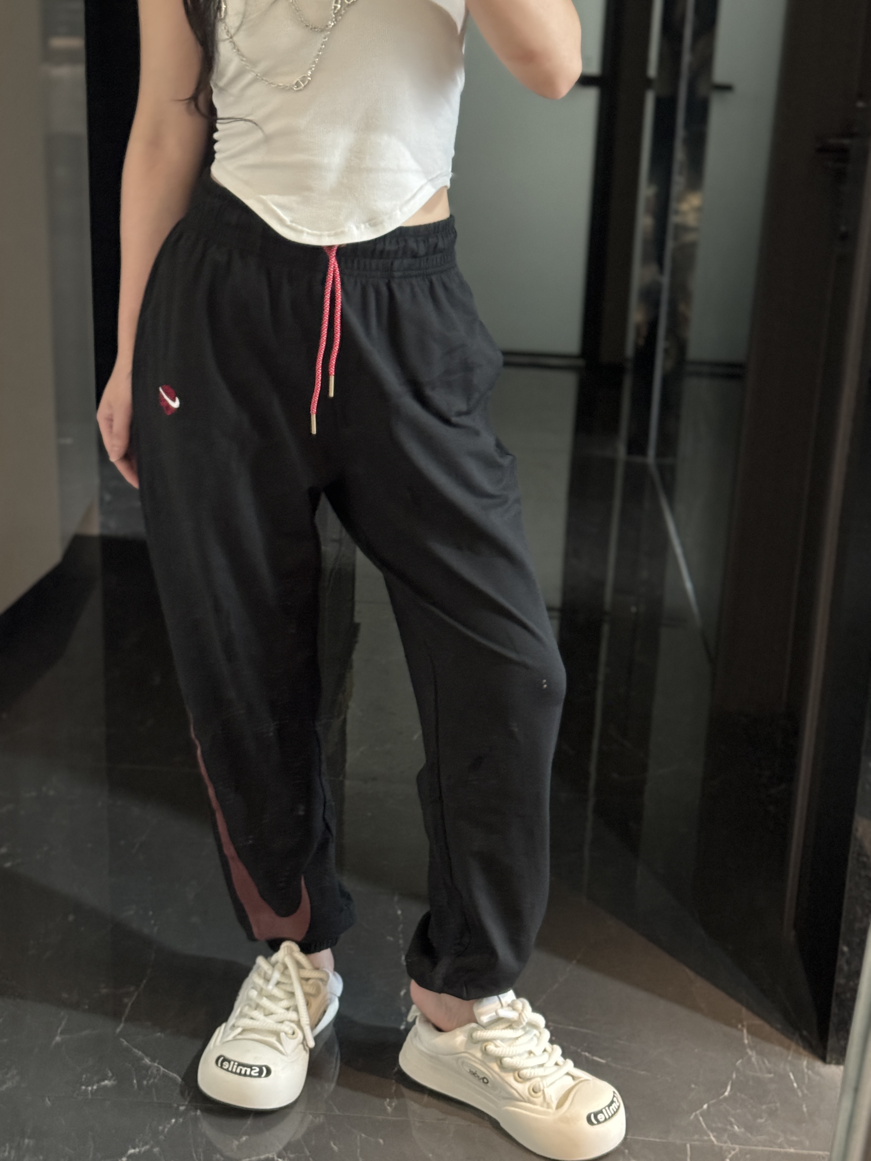zheng品‼️ !得物卖300多!‼️N&K迎新系列卫裤 25年最新款🔥🔥2025春季灵蛇迎新系列女子高腰卫裤,厚实法式毛圈面料,柔软舒适,宽松版型+高腰剪裁,活动自如又显身材十。白色主色配红色抽绳和金色Swoosh,简约又有细节感。日常休闲、运动都能穿,尺码选择多,满足不同体型需求 S码80-115斤以内⚠️ M码90-130斤以内⚠️ L码100-150斤以内。XL码110-170以内⚠️