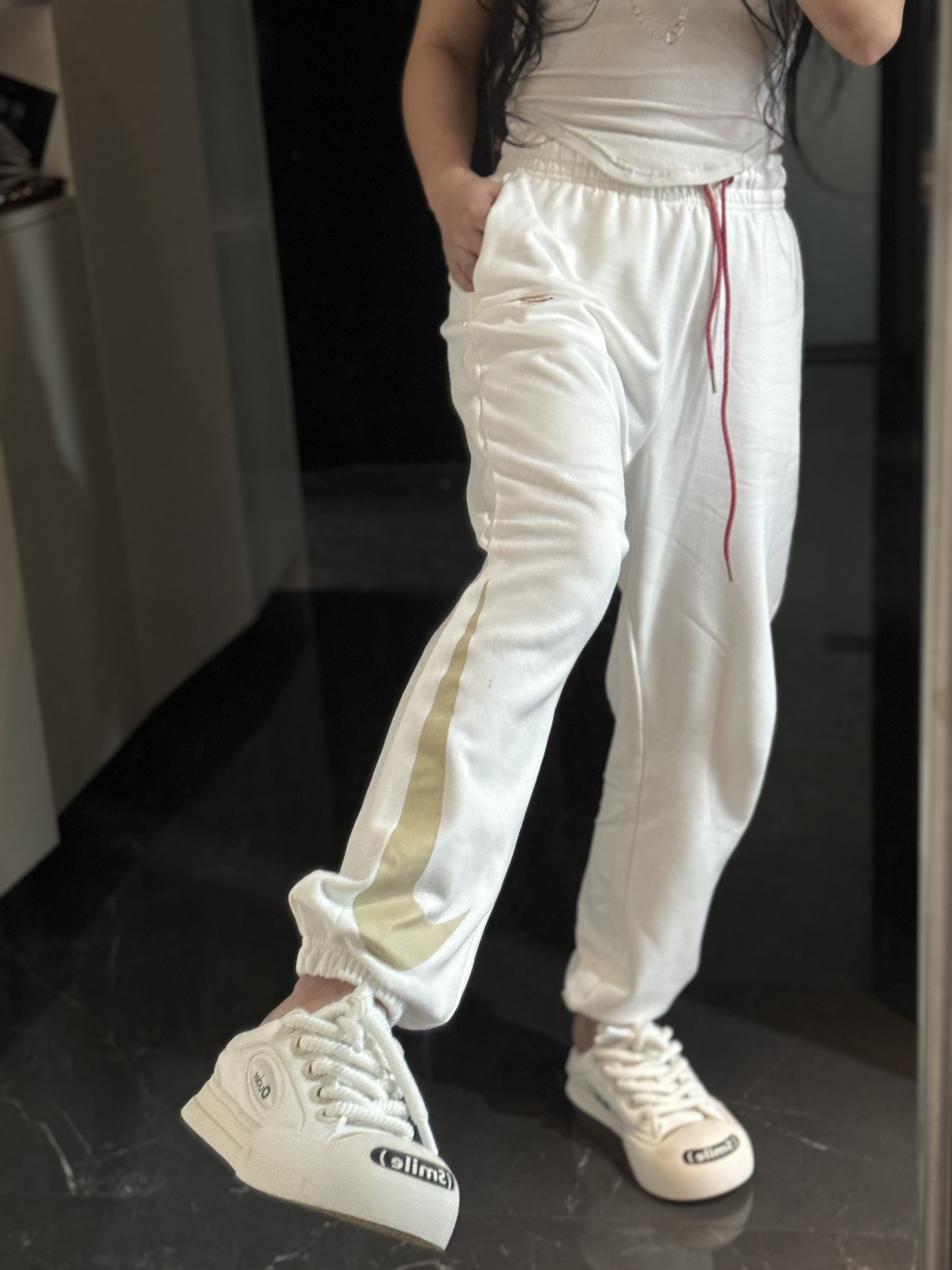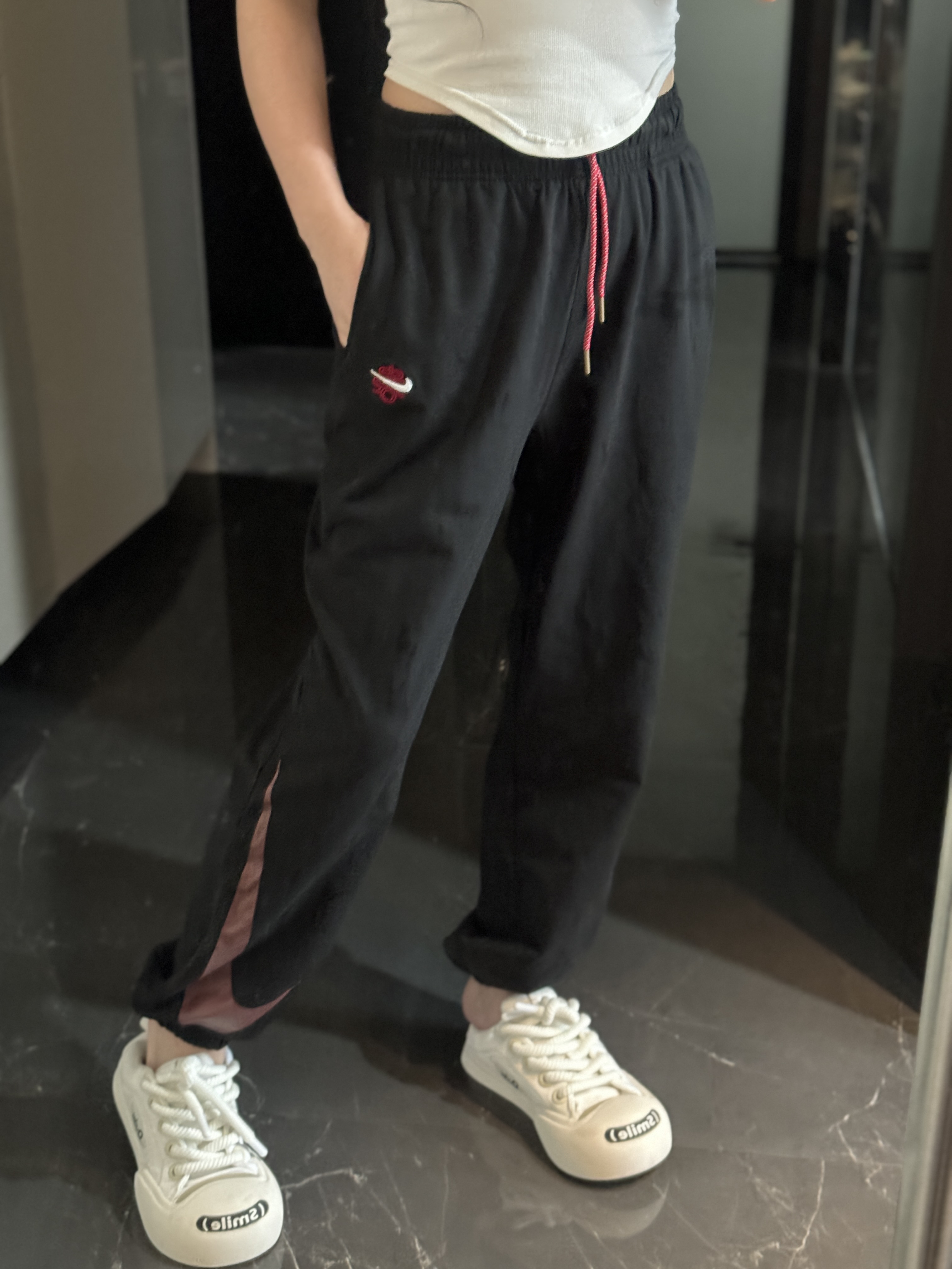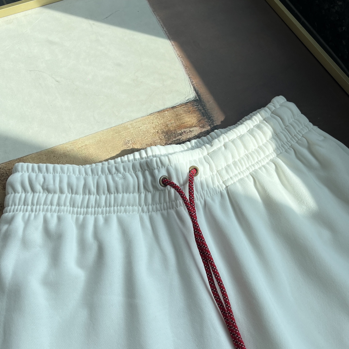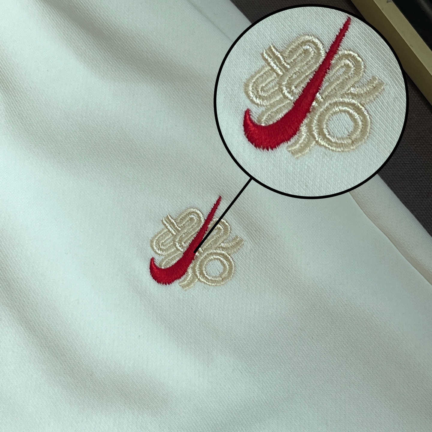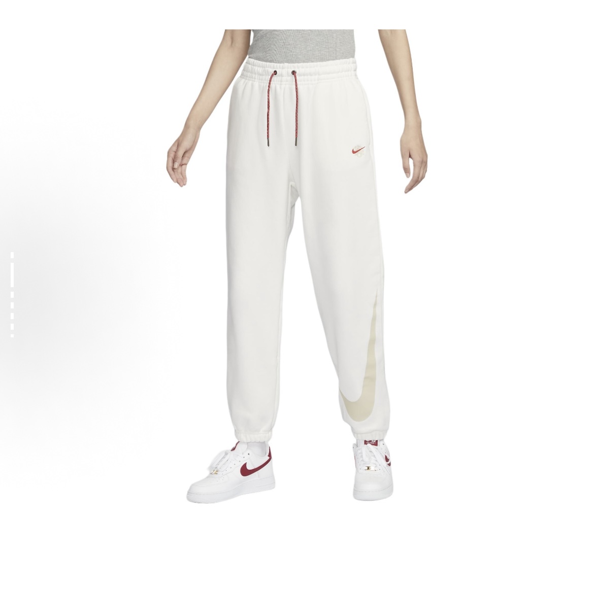 zheng品‼️ !得物卖300多!‼️N&K迎新系列卫裤 25年最新款🔥🔥2025春季灵蛇迎新系列女子高腰卫裤,厚实法式毛圈面料,柔软舒适,宽松版型+高腰剪裁,活动自如又显身材十。白色主色配红色抽绳和金色Swoosh,简约又有细节感。日常休闲、运动都能穿,尺码选择多,满足不同体型需求 S码80-115斤以内⚠️ M码90-130斤以内⚠️ L码100-150斤以内。XL码110-170以内⚠️
