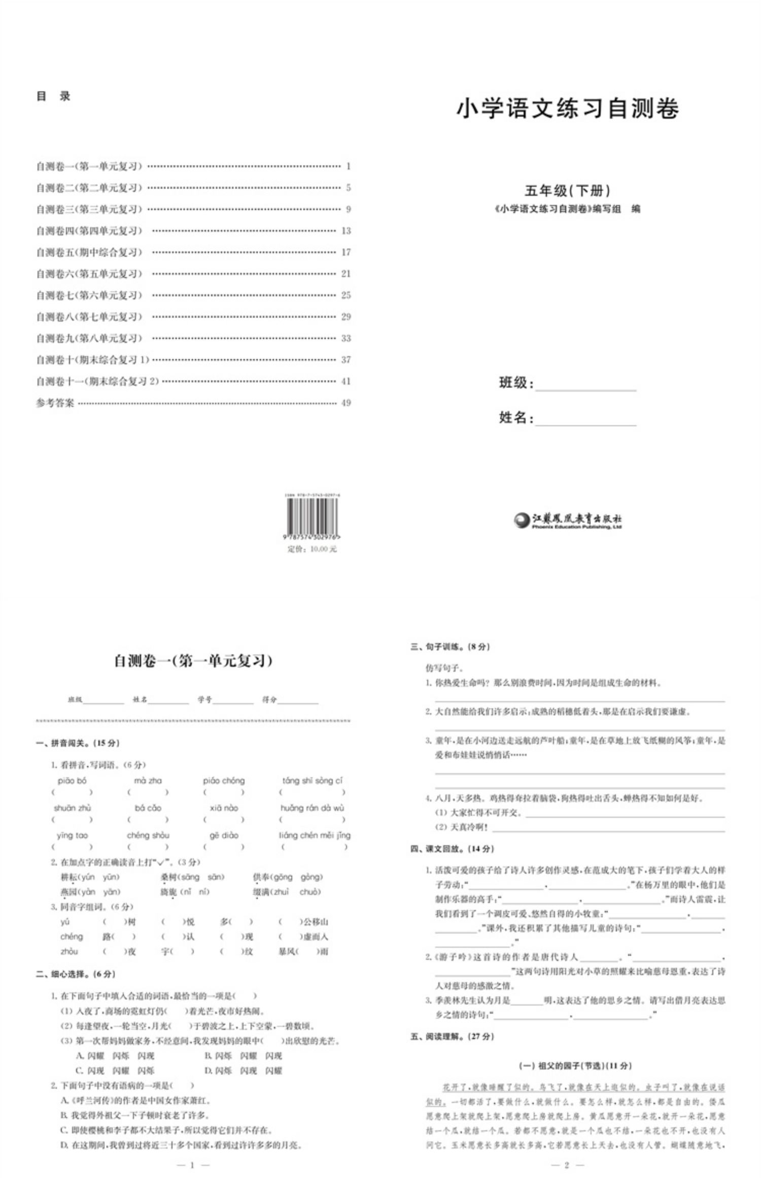 2025年春 小学语文练习自测卷 五年级下册 配套人教版部编版语文课本使用 含错题本 含答案 5下 小学教辅试卷 江苏凤凰教育出版社
