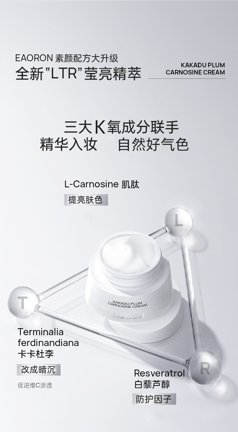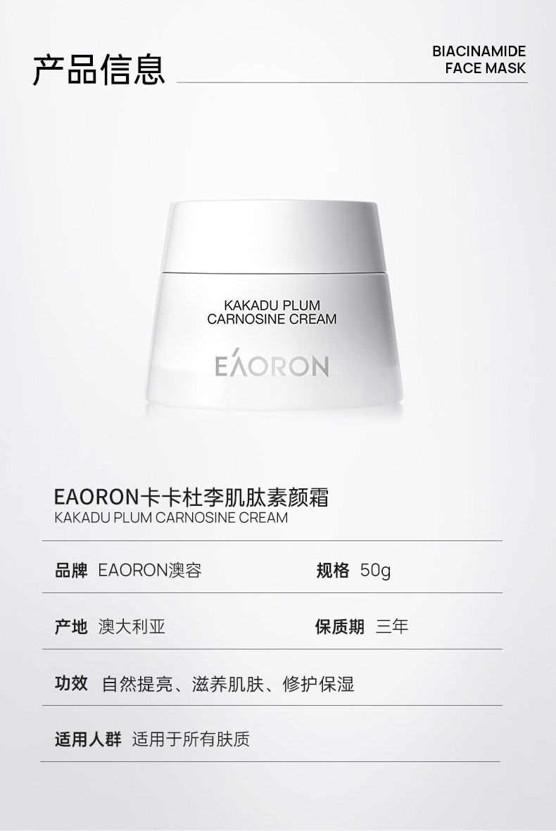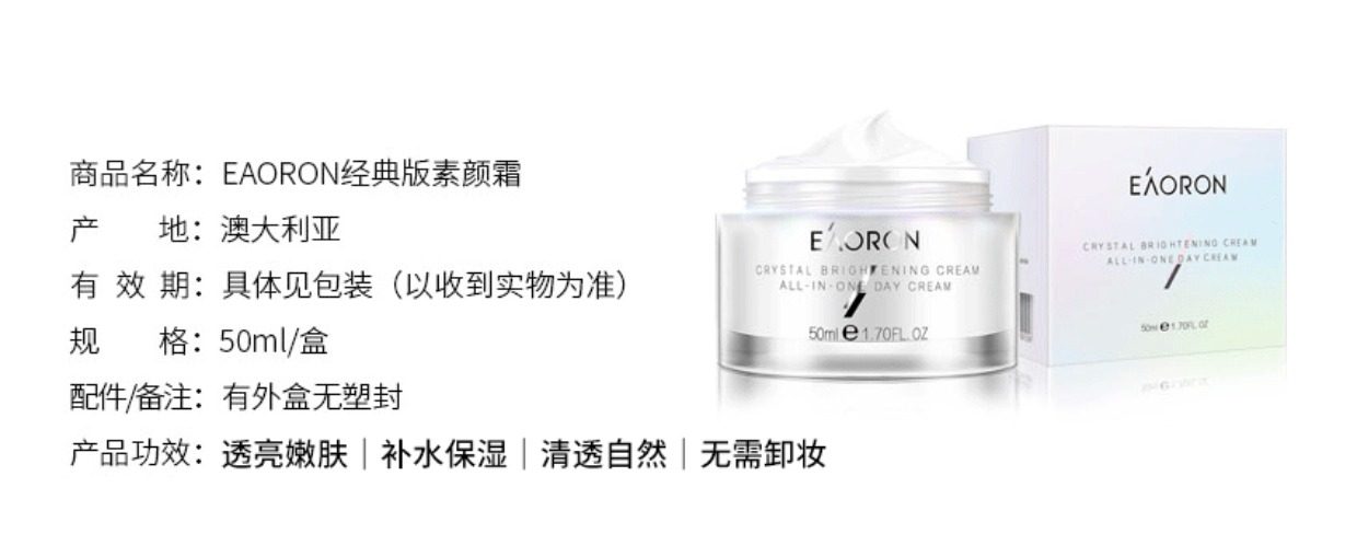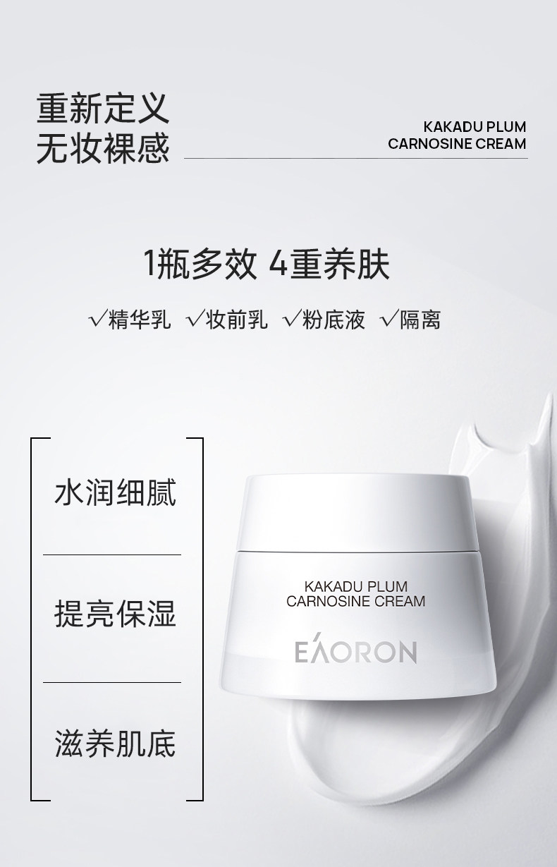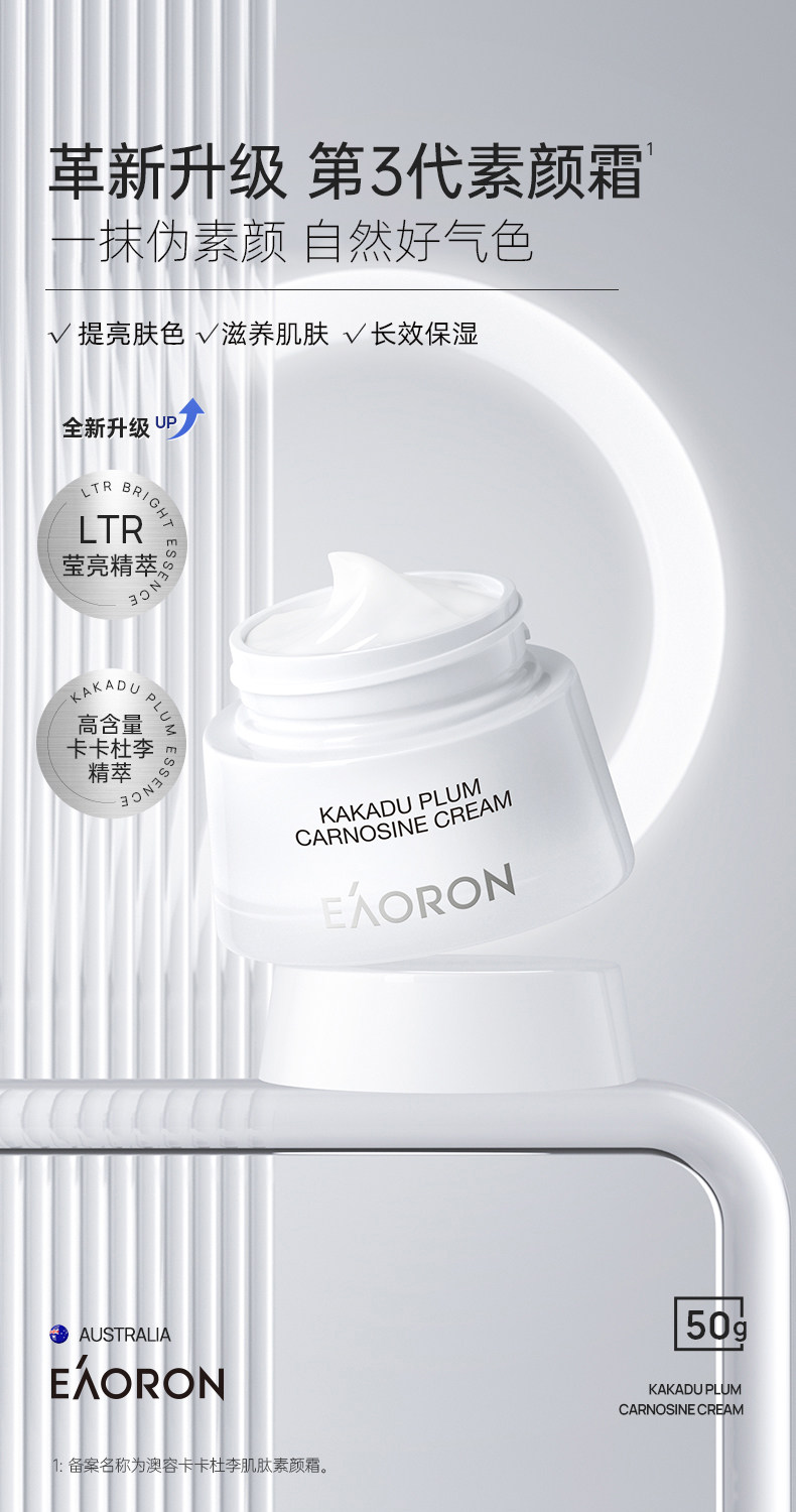 「素颜神器 免卸妆」澳洲Eaoron澳容晶透水光针素颜霜懒人霜 澳容卡卡杜李肌肽素颜霜 细腻遮瑕滋润保湿亮肤自然裸妆50ml