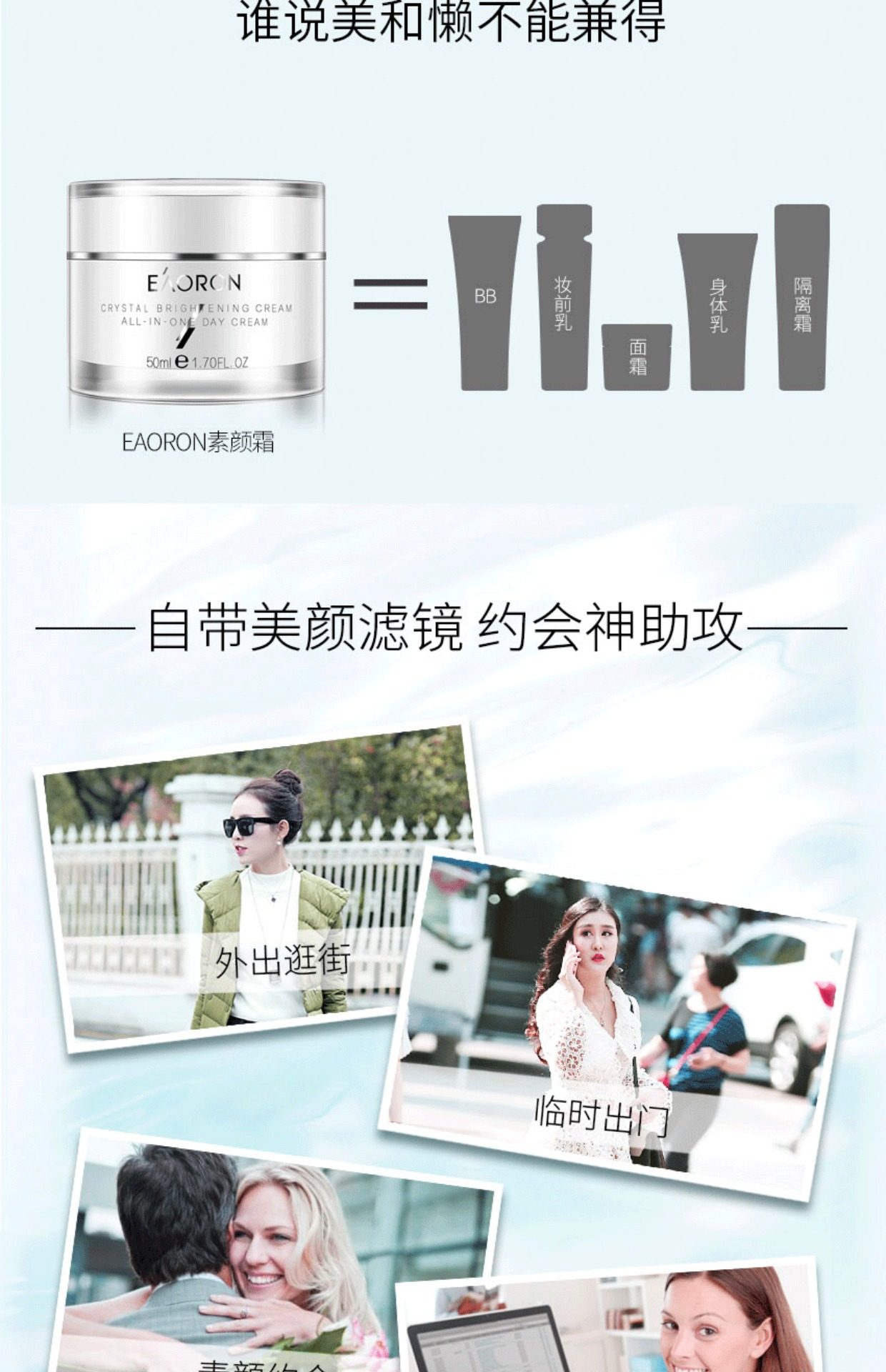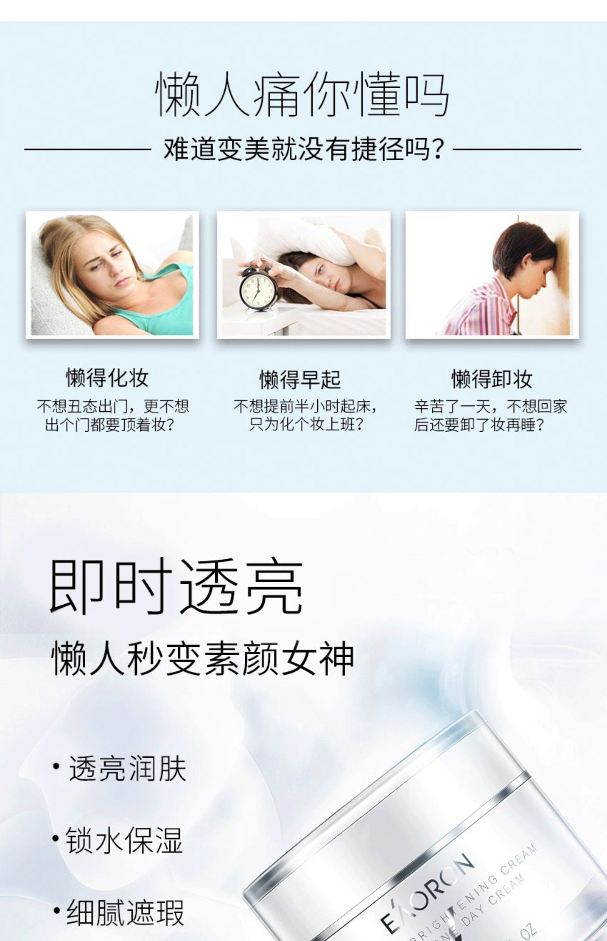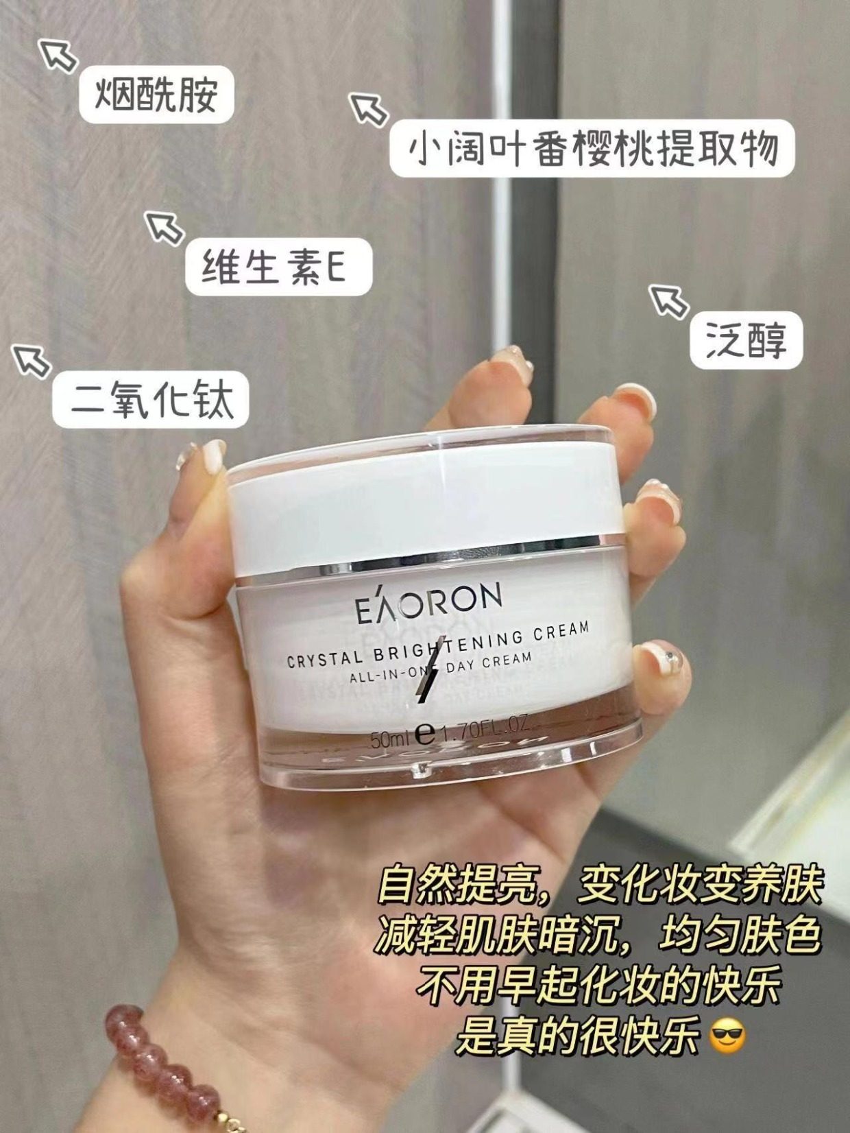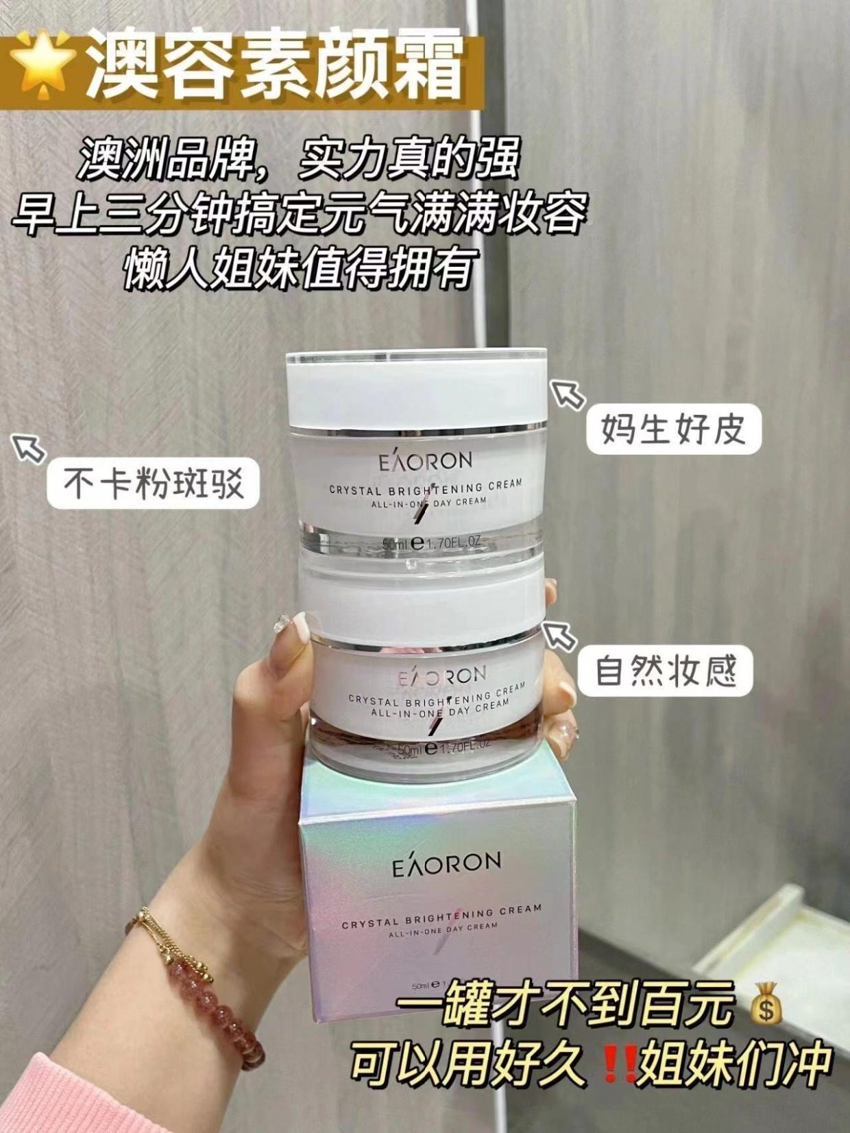 「素颜神器 免卸妆」澳洲Eaoron澳容晶透水光针素颜霜懒人霜 澳容卡卡杜李肌肽素颜霜 细腻遮瑕滋润保湿亮肤自然裸妆50ml