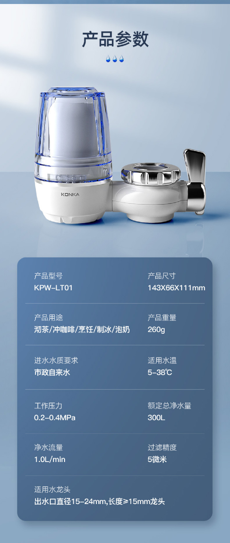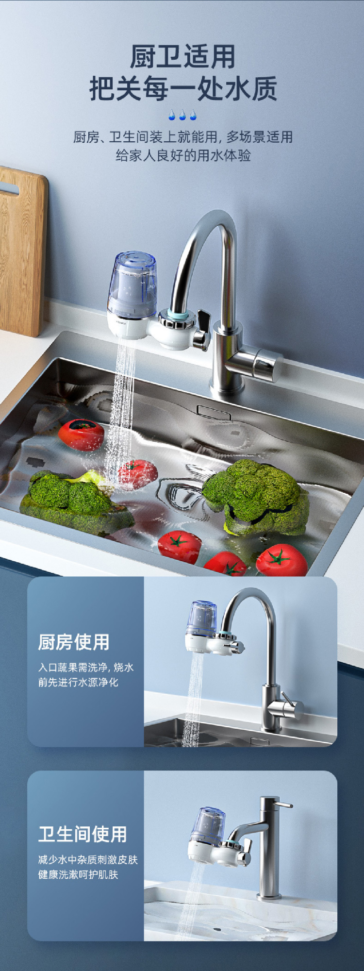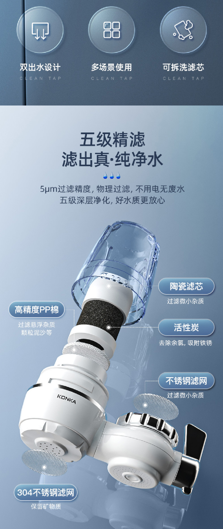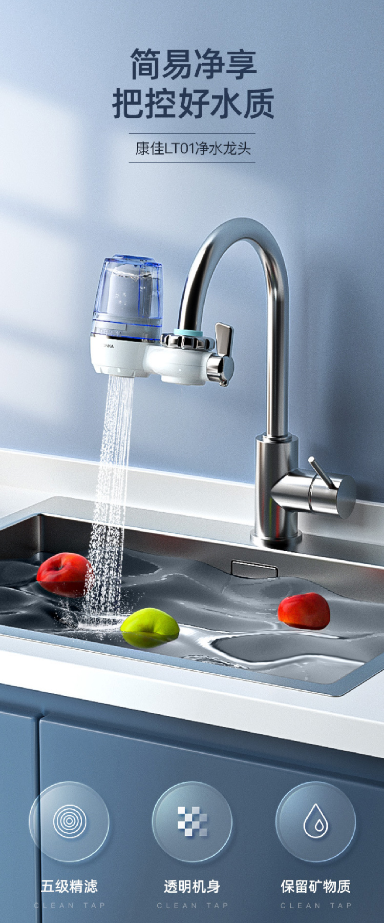 【水龙头净化器】康佳水龙头净水器家用自来水前置过滤器 一机四芯可拆洗净水机