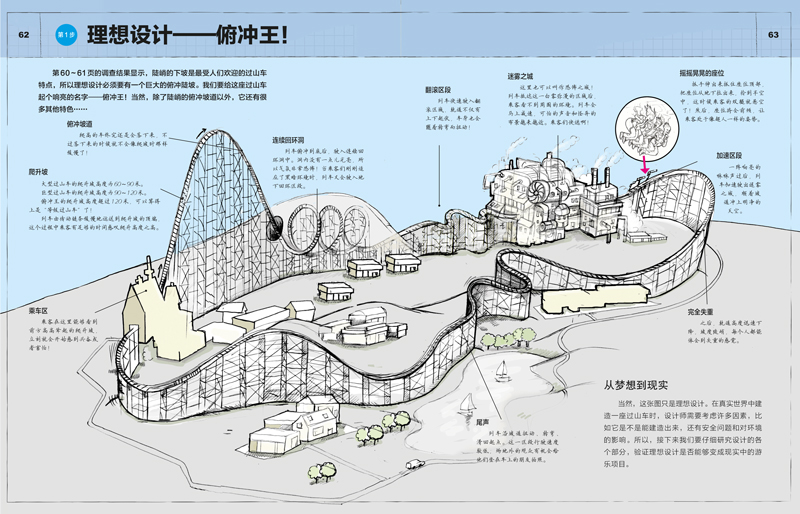 1.六大主题——自行车、机器人、过山车、滑板场、体育场和空间站,从常见的事物起步,由小至大,挑战逐步升级,培养全局观。