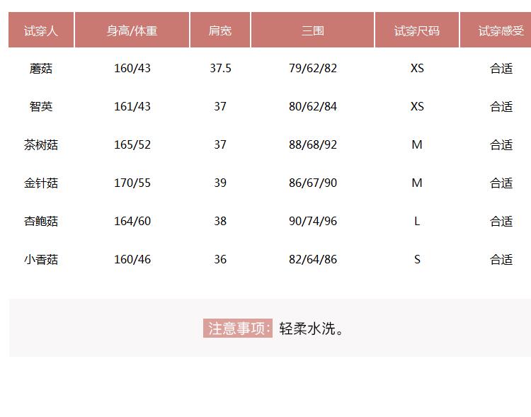 提醒:尺码是纯手工平铺测量,可能存在1-3CM的误差属于正常范围! 试穿表格,仅供参考!