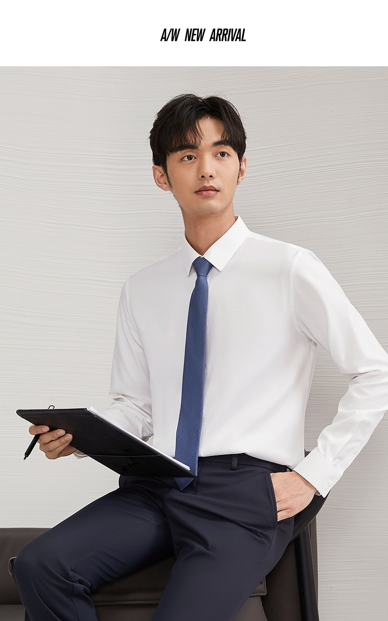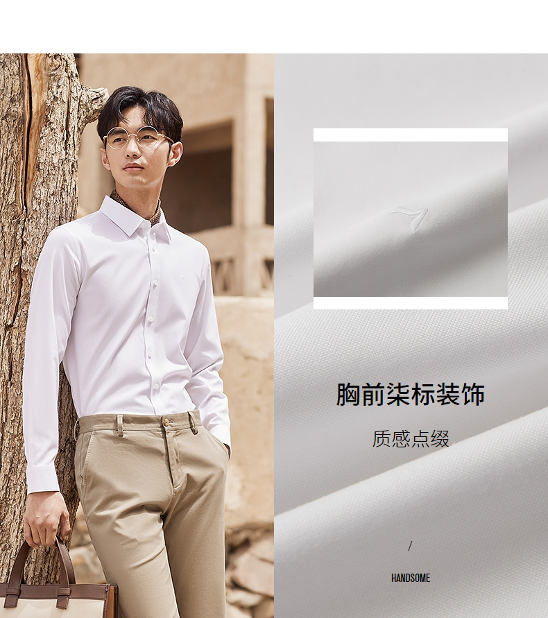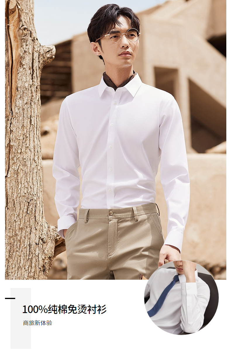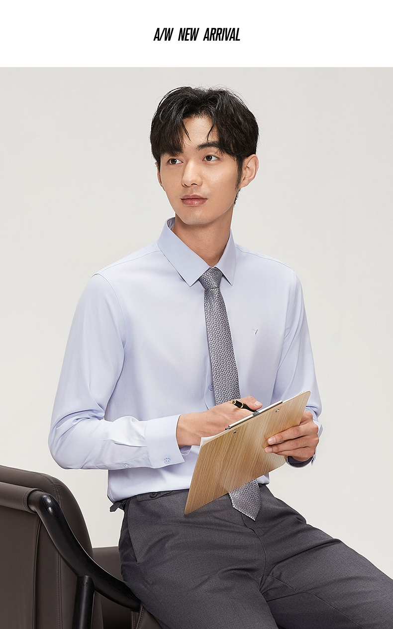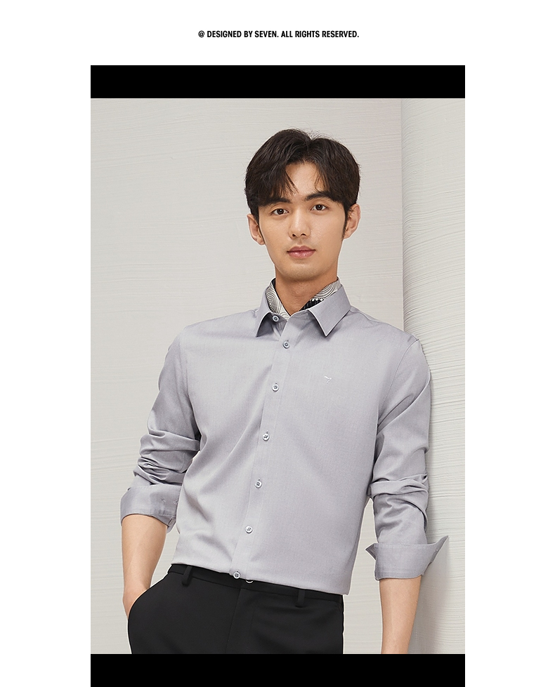 【DP免烫】柒牌长袖衬衫男2024春秋款易打理商务正装纯棉翻领衬衣 127A70890