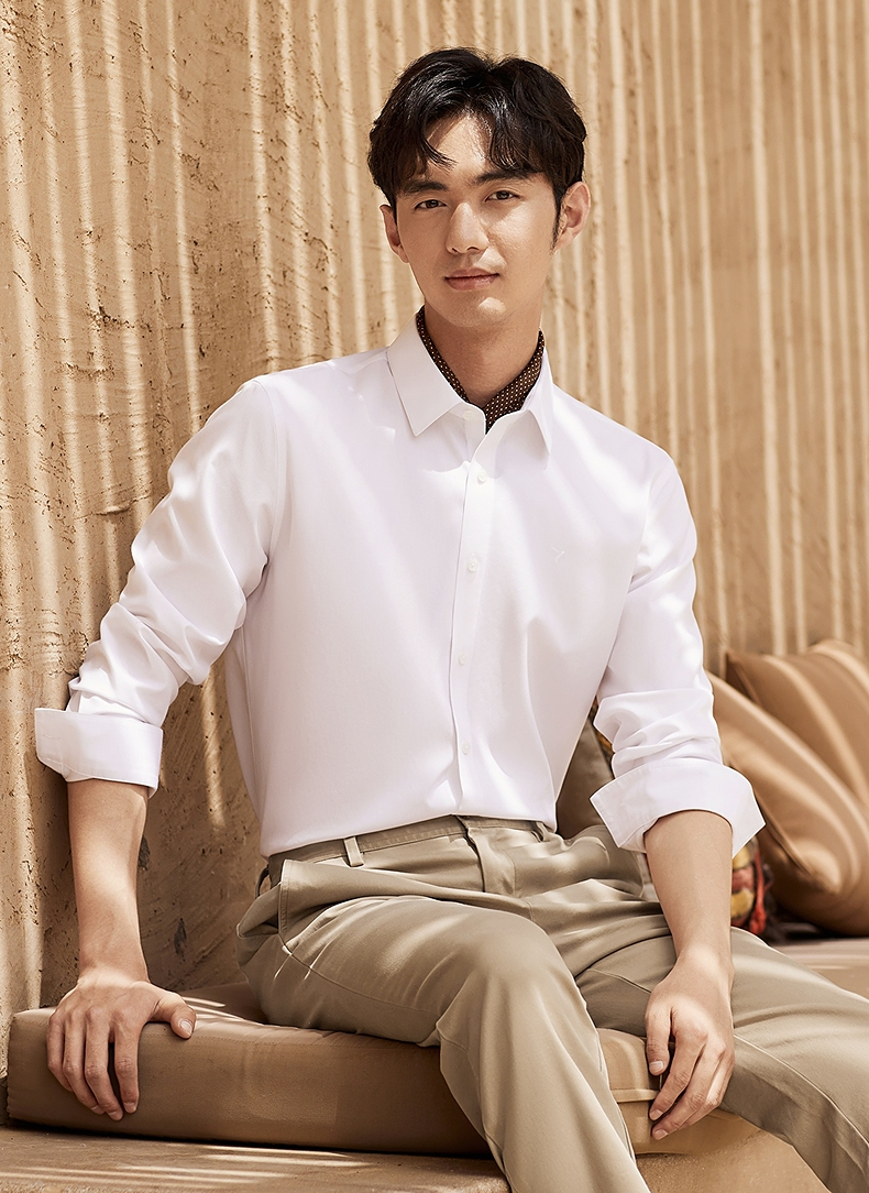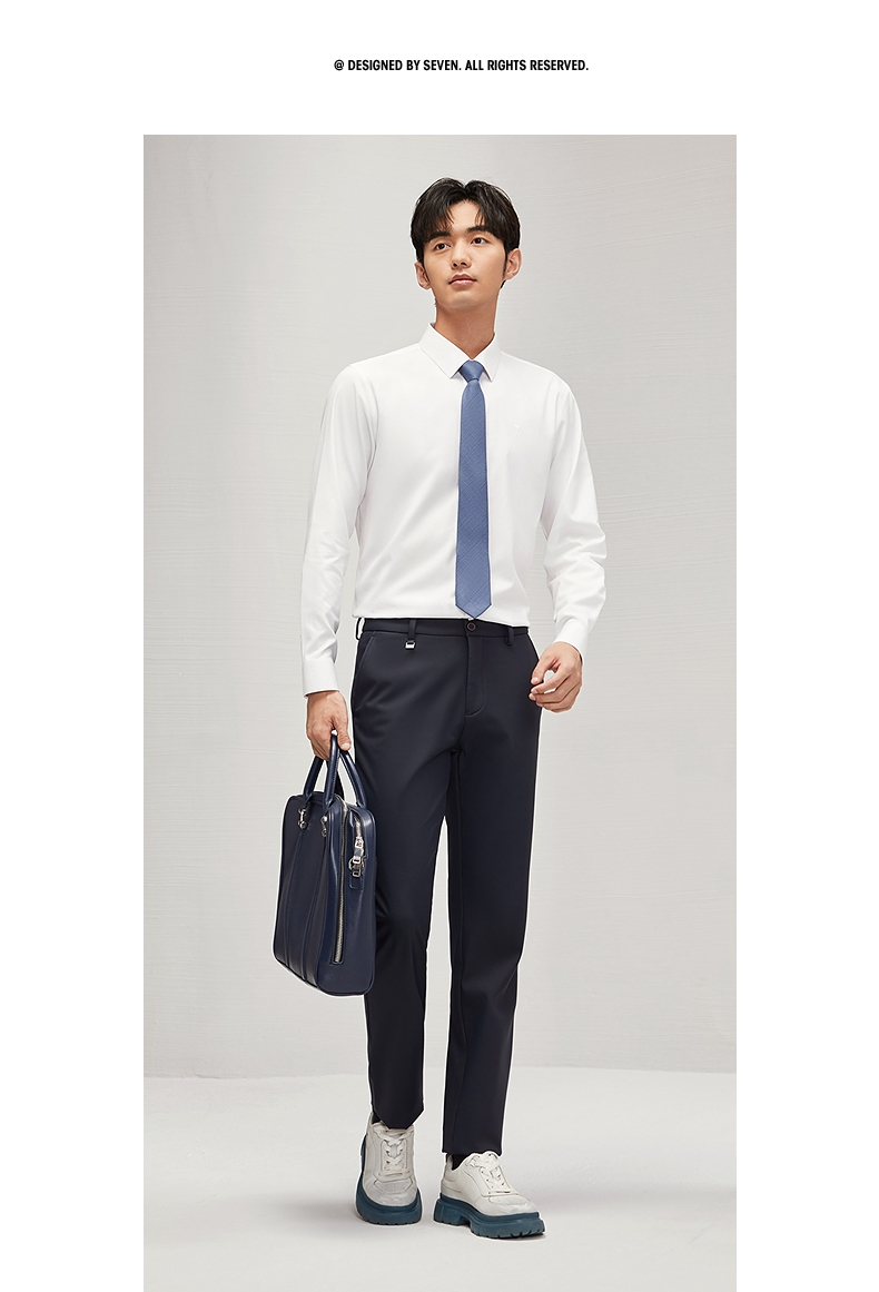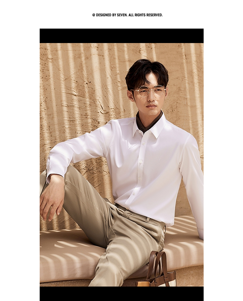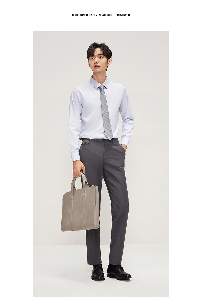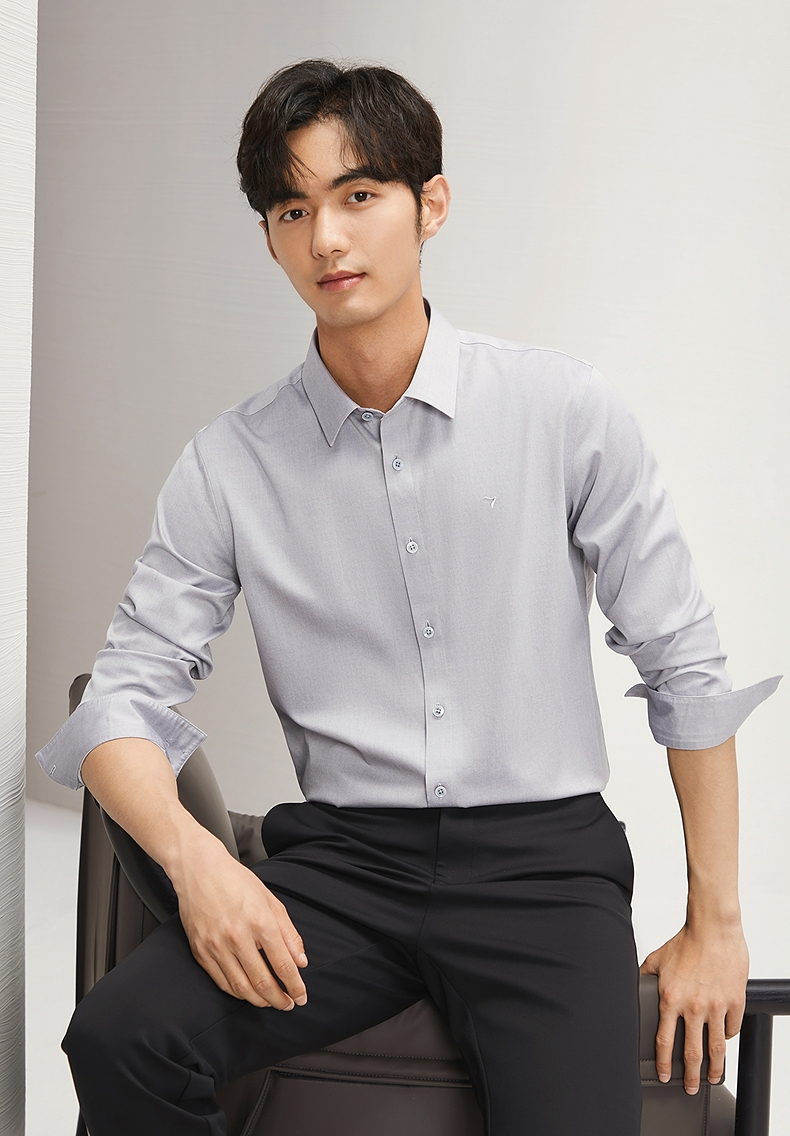 【DP免烫】柒牌长袖衬衫男2024春秋款易打理商务正装纯棉翻领衬衣 127A70890