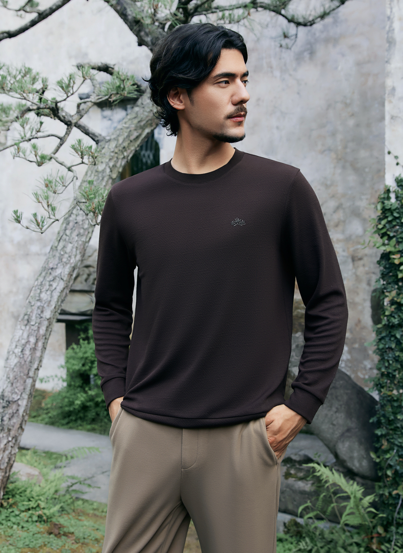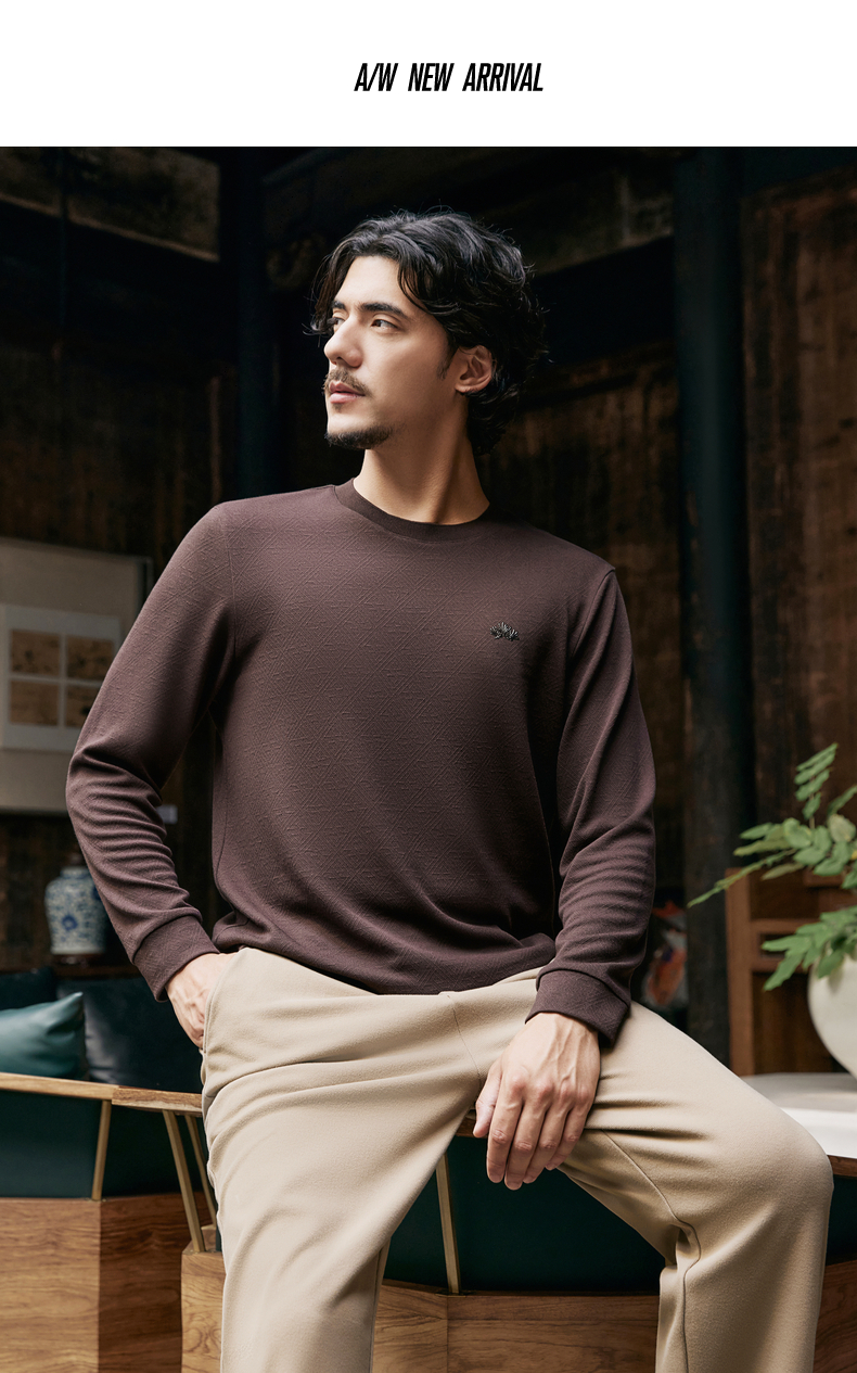 【国风新中式】柒牌长袖套头卫衣男士秋冬新款圆领弹力长袖上衣129W70620