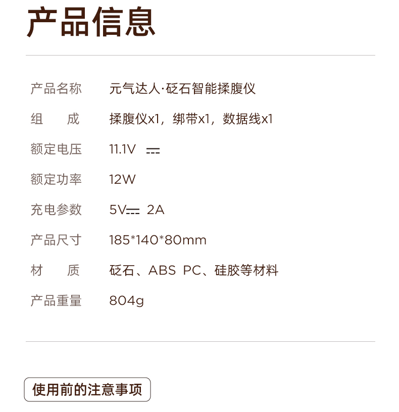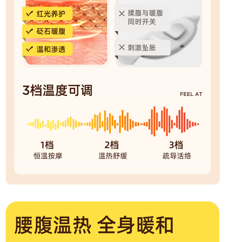 元气达人 电动砭石智能揉腹仪 砭石热敷 揉出好肠态